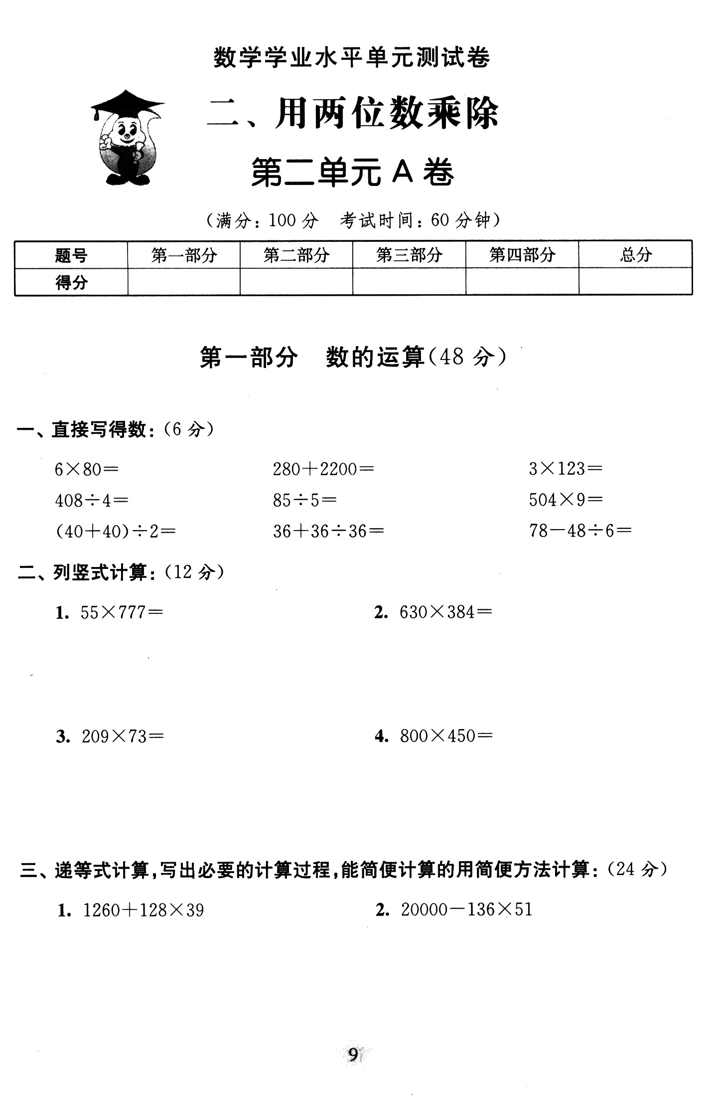 第三,它与教材保持同步,将每个单元编写成A、B两套练习卷。A卷帮助你及时巩固单元基础知识,B卷希望能将新旧知识结合起来,综合性地解决一些问题。这样可以有针对性地帮助和辅导你打好扎实的数学基础。