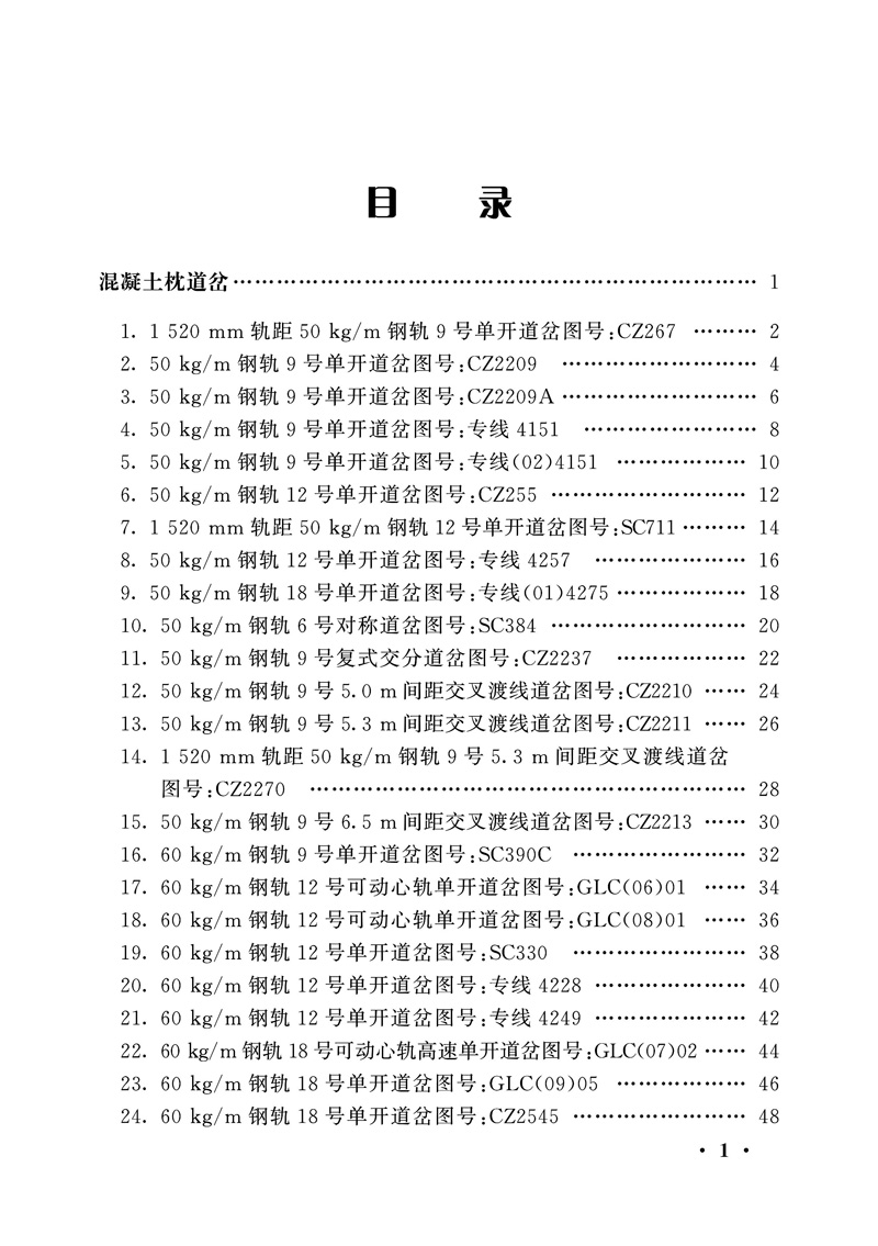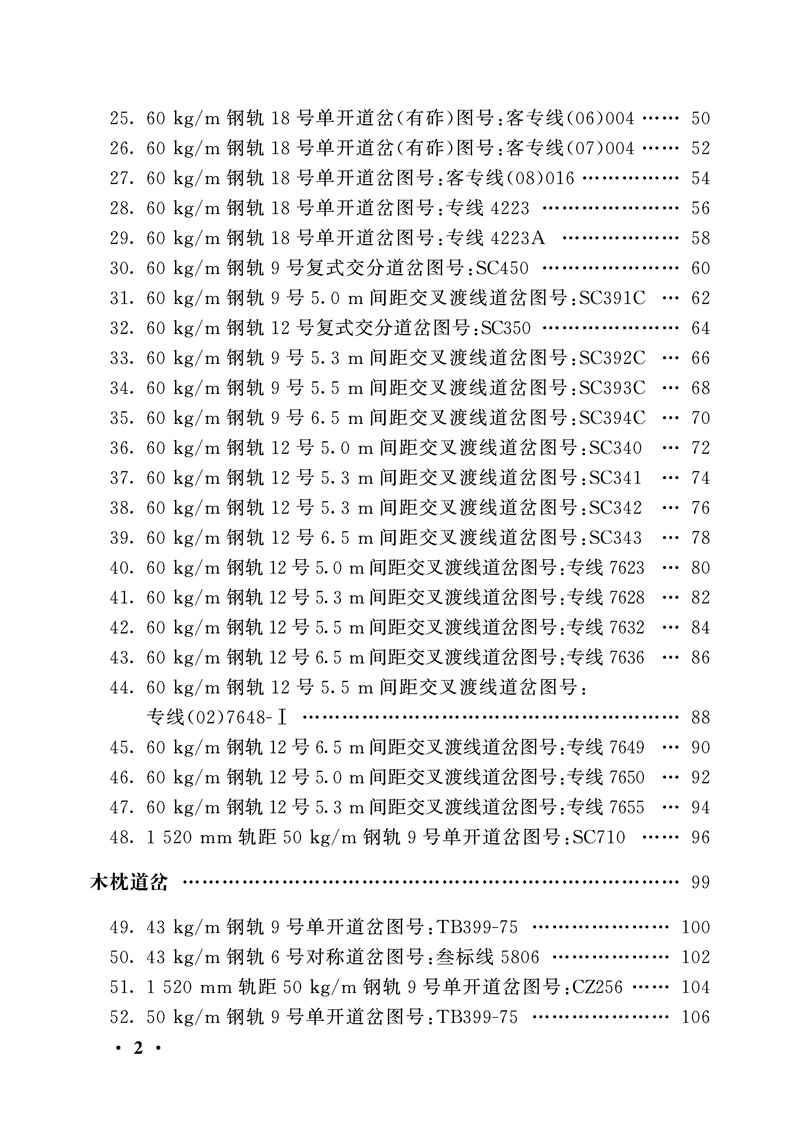 本书由铁路一线工作人员编写,收集了混凝土枕60kg/m、50kg/m和43kg/m的单开道岔、对称道岔、复式交分道岔和交叉渡线等47种道岔,以及木枕60kg/m、50kg/m和43kg/m的单开道岔、对称道岔和复式交分道岔12种道岔。该书详细介绍了道岔的全长、前长、后长、尖轨长度、基本轨长度、辙叉长度和护轨长度,尖轨动程,支距表,框架尺寸以及配轨表,并给出了道岔配轨示意图。