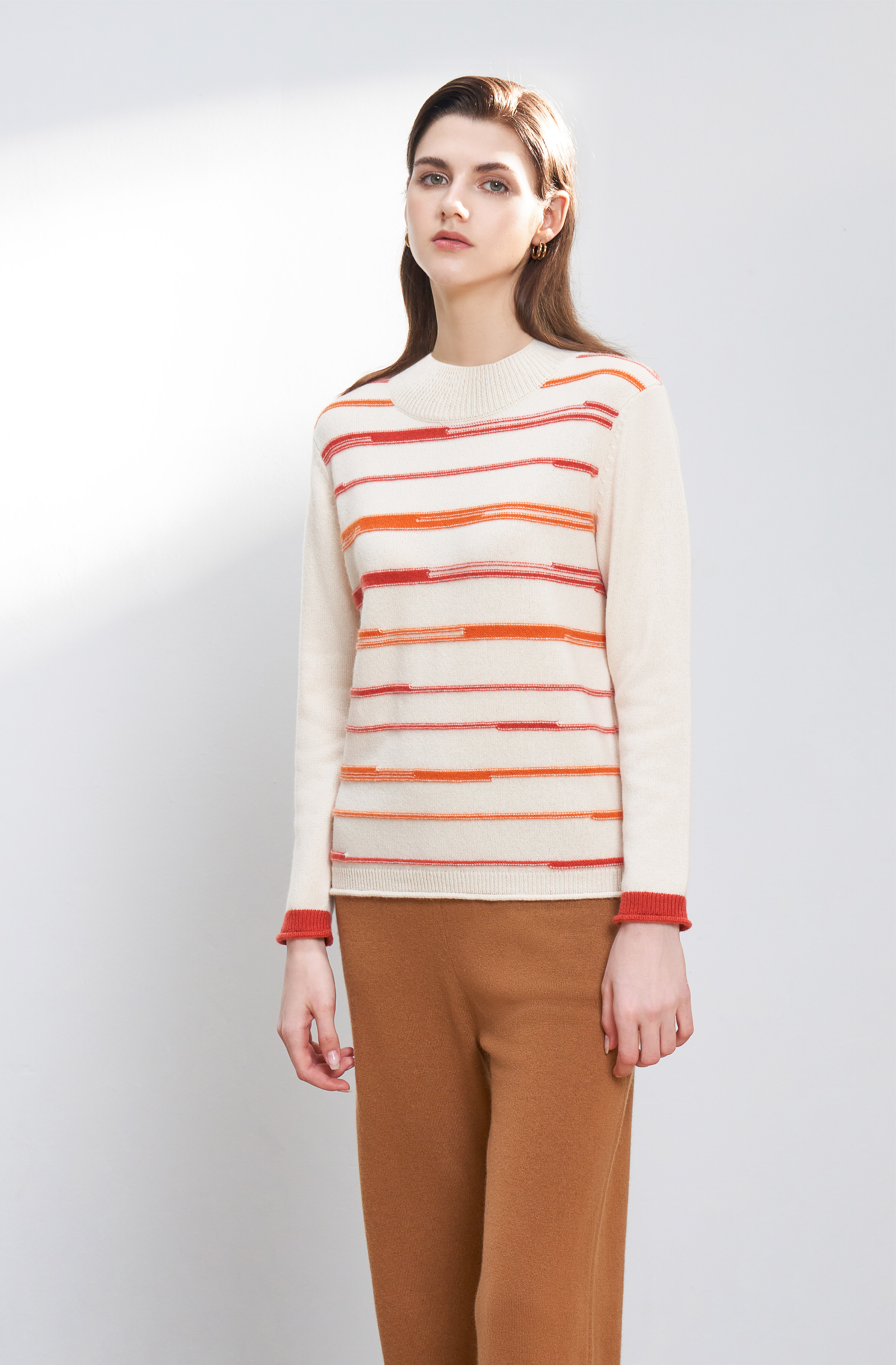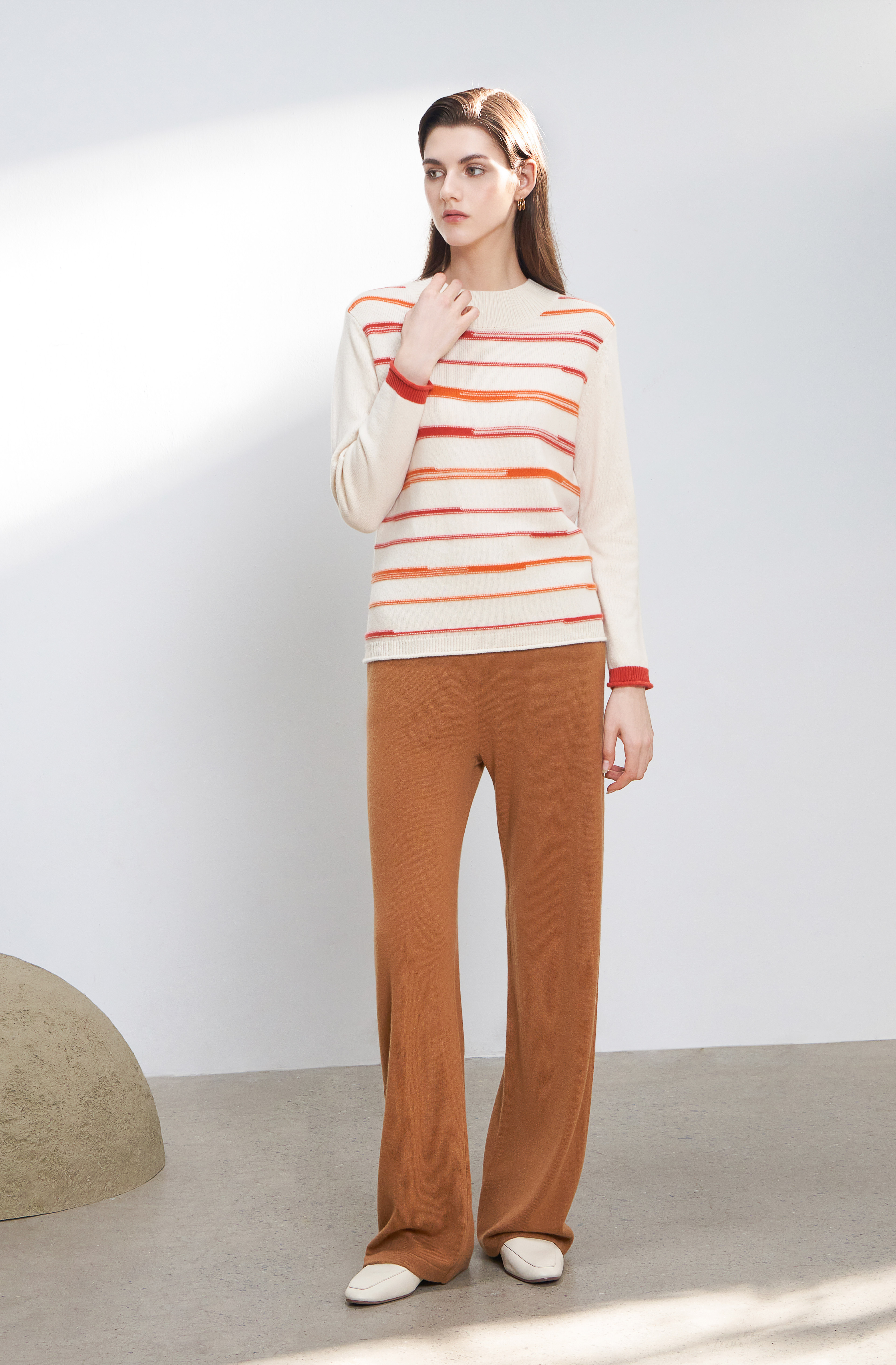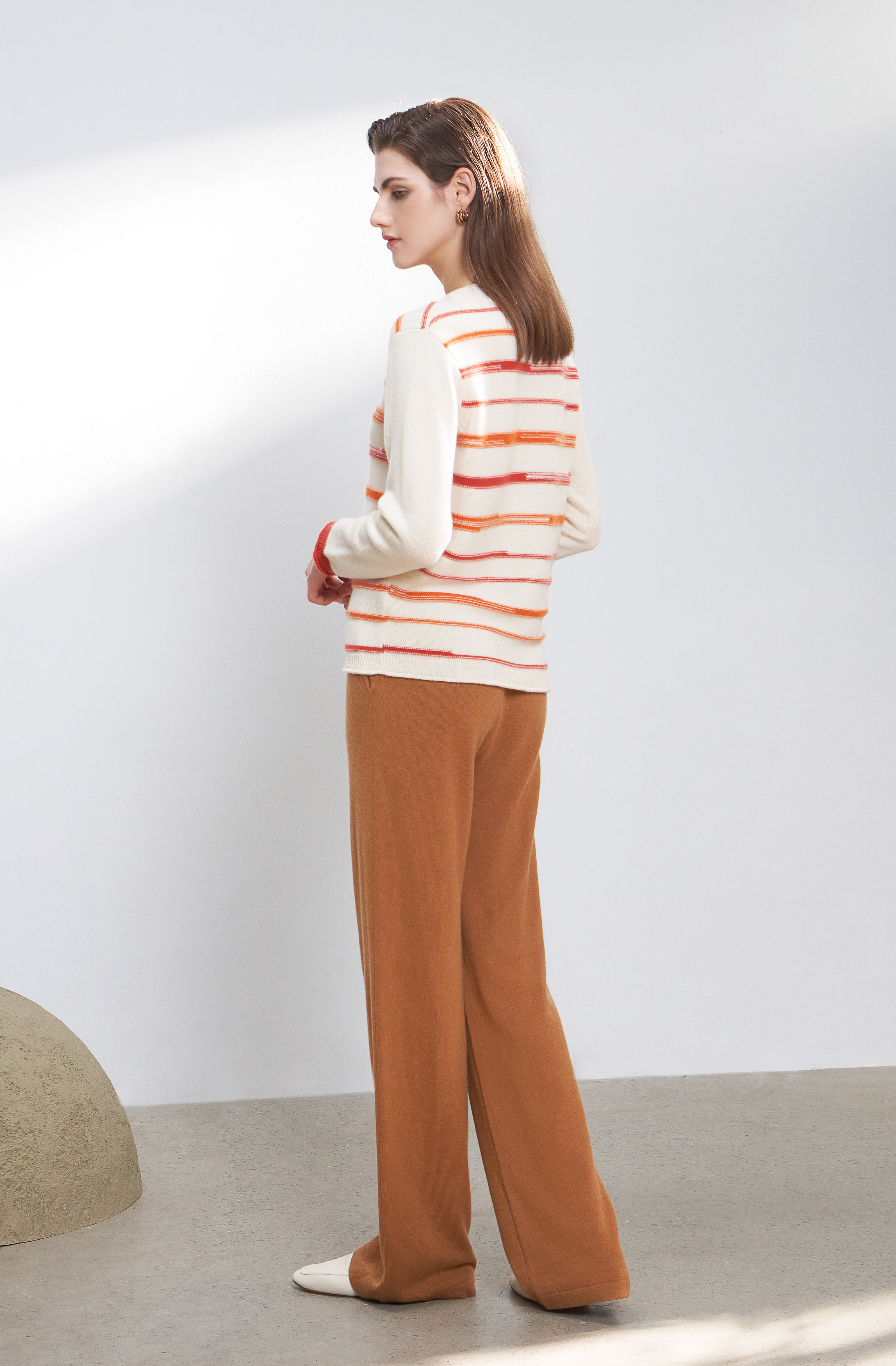 【纯羊绒彩色条纹衫】羊绒世家23年秋冬新品100%山羊绒条纹针织毛衣