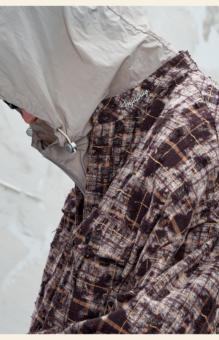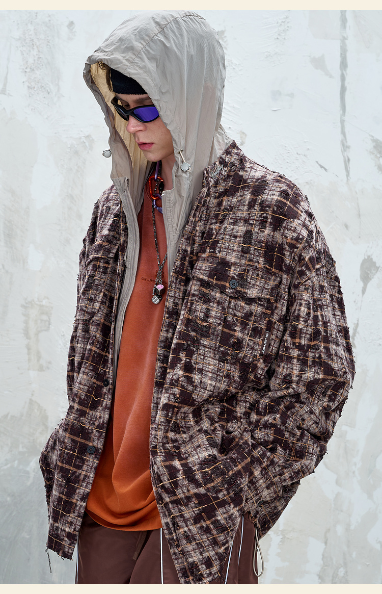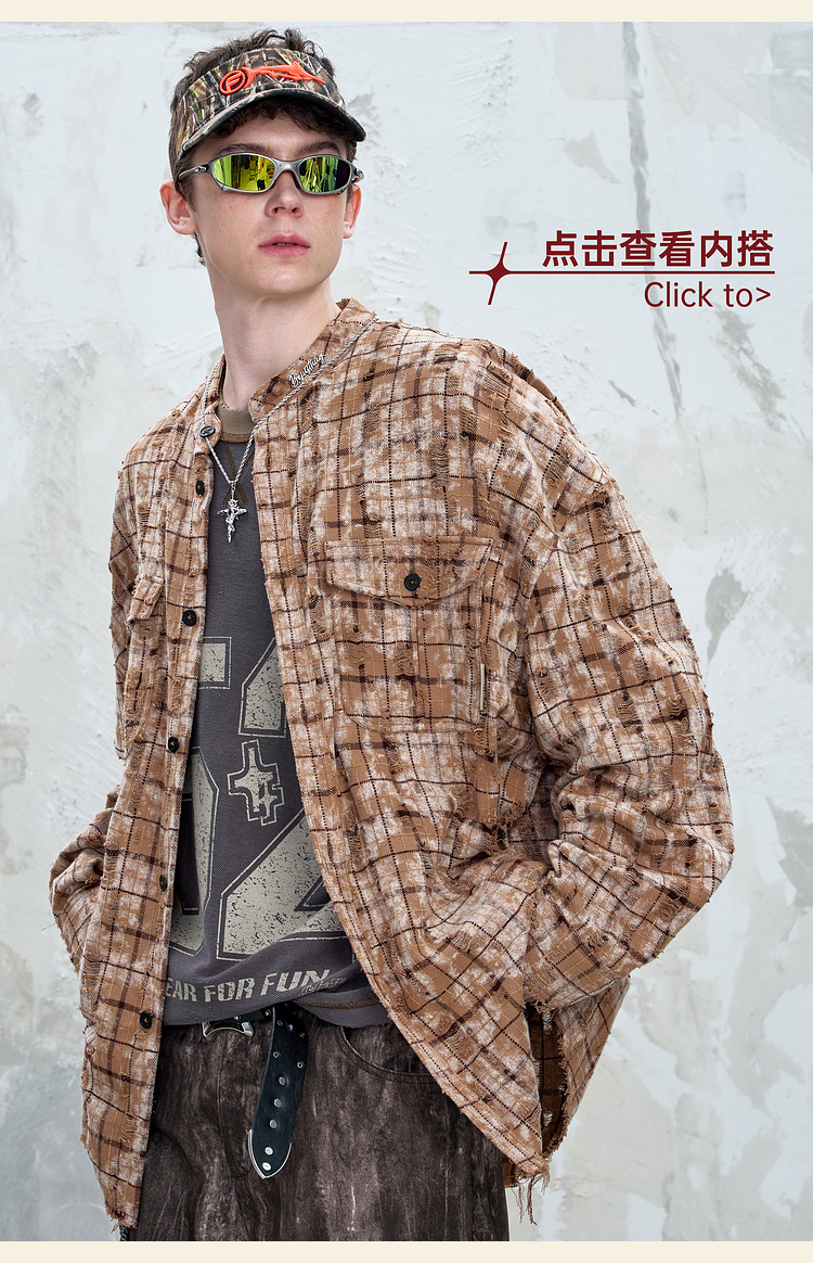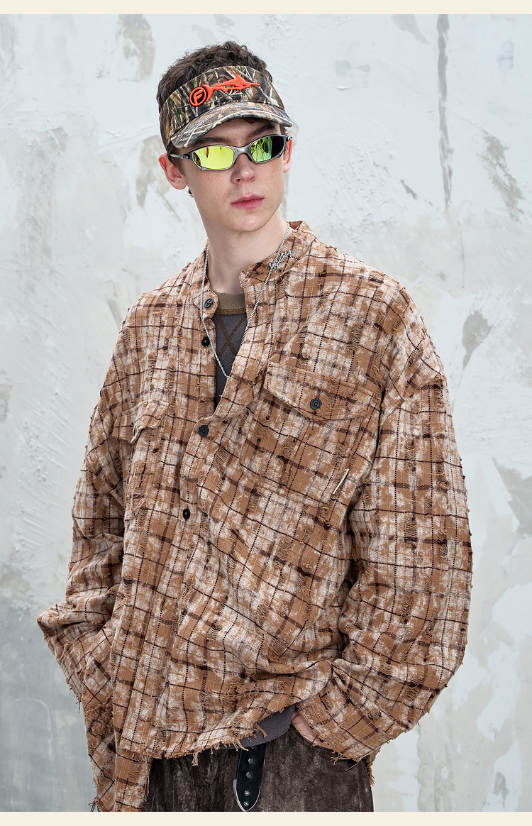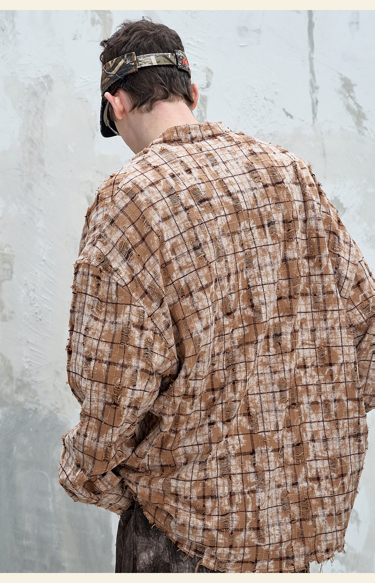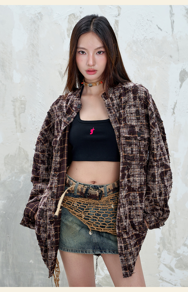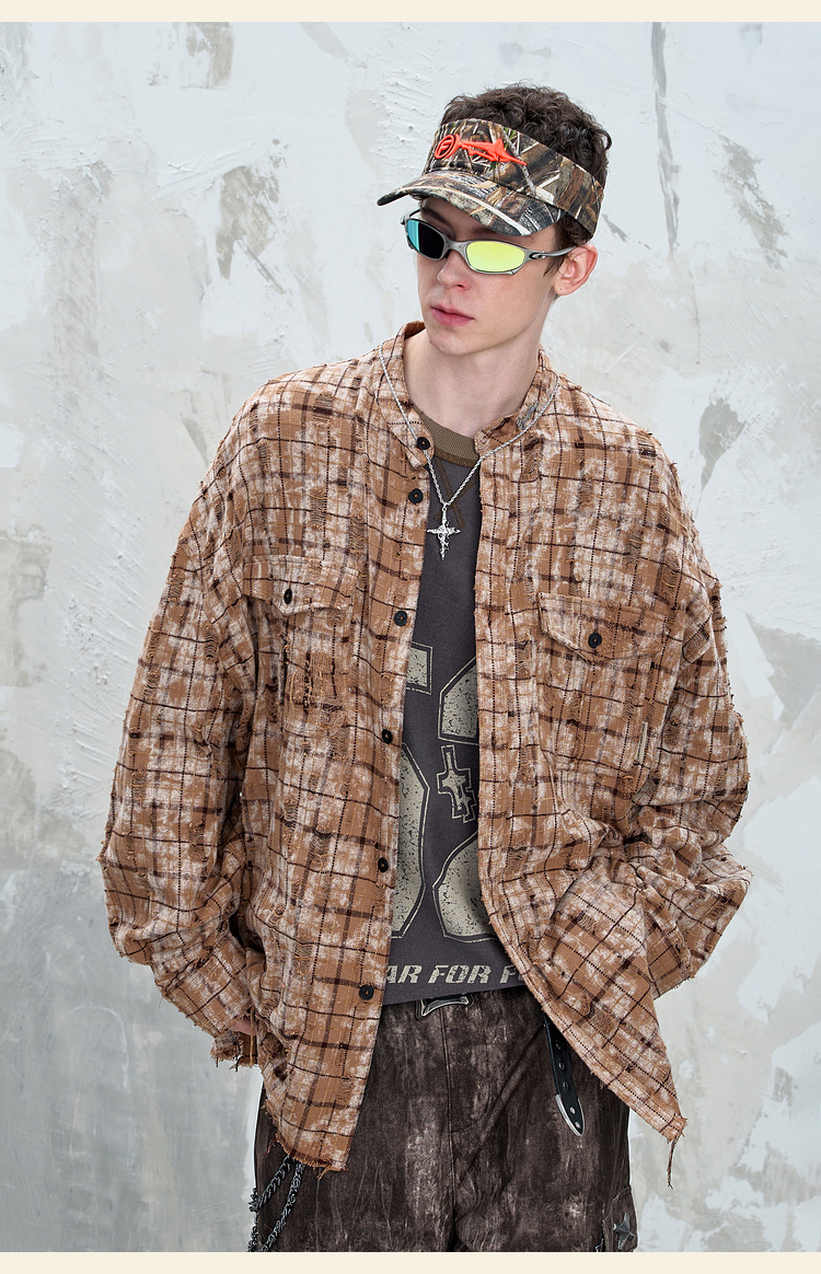 BJHG不计后果复古做旧衬衫外套男春秋潮牌废土风设计感破洞衬衣女