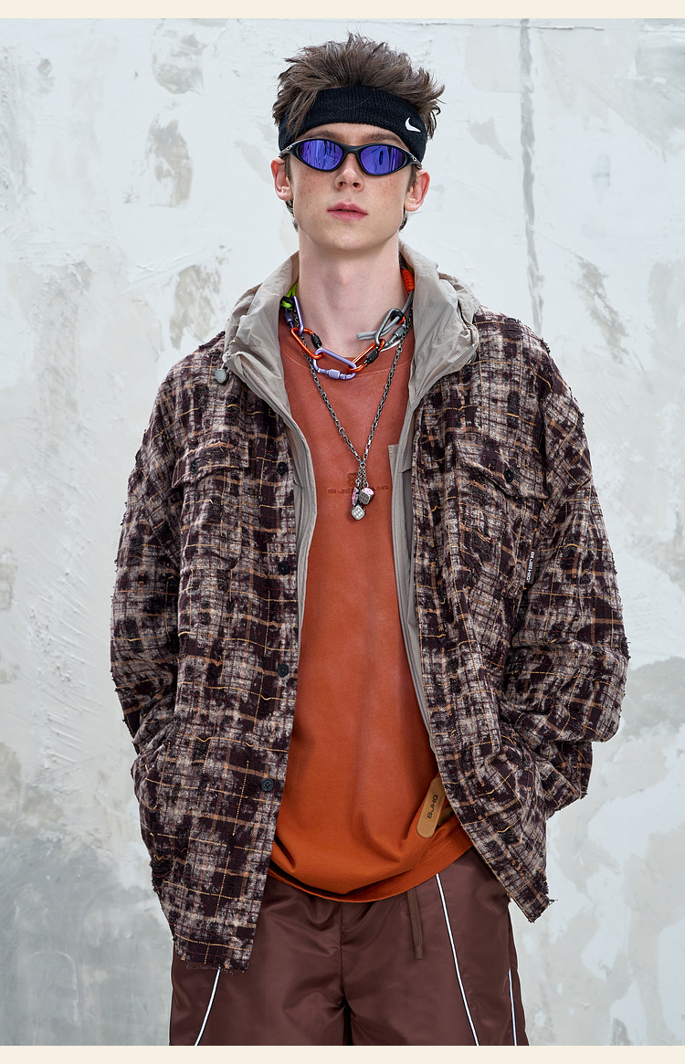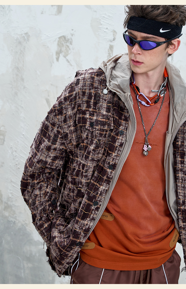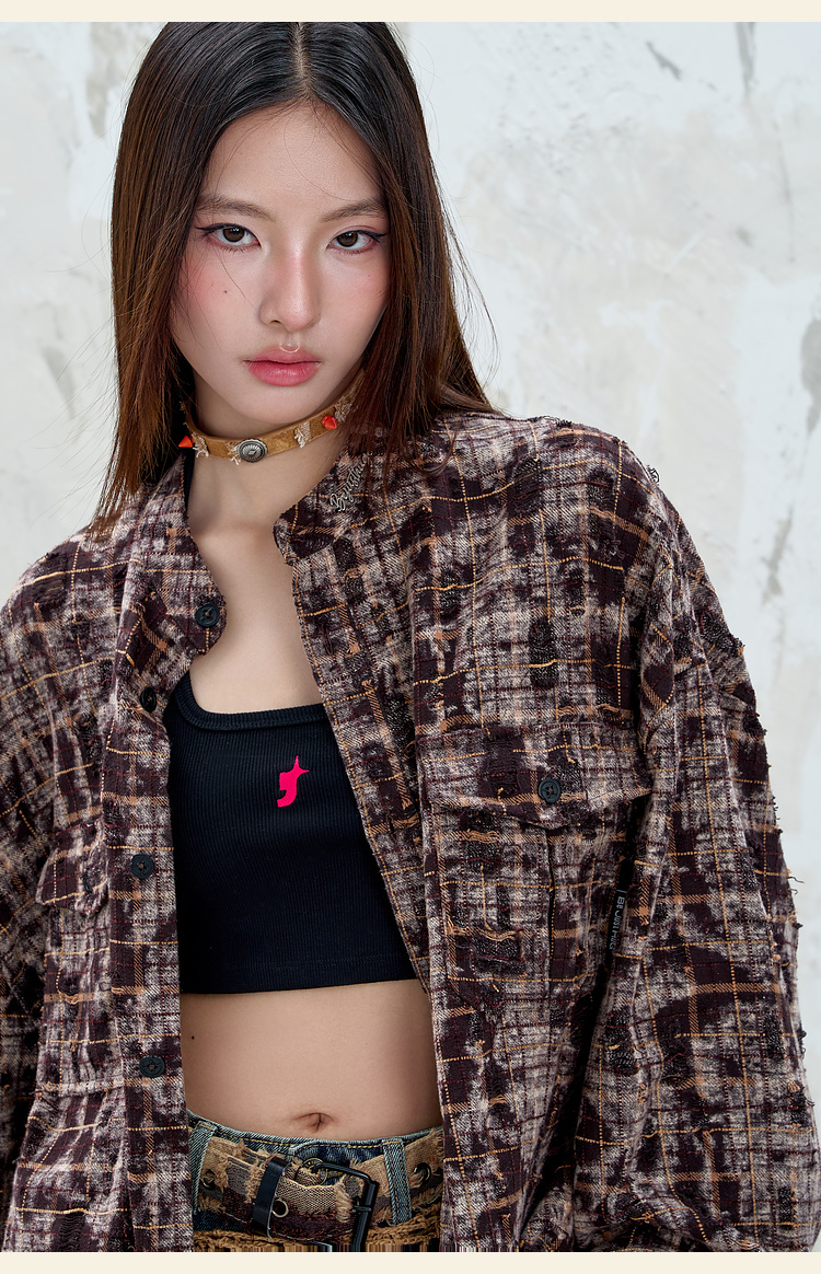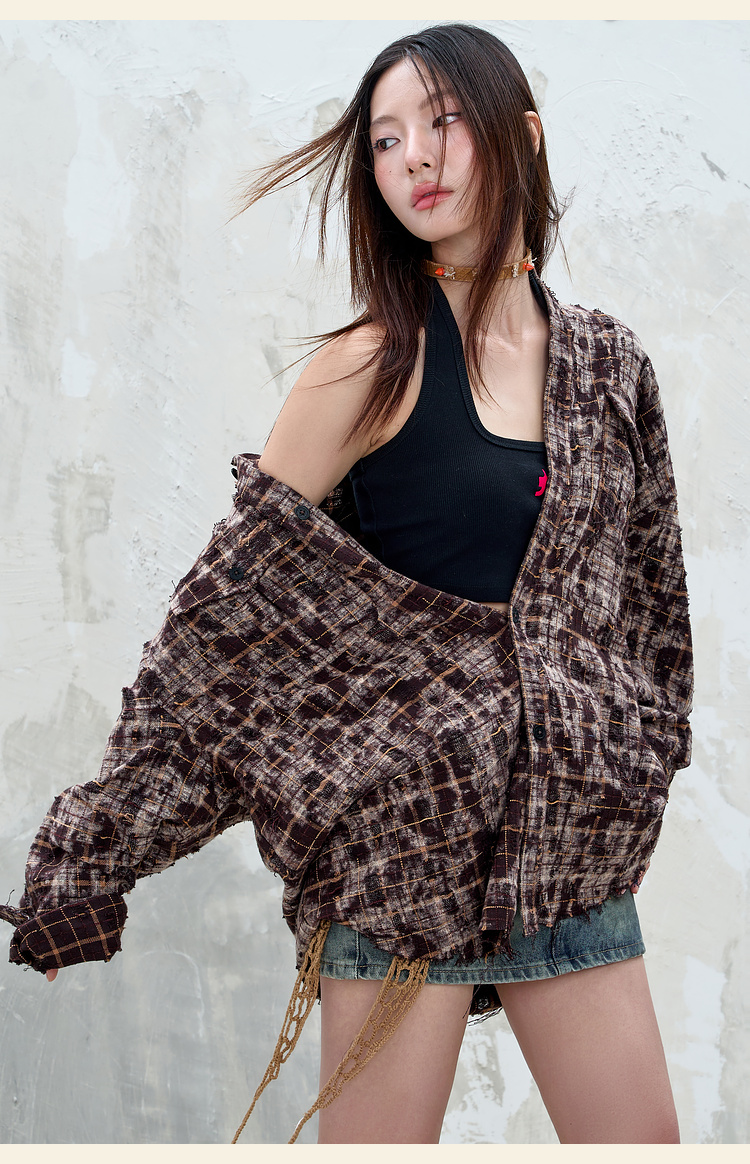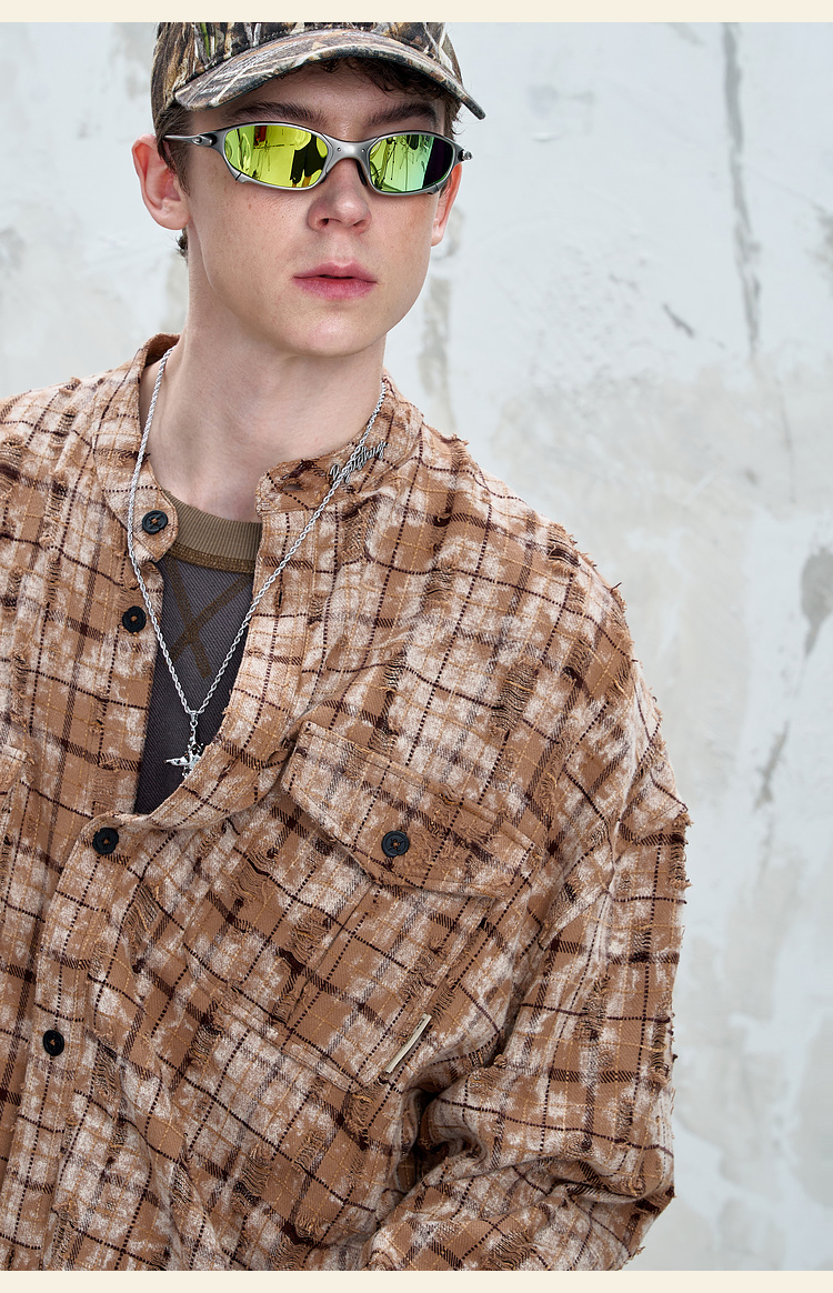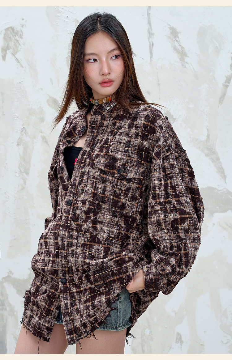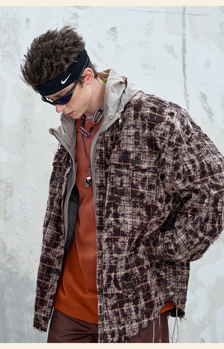 BJHG不计后果复古做旧衬衫外套男春秋潮牌废土风设计感破洞衬衣女