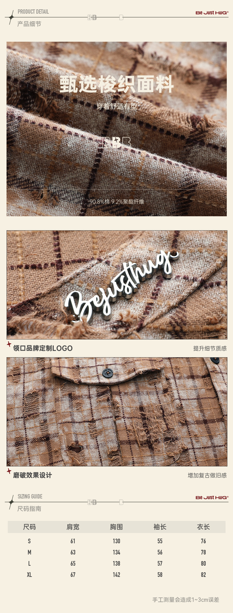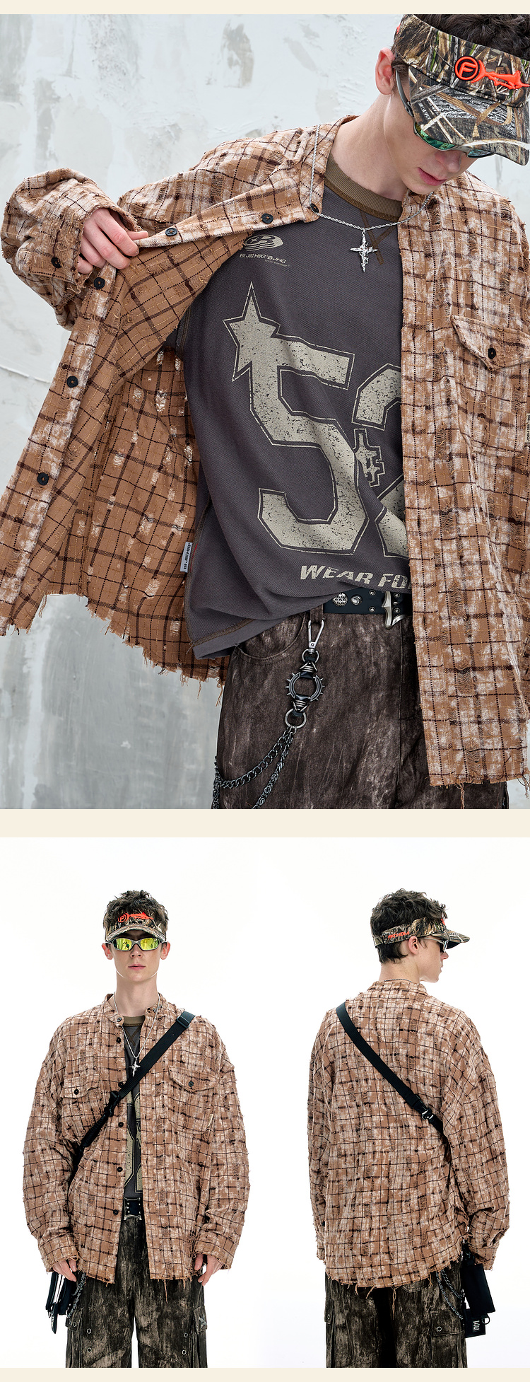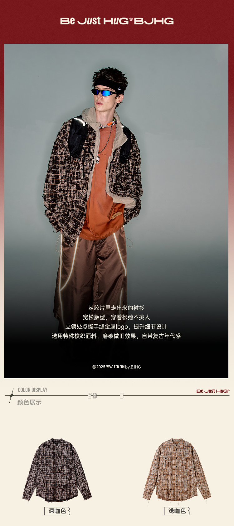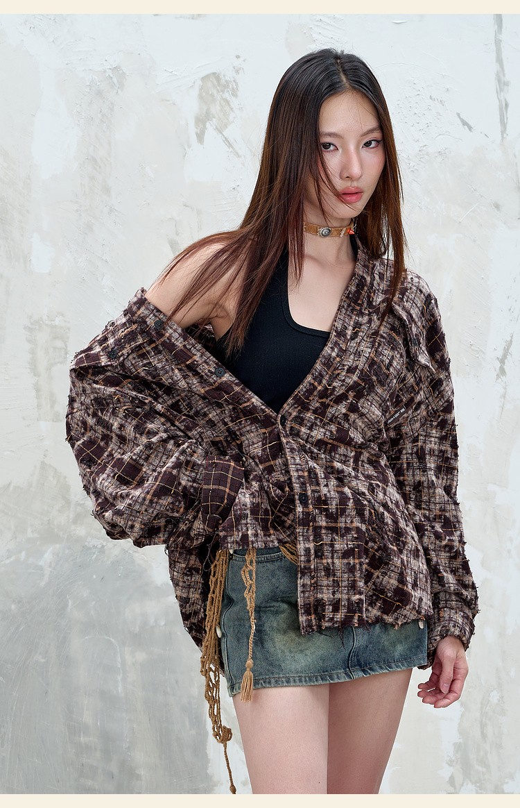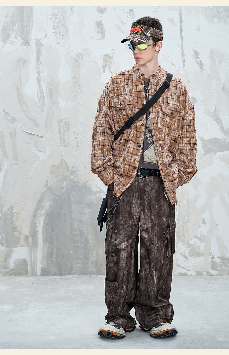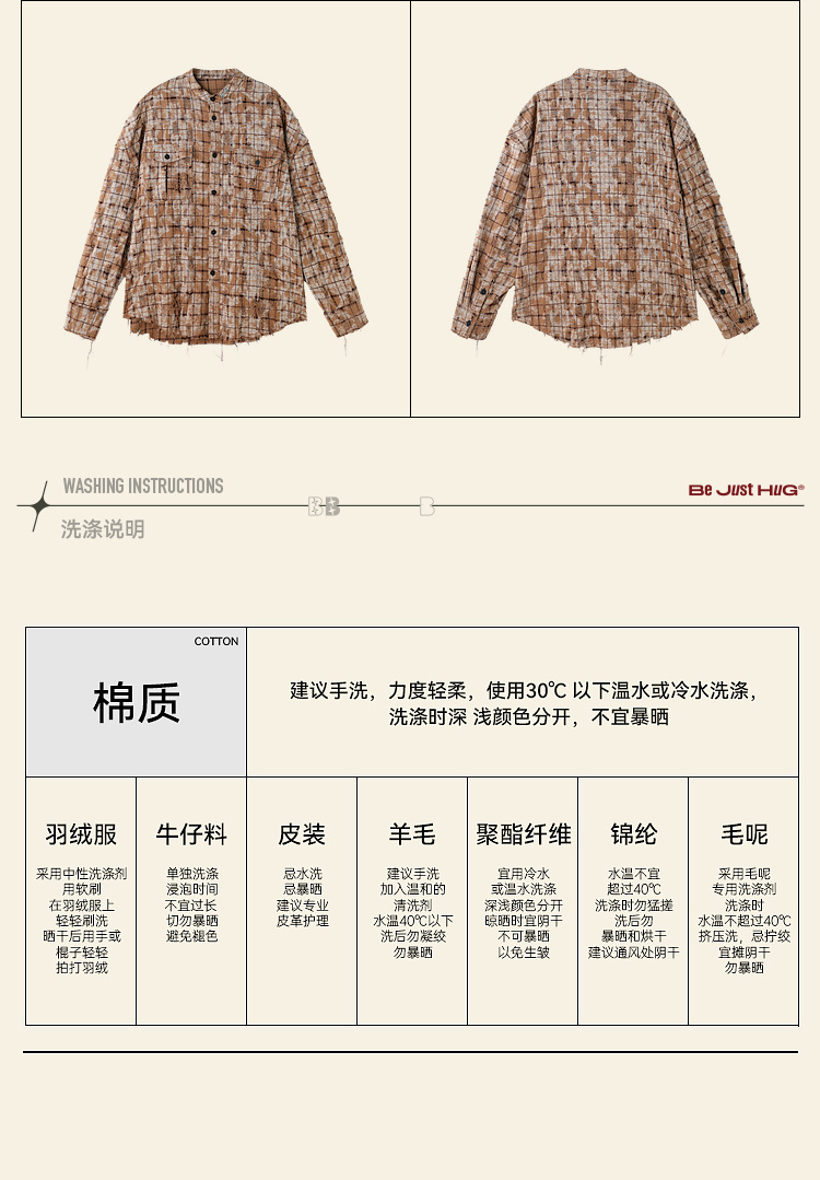 BJHG不计后果复古做旧衬衫外套男春秋潮牌废土风设计感破洞衬衣女