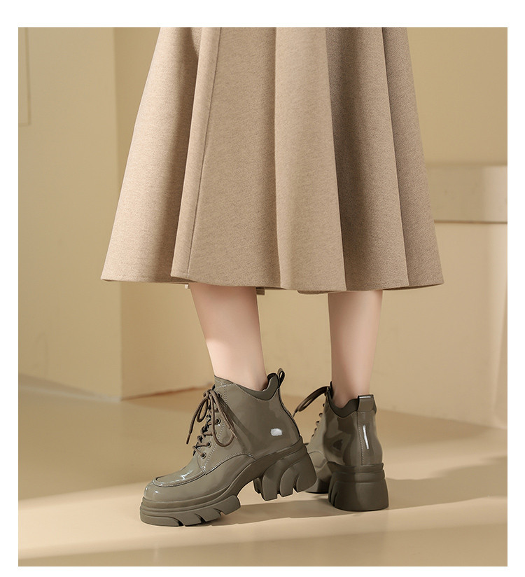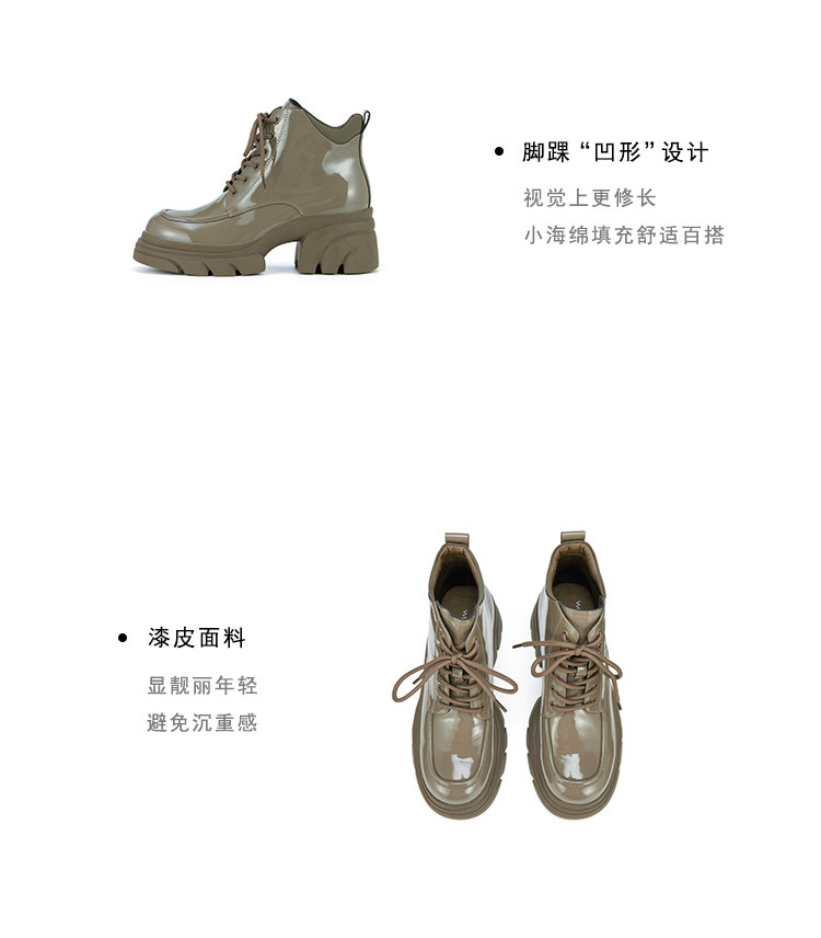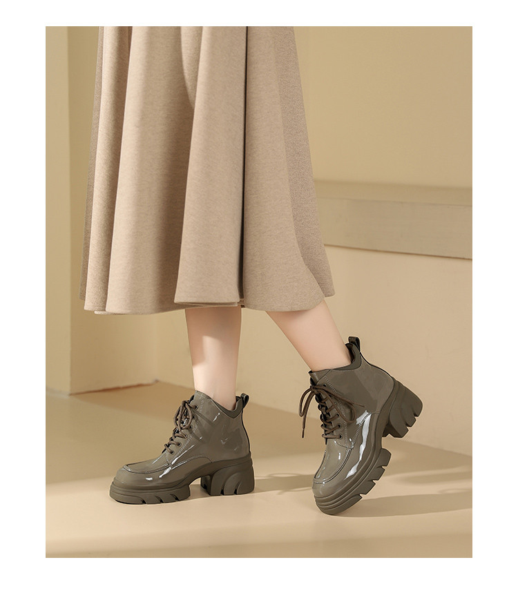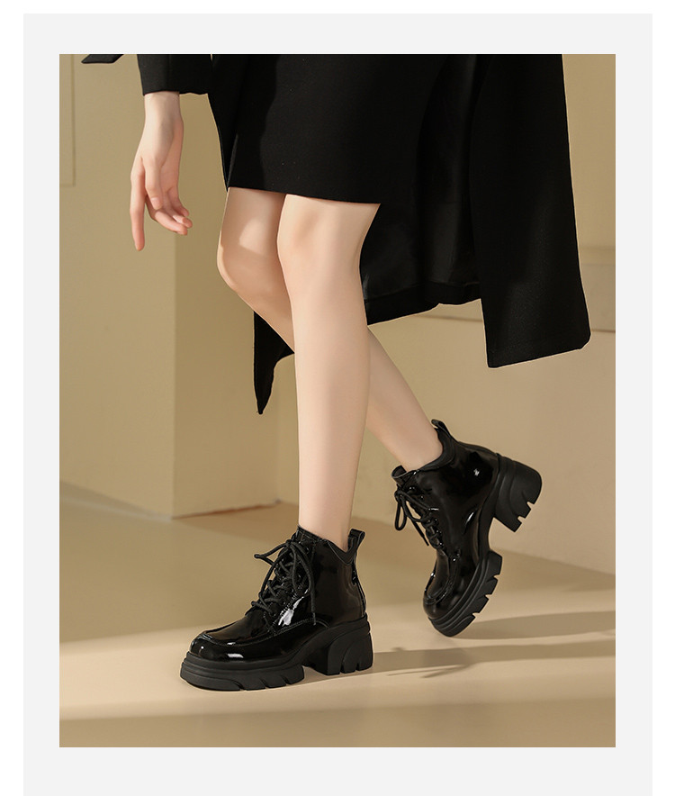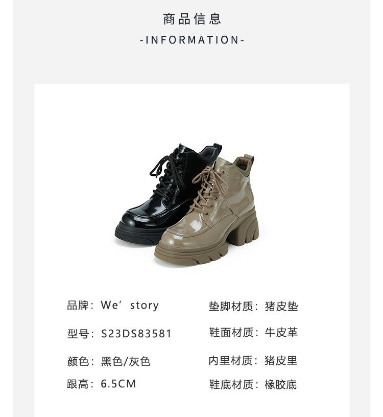 WESTORY2023年冬季新款系带厚底乐福鞋潮酷百搭亮面短靴时装靴女S23DS83581