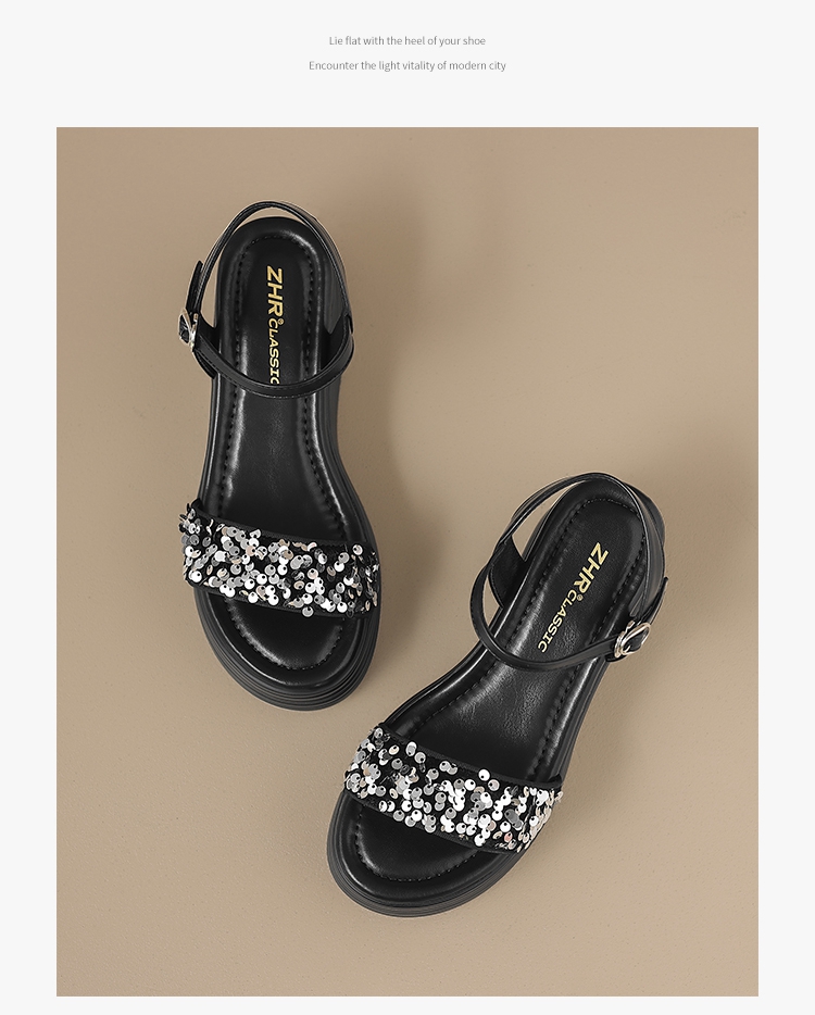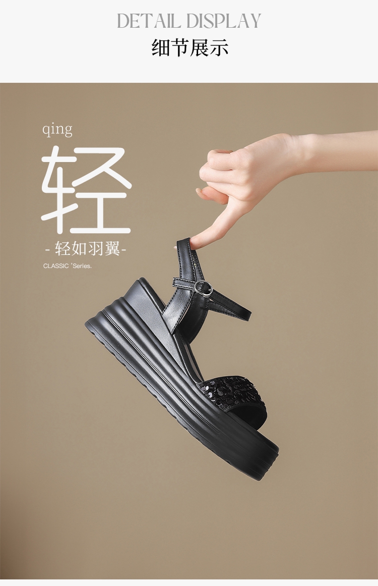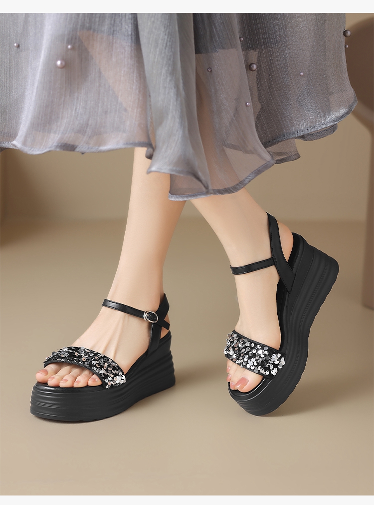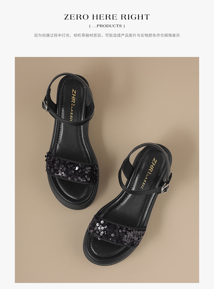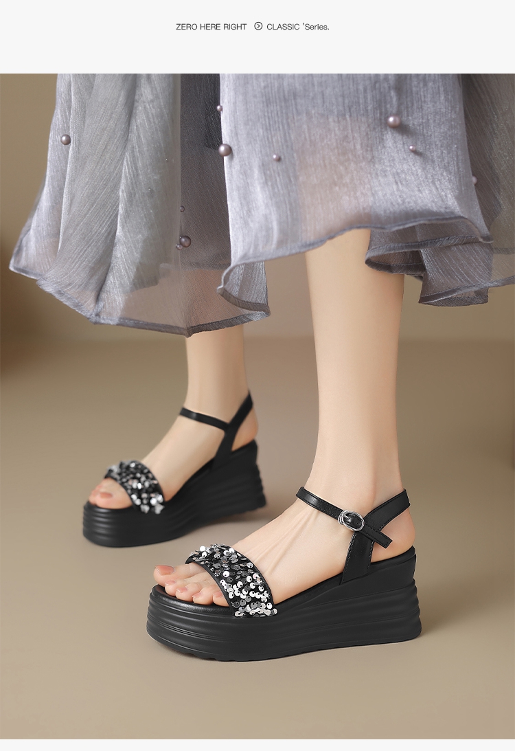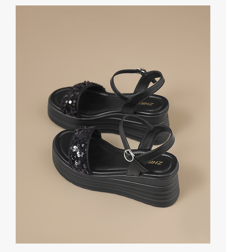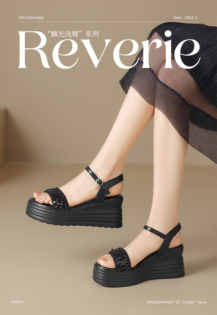 ZHR坡跟凉鞋女2025水钻绝美厚底商场同款增高轻奢松糕罗马女鞋