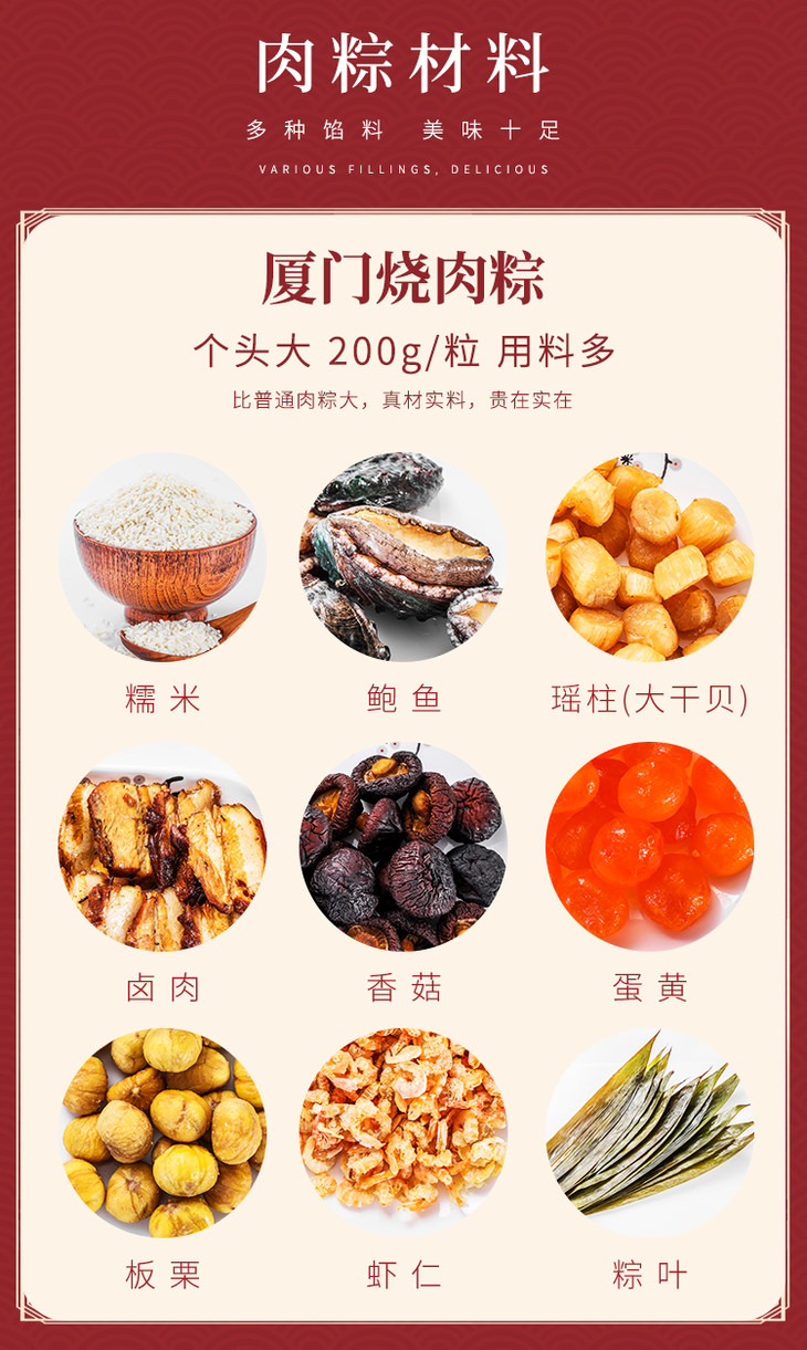 【云优选】厦门1980烧肉粽 鲍鱼瑶柱粽200g*4个手提袋装配4包甜辣酱