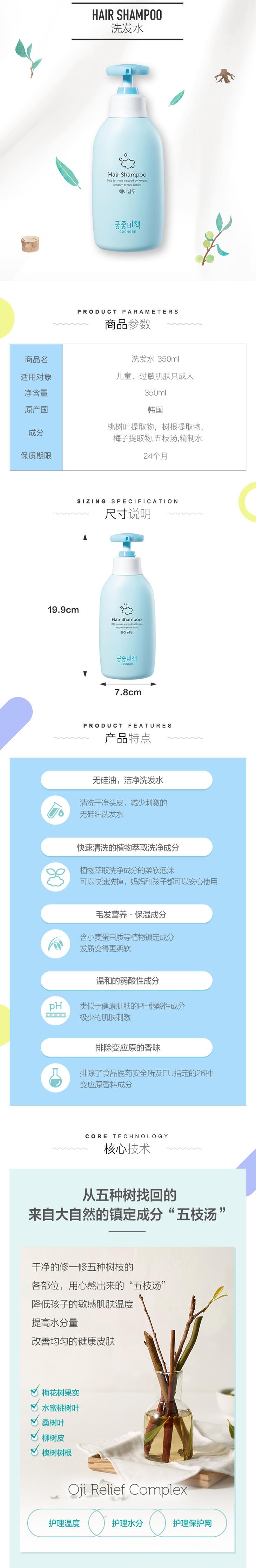 韩国宫中秘策Goongbe婴幼儿无硅油温和大自然洗发水350ml【宫中秘策】