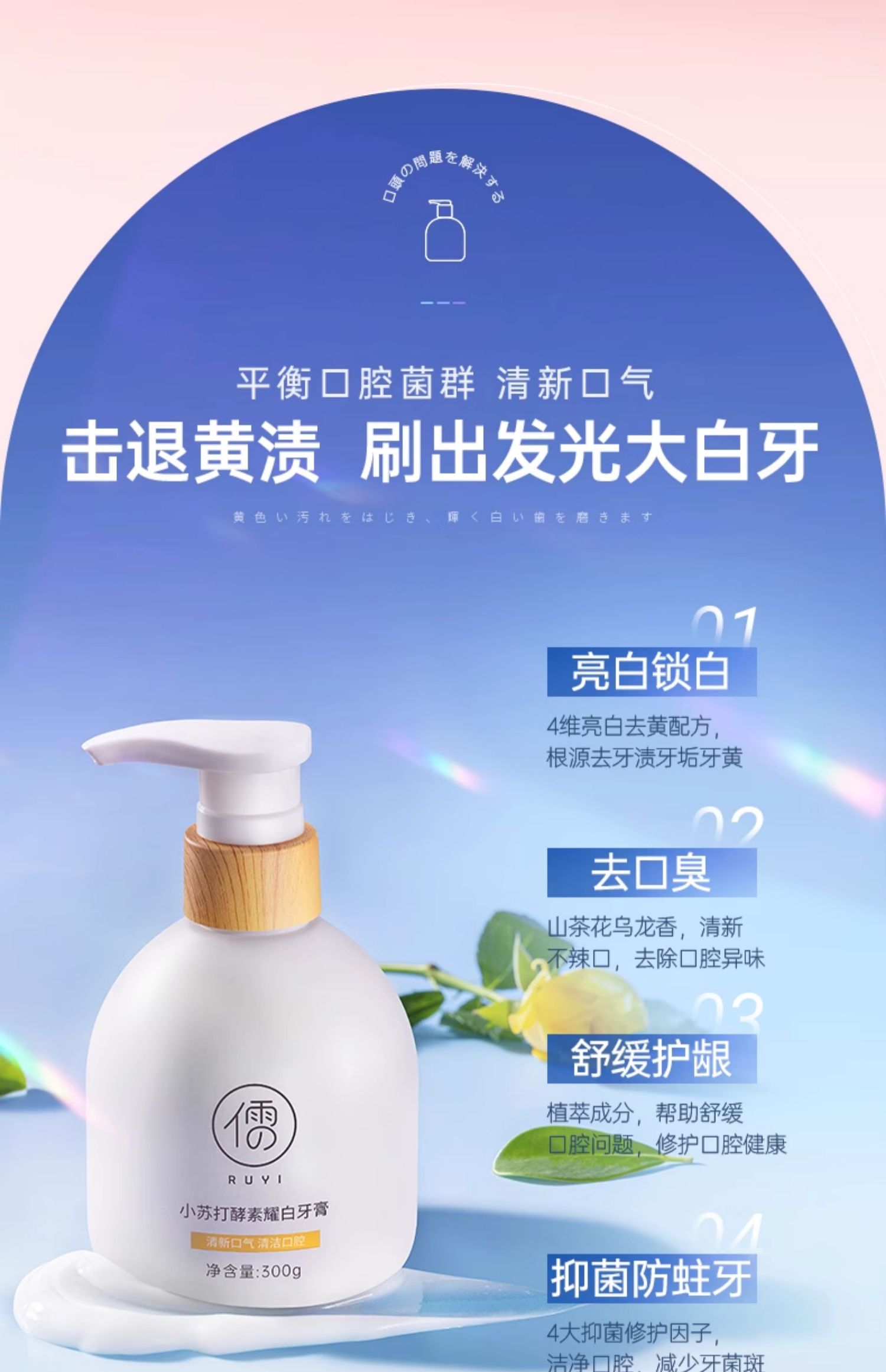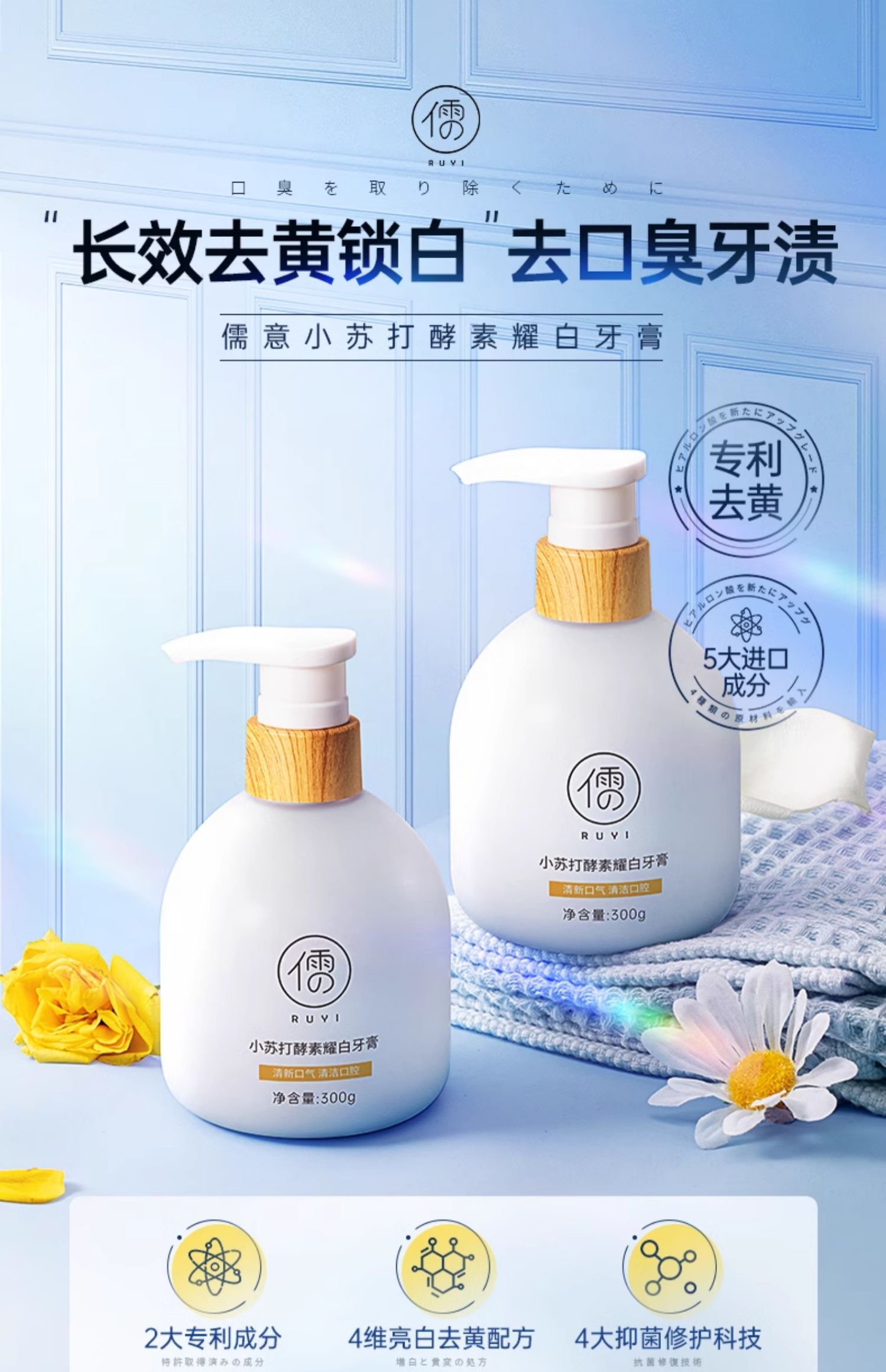 儒意小苏打酵素耀白牙膏300g 美白牙齿 去牙渍口臭 清新口气 | 儒意官方商城
