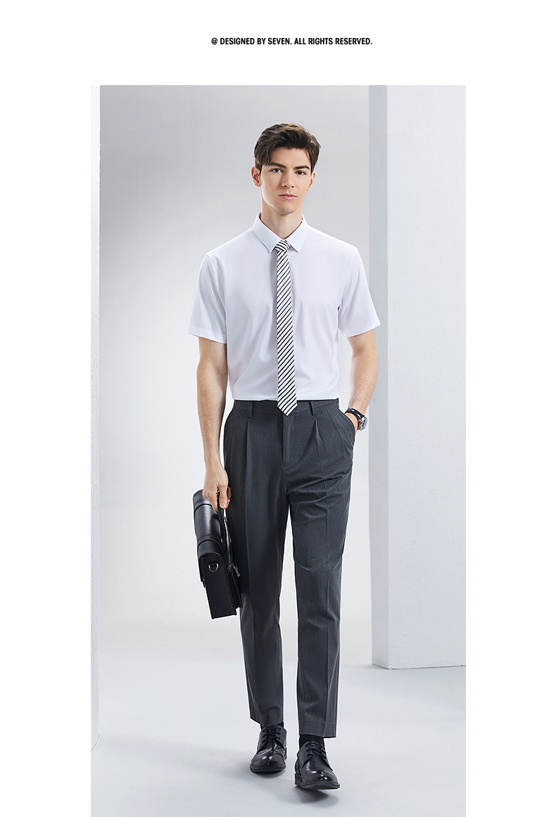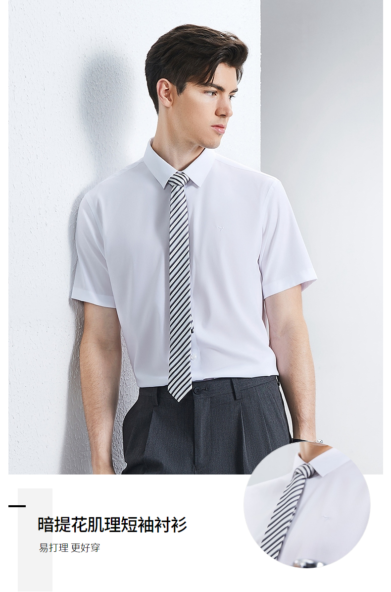 【含莫代尔】柒牌男士短袖衬衫2024夏季新款商务百搭提花抗皱衬衣 126A70460