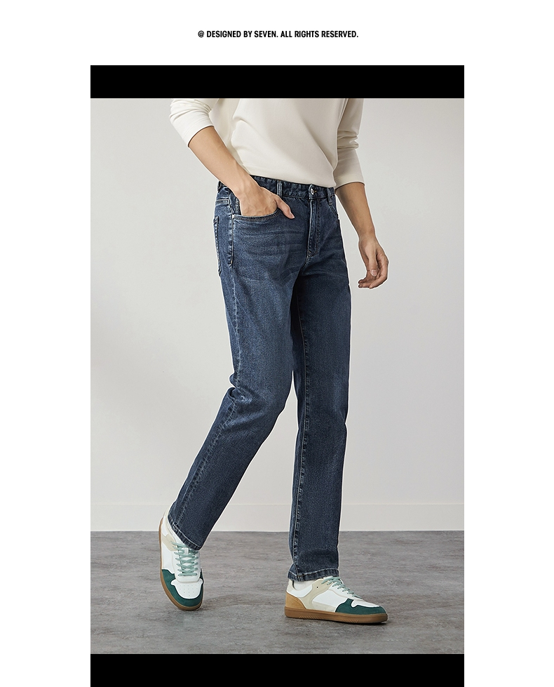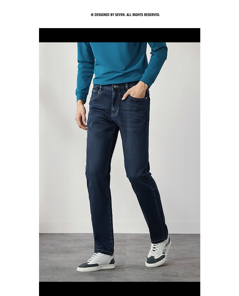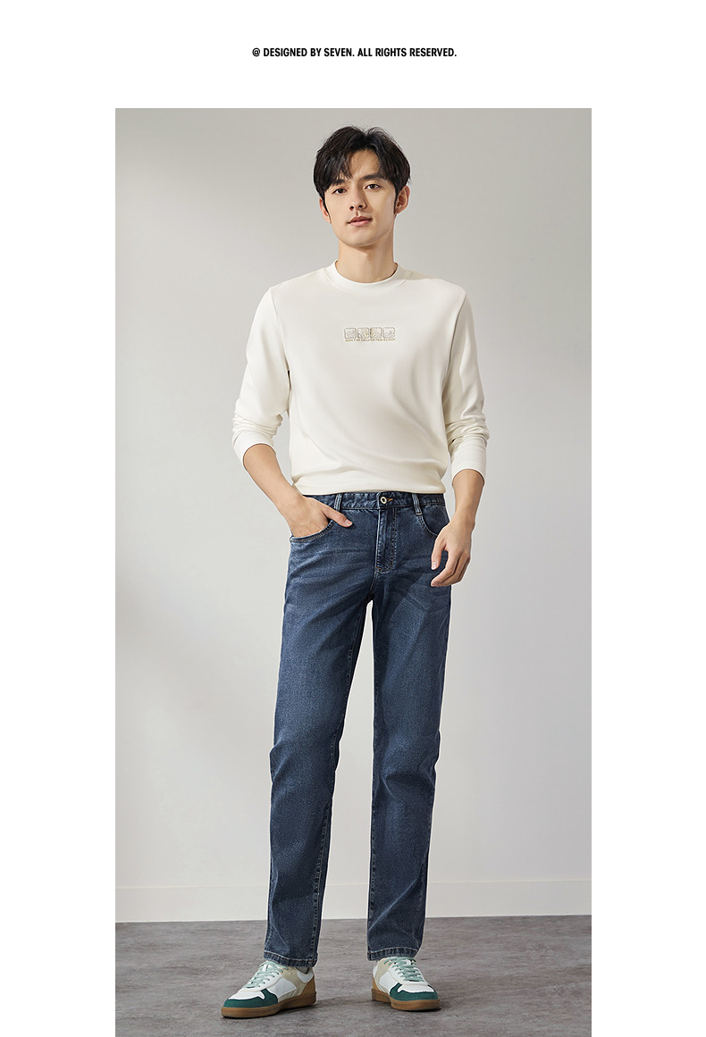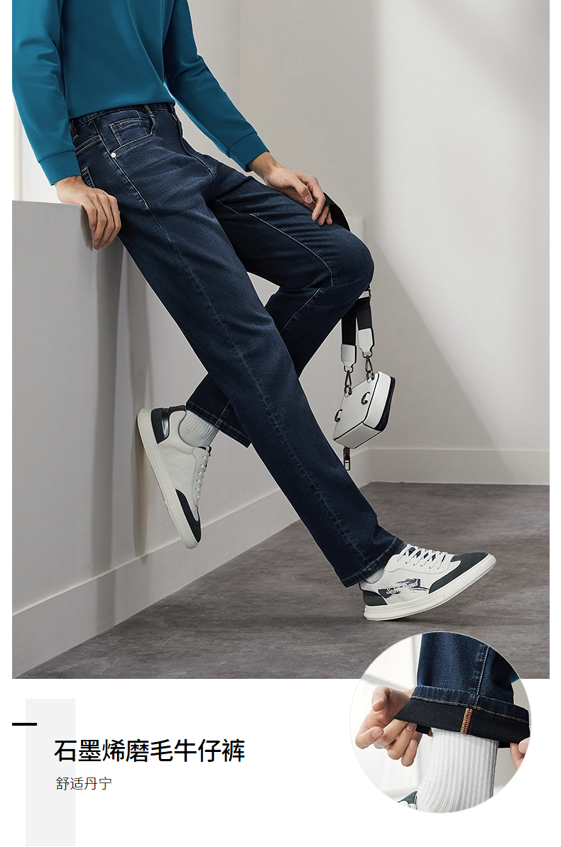 【远红外蓄热】柒牌水洗牛仔裤男秋冬新款休闲百搭磨毛舒适直筒裤 127H71380