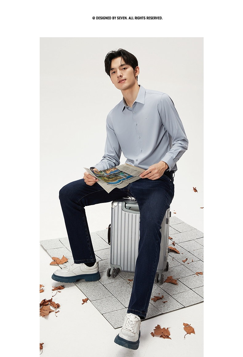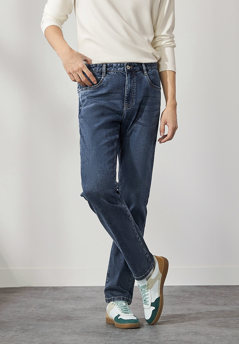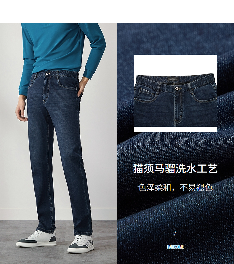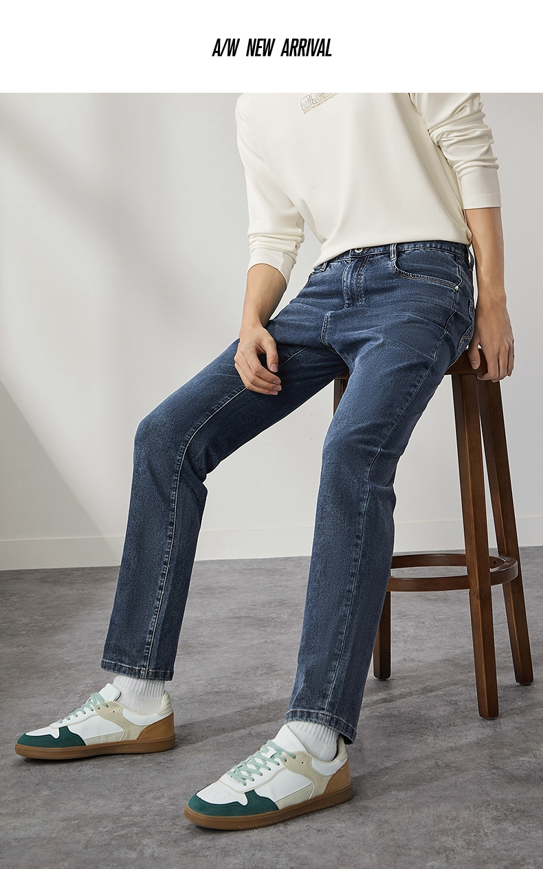 【远红外蓄热】柒牌水洗牛仔裤男秋冬新款休闲百搭磨毛舒适直筒裤 127H71380