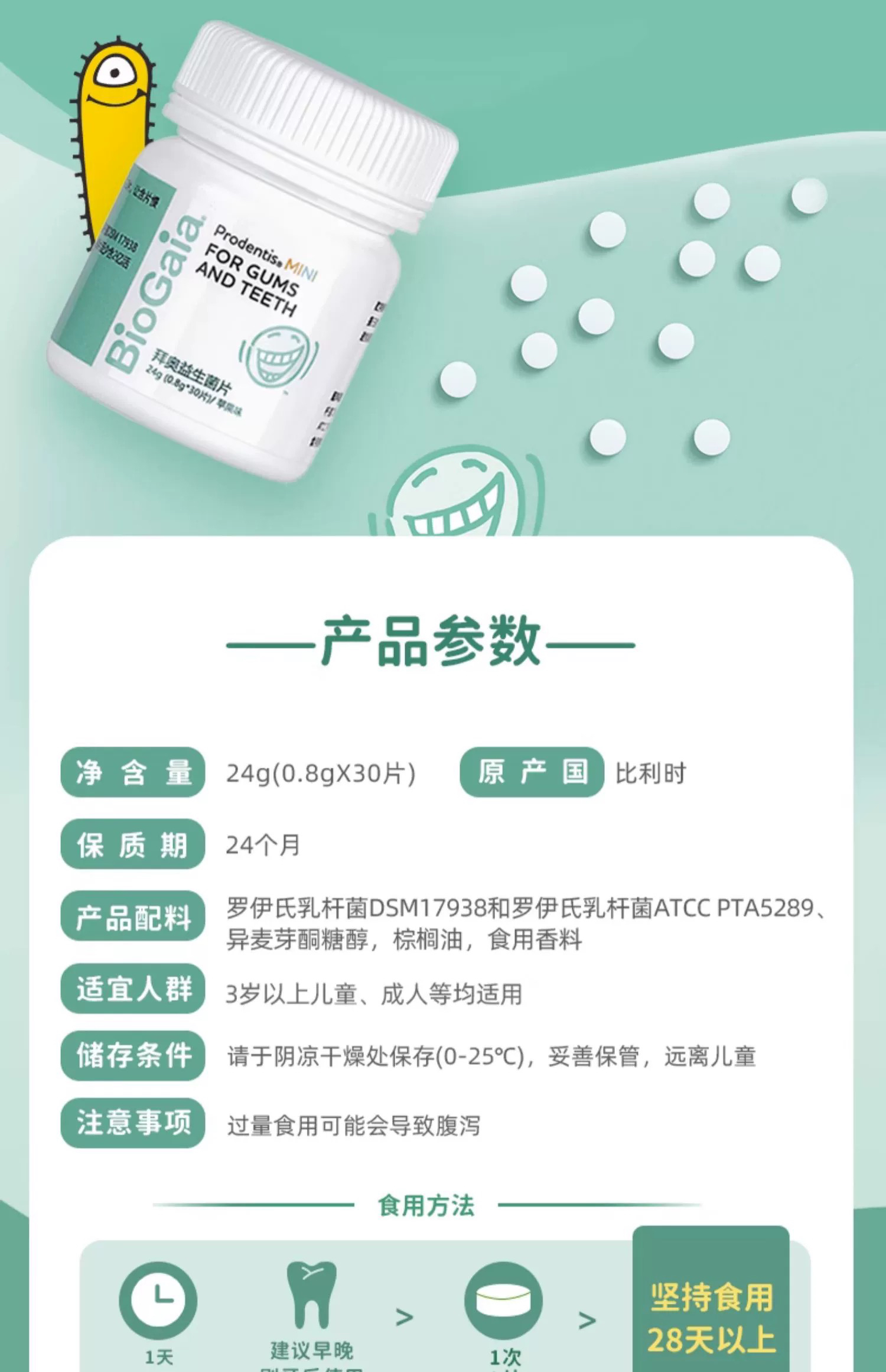 Bio Gaia/拜奥口腔益生菌含片 保护牙龈去除口臭30片装 3岁以上/哺乳期/孕期/成人可使用(苹果味)