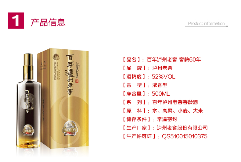 【窖龄酒】38°百年泸州老窖60年窖龄酒 单瓶500mL 整箱6瓶