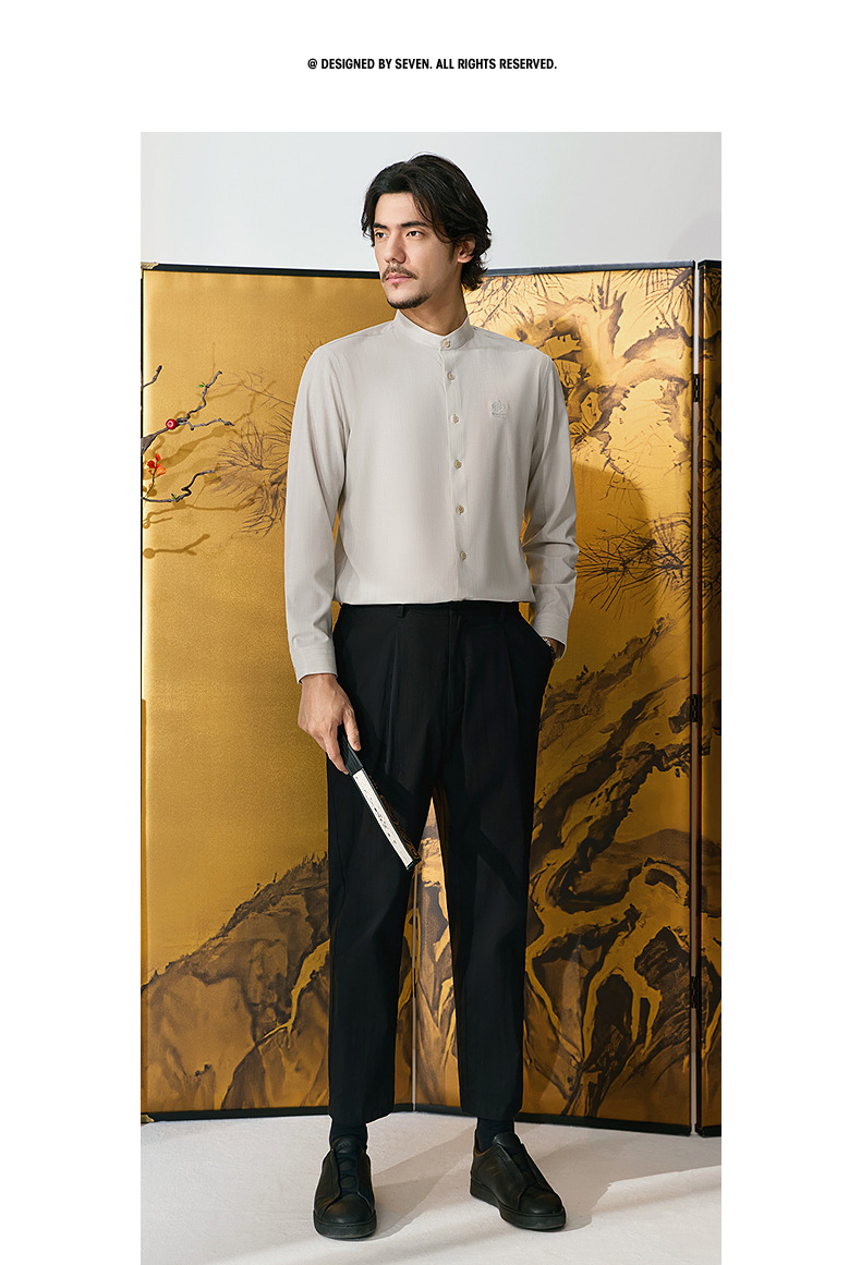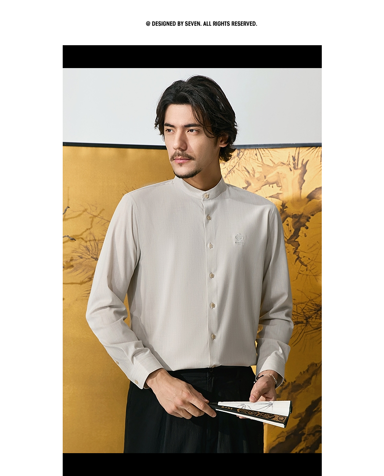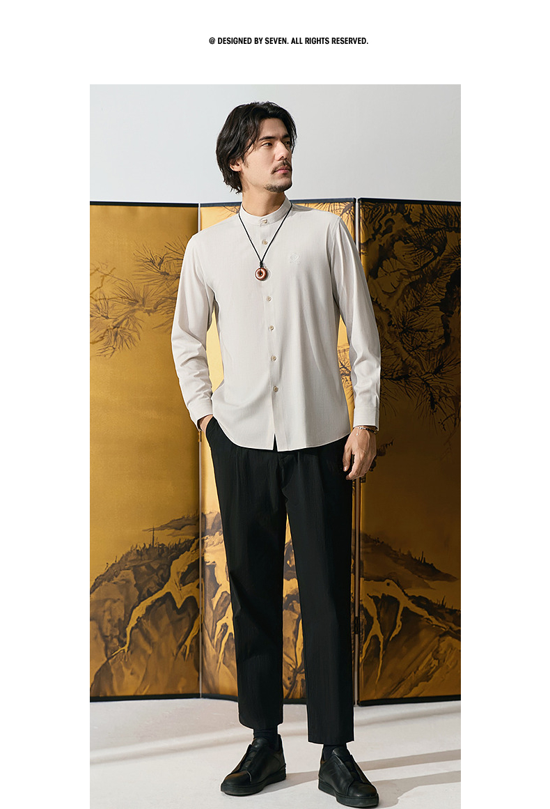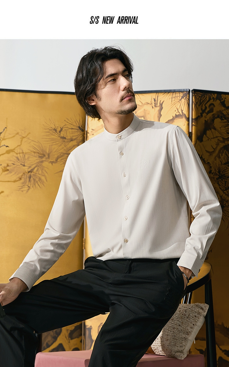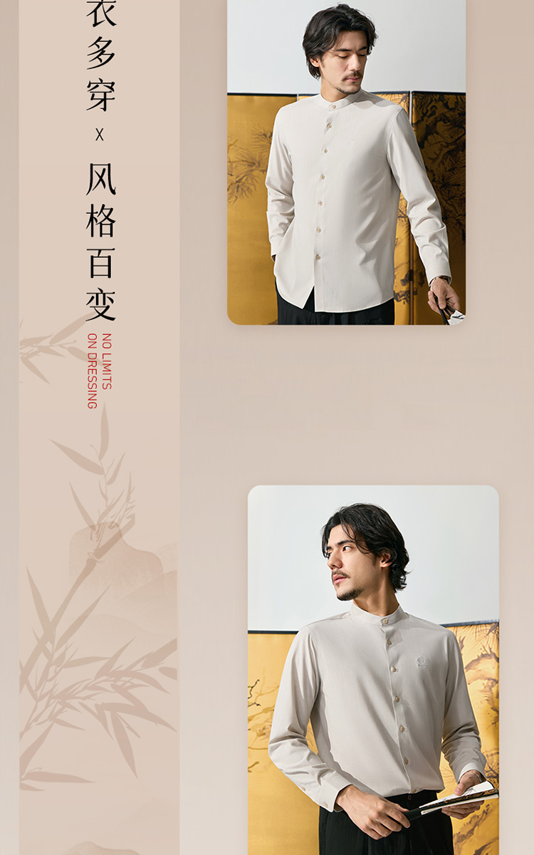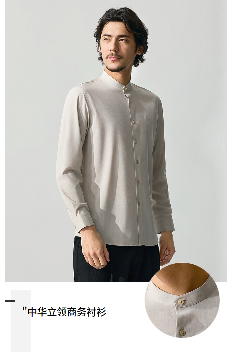 【薛晨同款】柒牌男装长袖衬衫2025春季新款休闲简约男士花纱衬衣128A71710