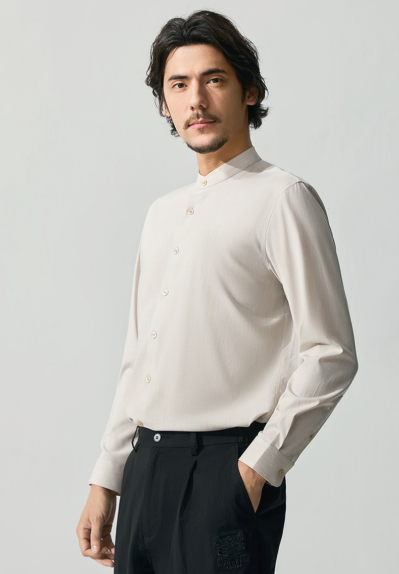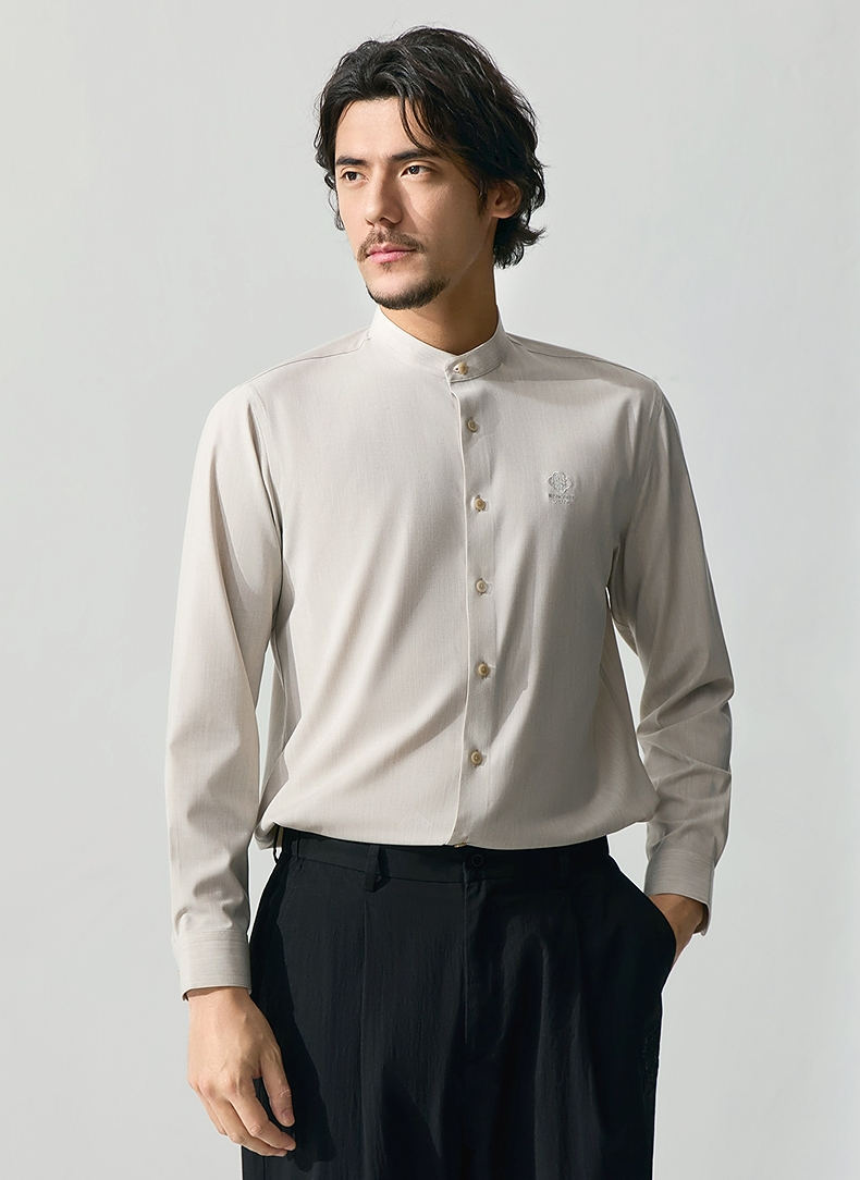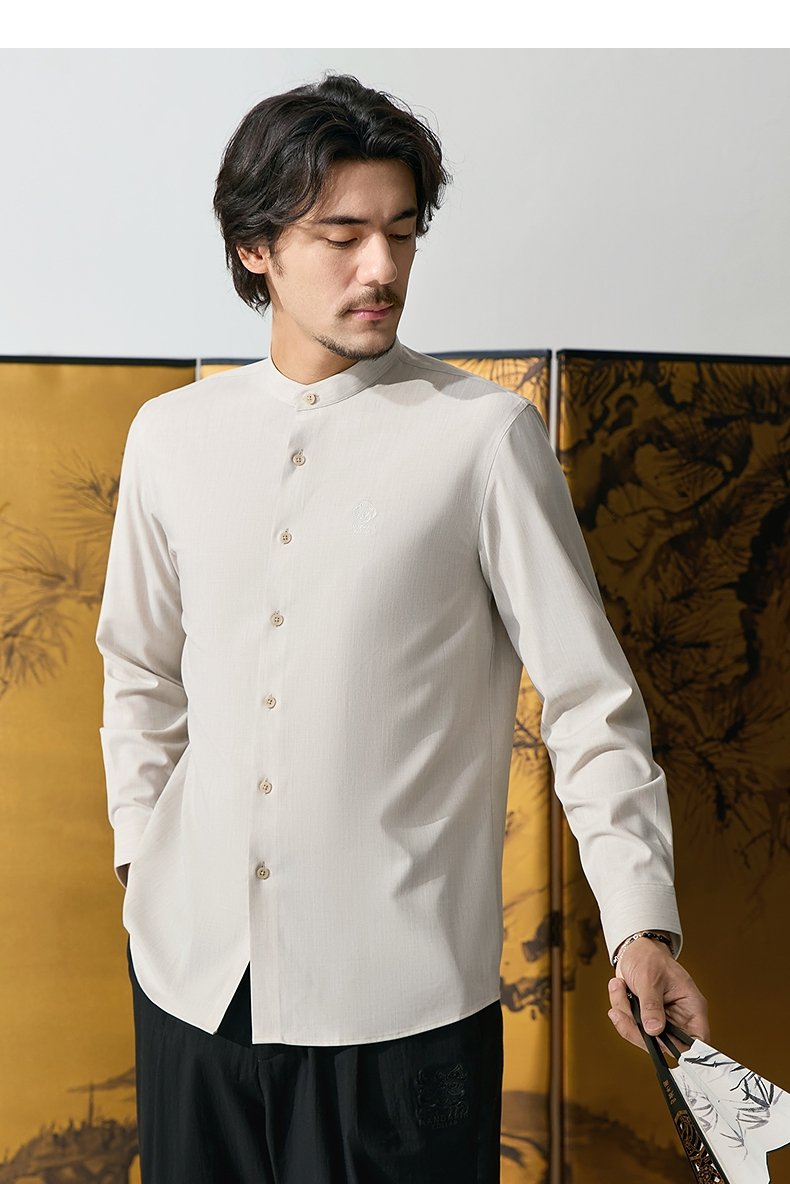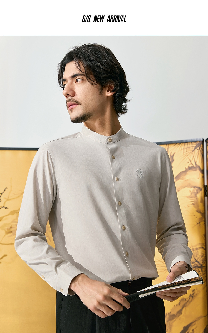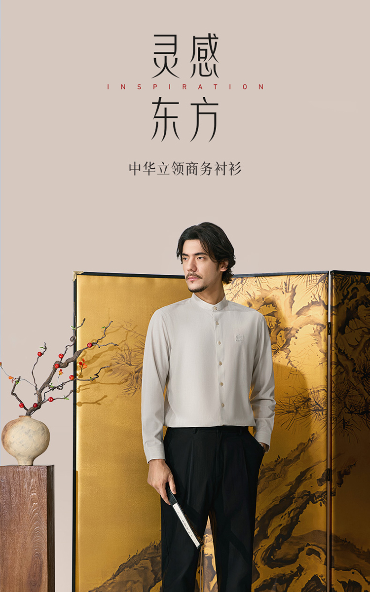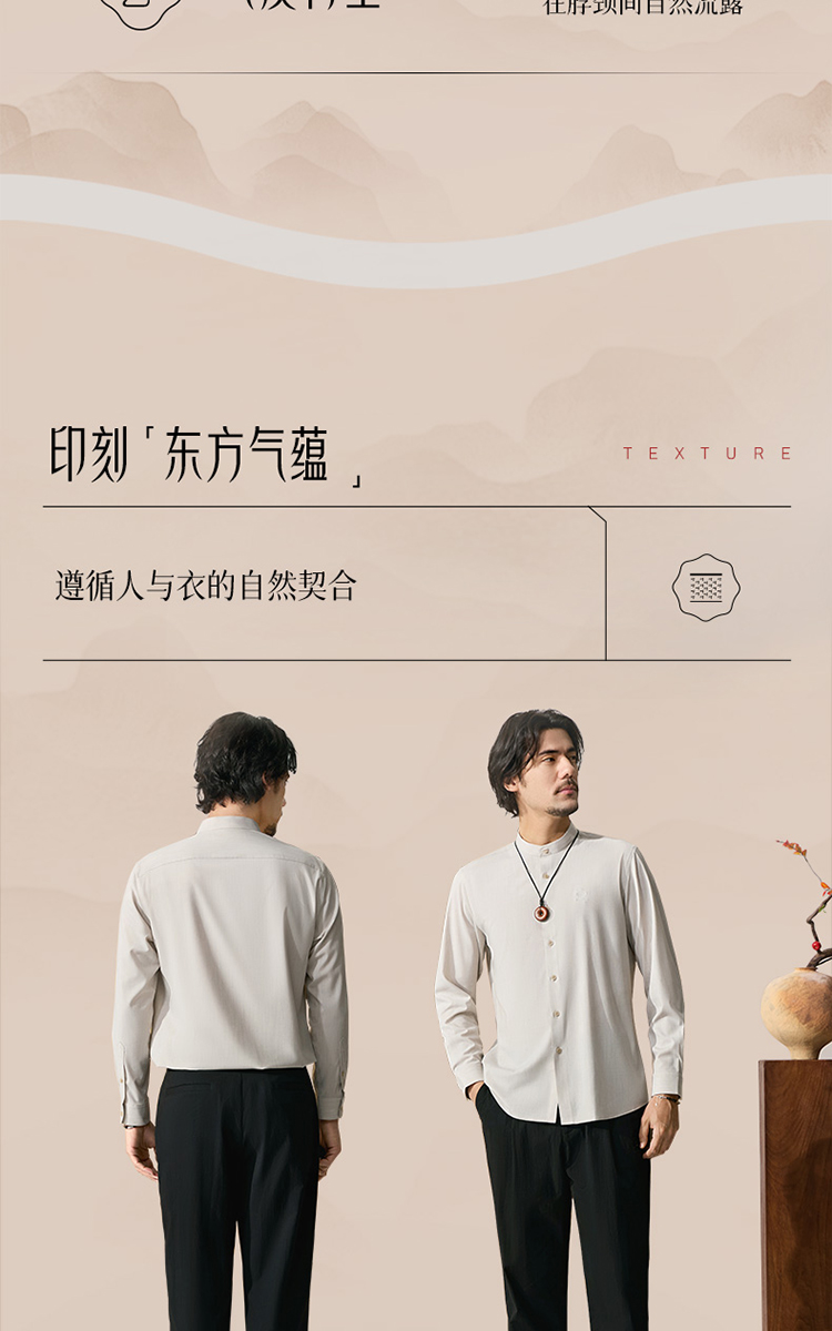 【薛晨同款】柒牌男装长袖衬衫2025春季新款休闲简约男士花纱衬衣128A71710