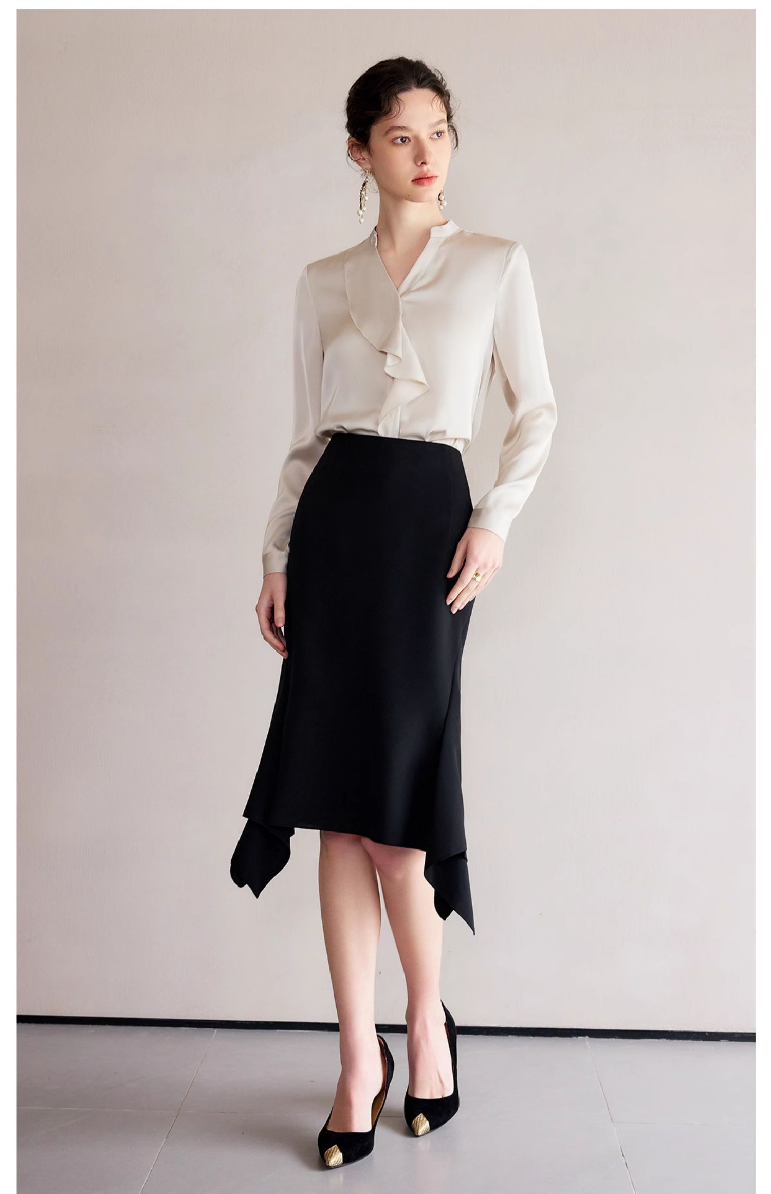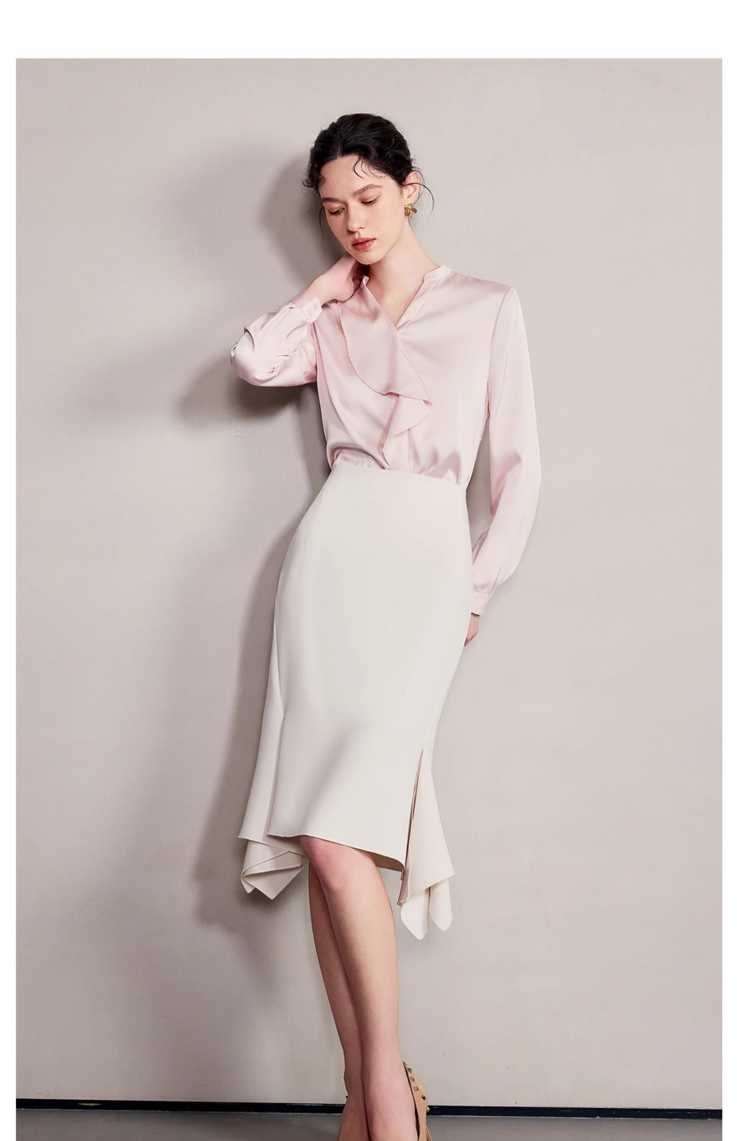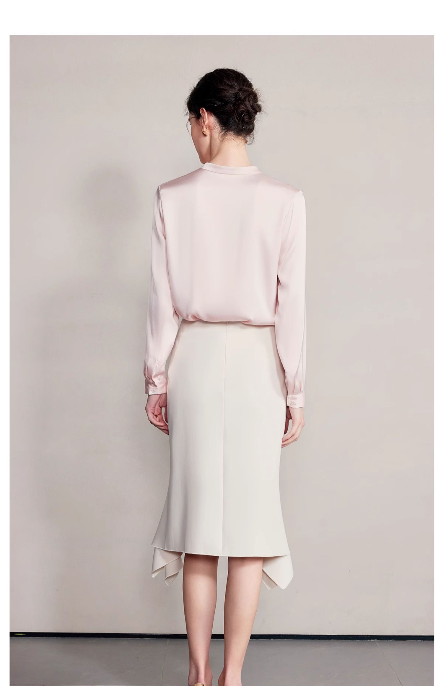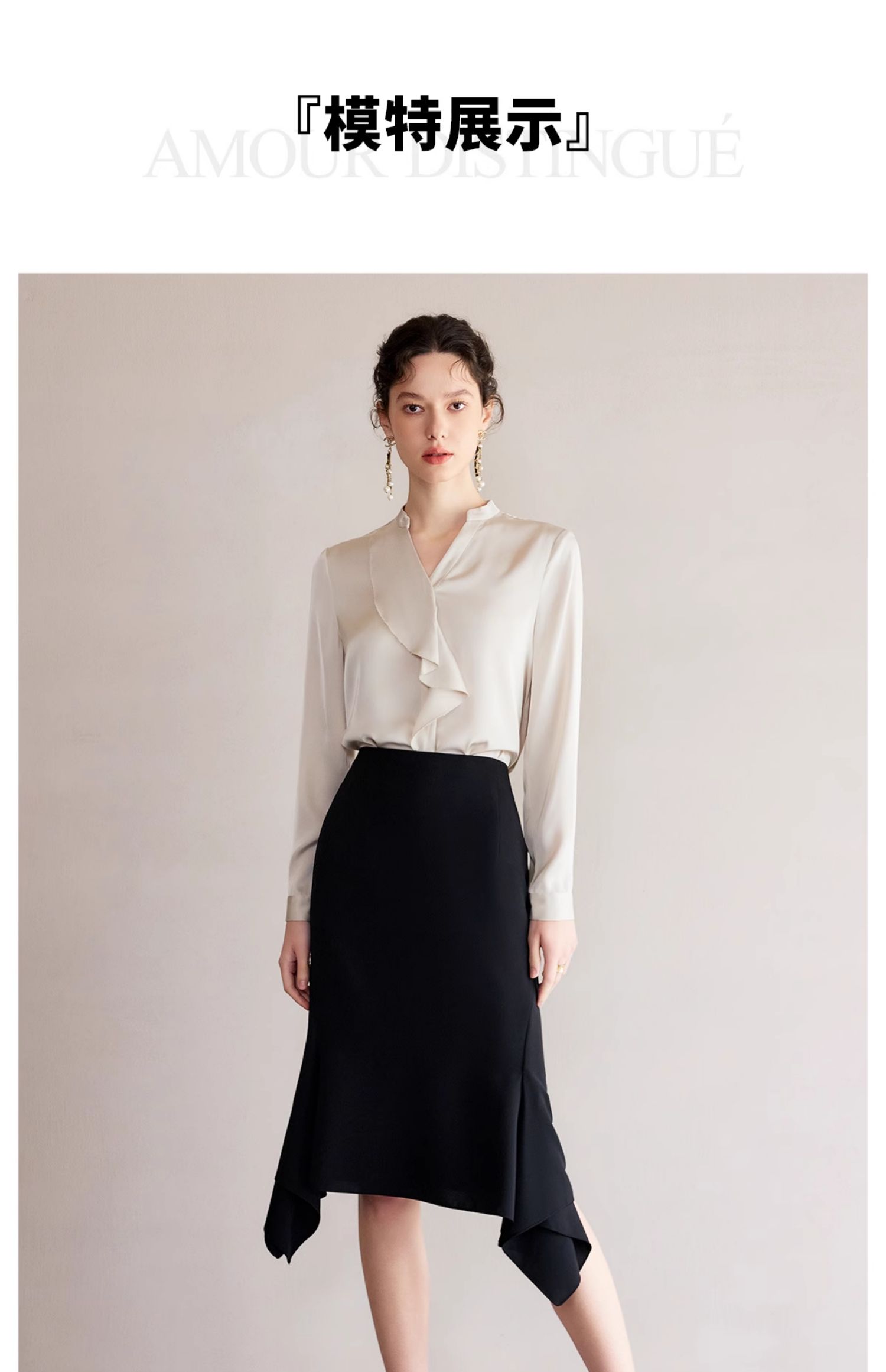 IWY/时髦小姨风穿搭套装新款香槟色长袖衬衫两件套黑色鱼尾半裙B523+S2207