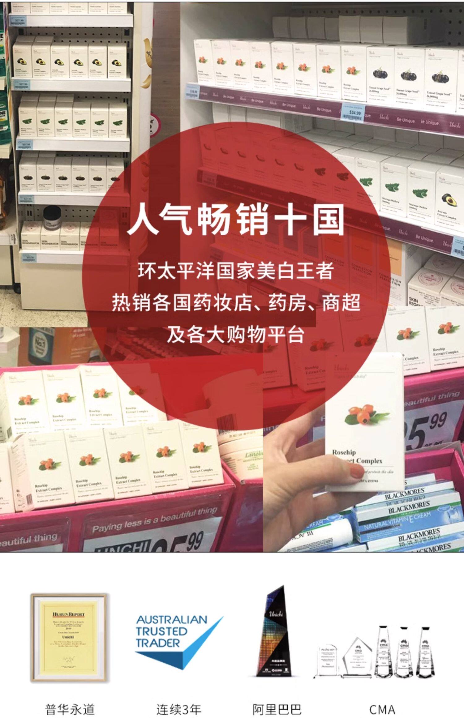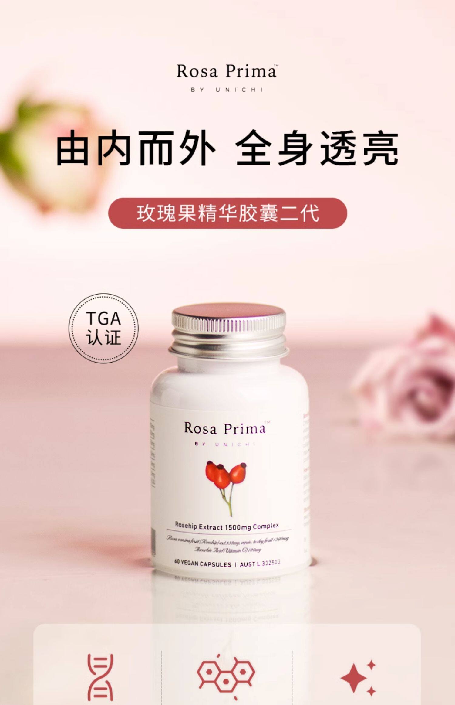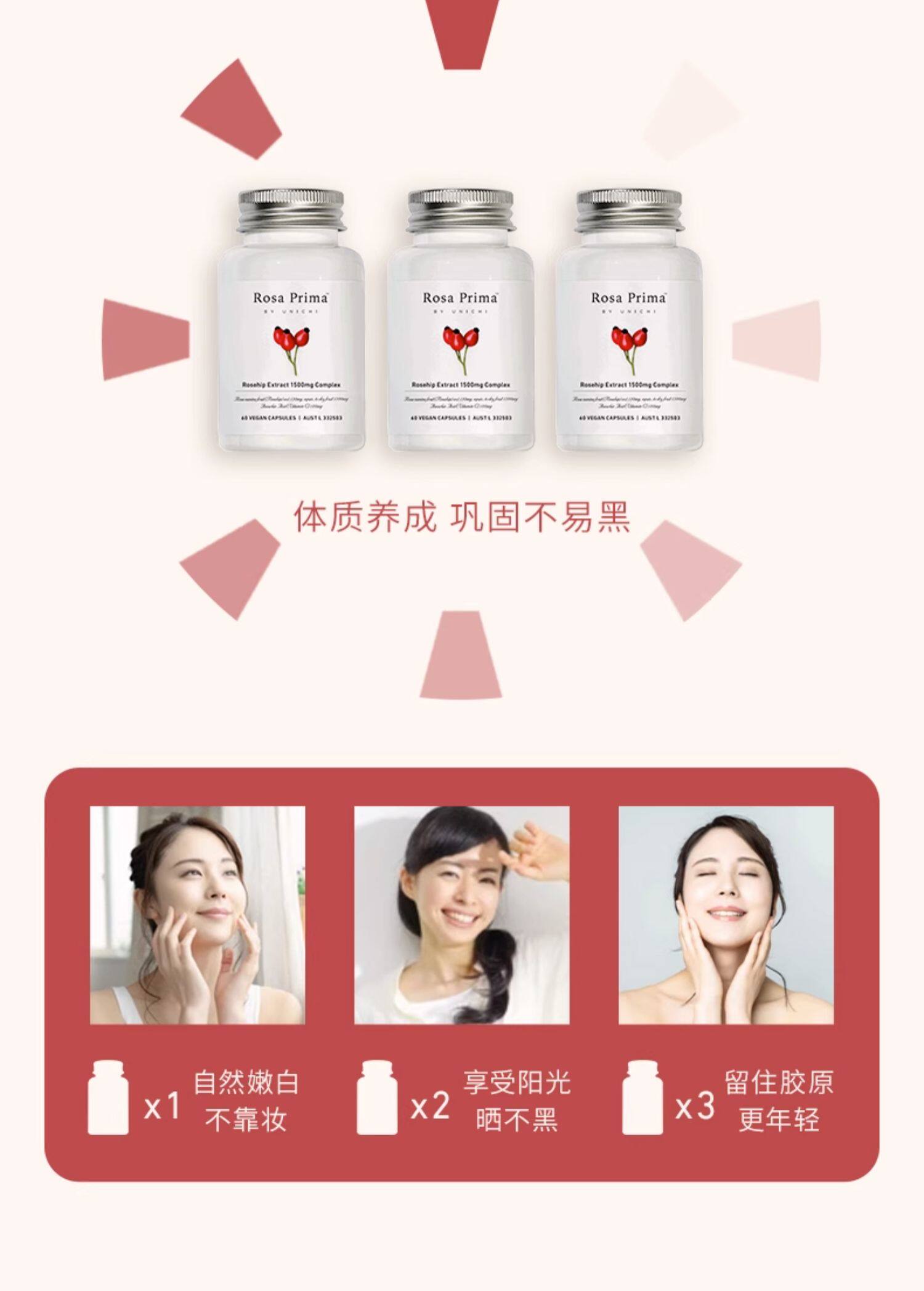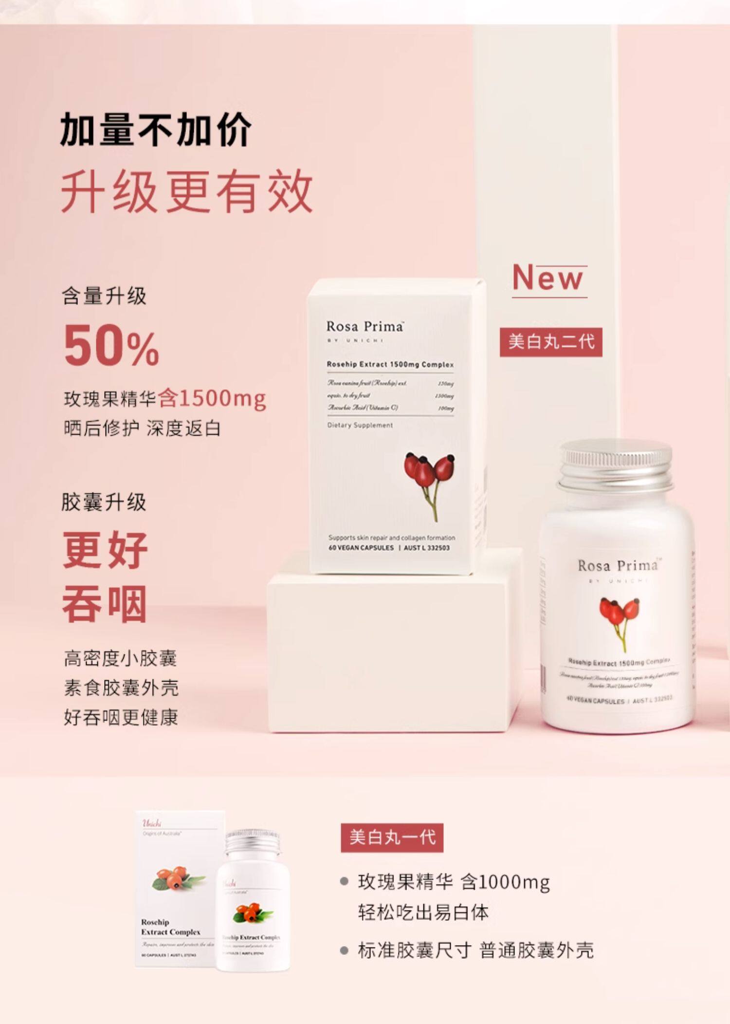 【香港直邮】澳洲Unichi玫瑰果精华胶囊2代美白丸 60粒/瓶