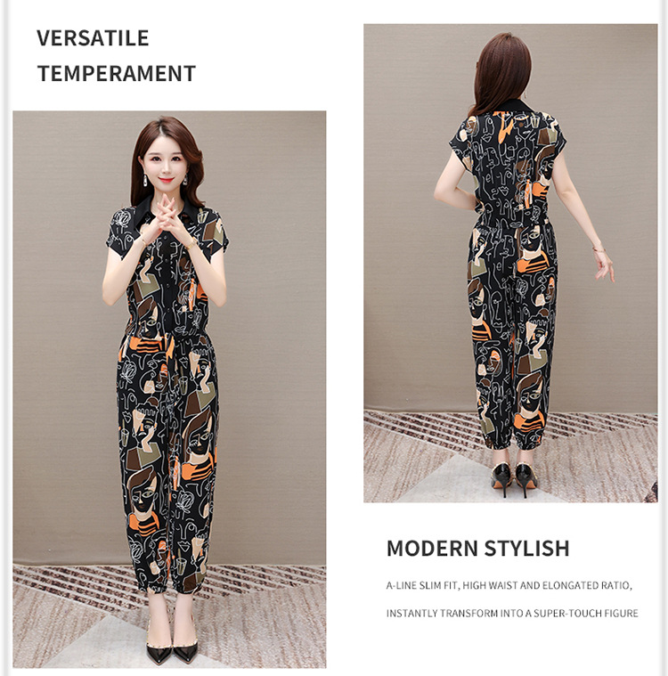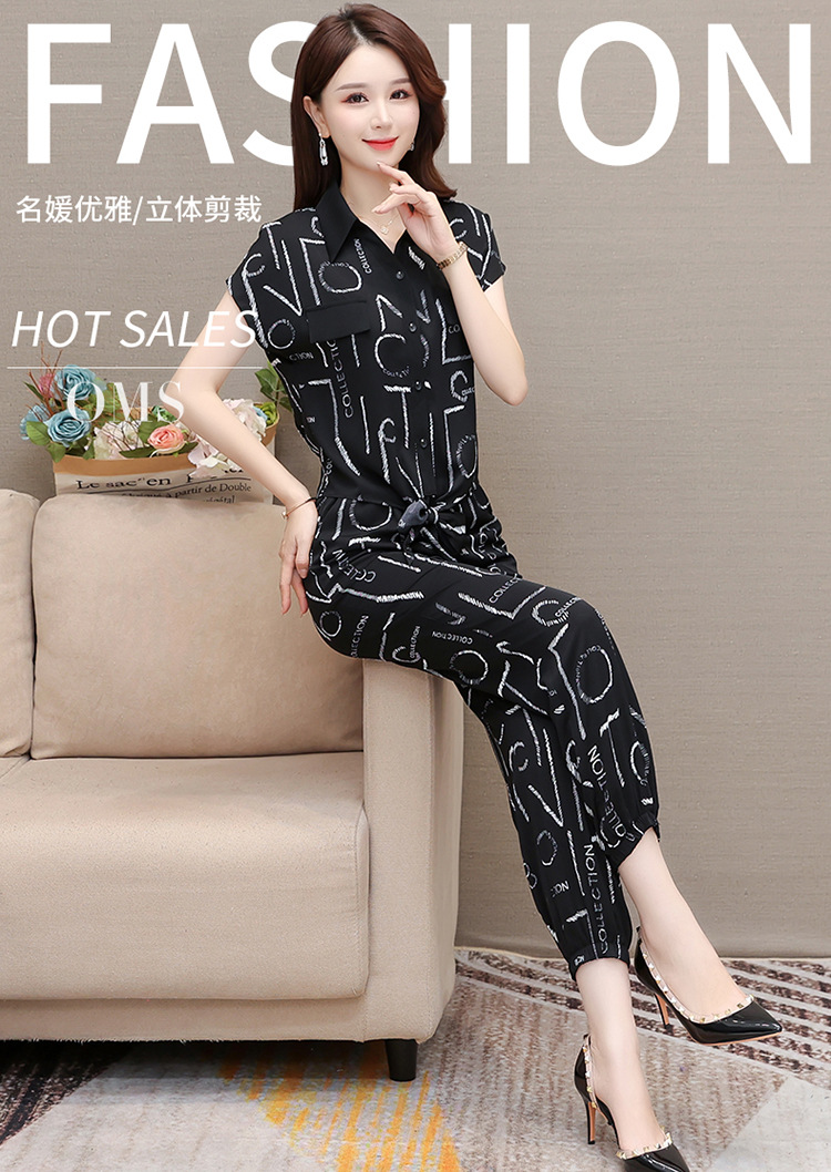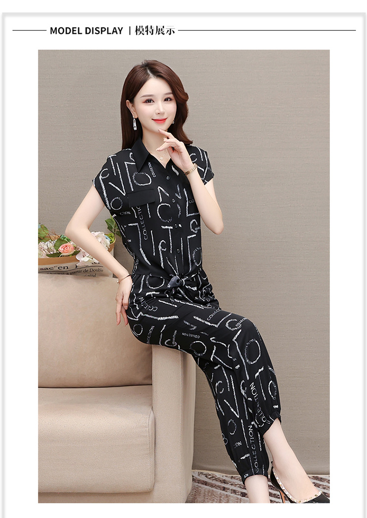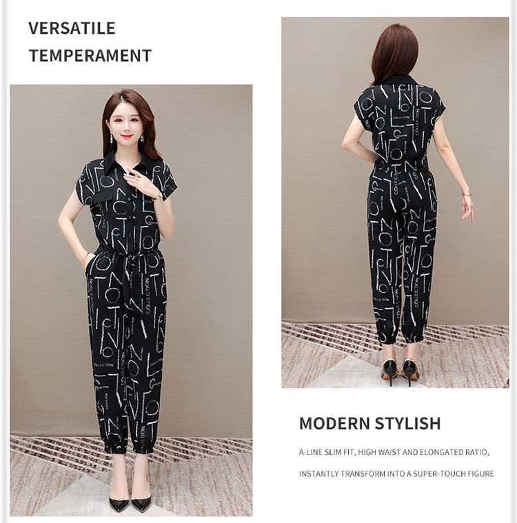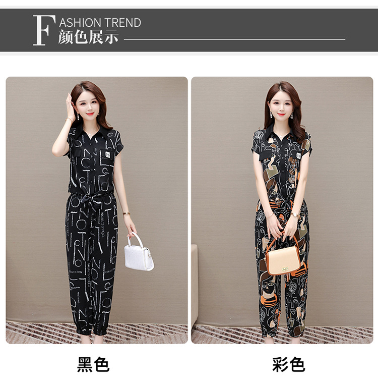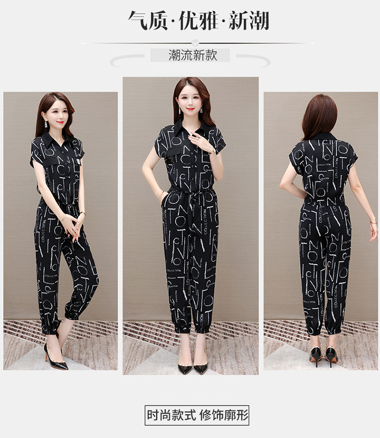 宽松休闲,夏款POLO领短袖小衫哈伦裤两件套字母印花套装QYM-OMS-SDA3123-L