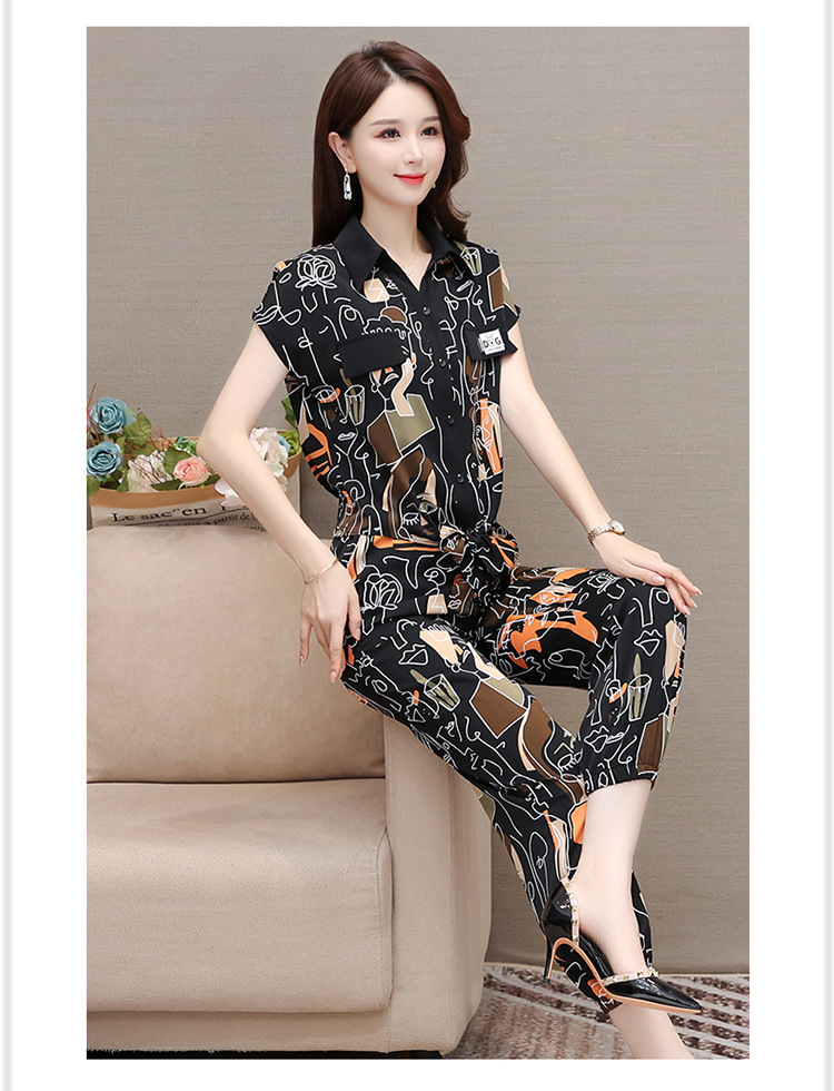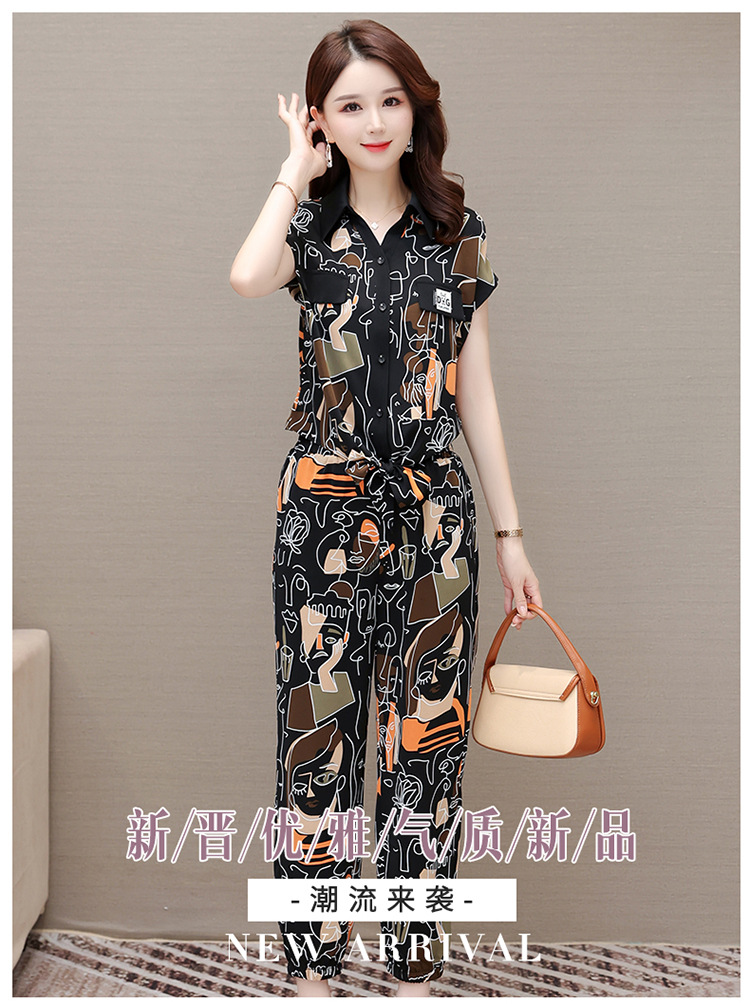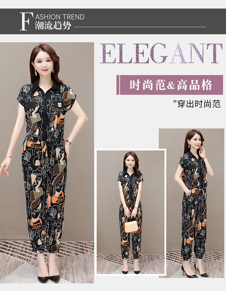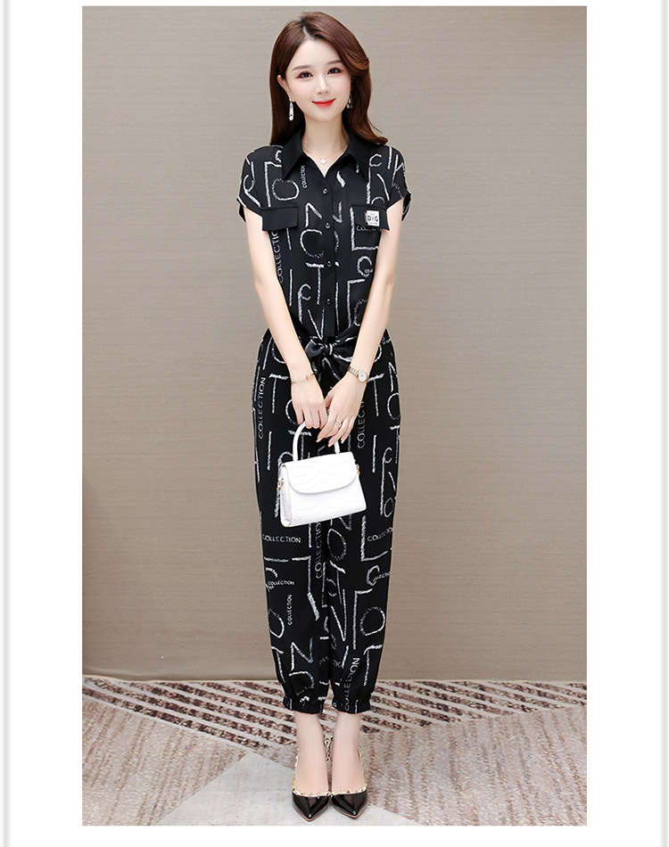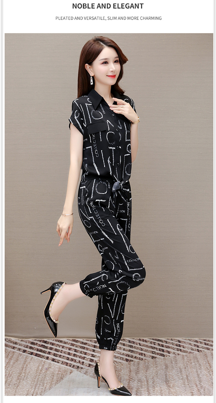 宽松休闲,夏款POLO领短袖小衫哈伦裤两件套字母印花套装QYM-OMS-SDA3123-L