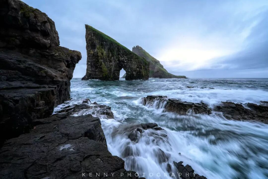 法罗群岛风景的缩影,拥有多处标志性自然景观:海上拱门,海上悬湖,入海瀑布,是摄影与自然爱好者的必访之地。