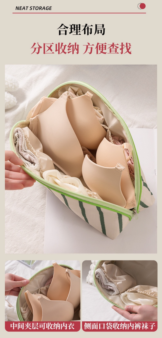 感觉现在好多人出门旅游都不会带收纳的东西 反正只要全部一股脑塞到行李箱就完事了 内衣内裤👙袜子🧦啥的全部塞到一起 想想我都觉得有点不卫生呢 - 老是这样肯定不行啊,这款内衣收纳包 打开了新世界的大门!我那些随处乱放的内衣内裤袜子全部都可以放到这个包包里 出门旅游的时候就算打开行李箱都不会尴尬 想要取出什么简直轻轻松松