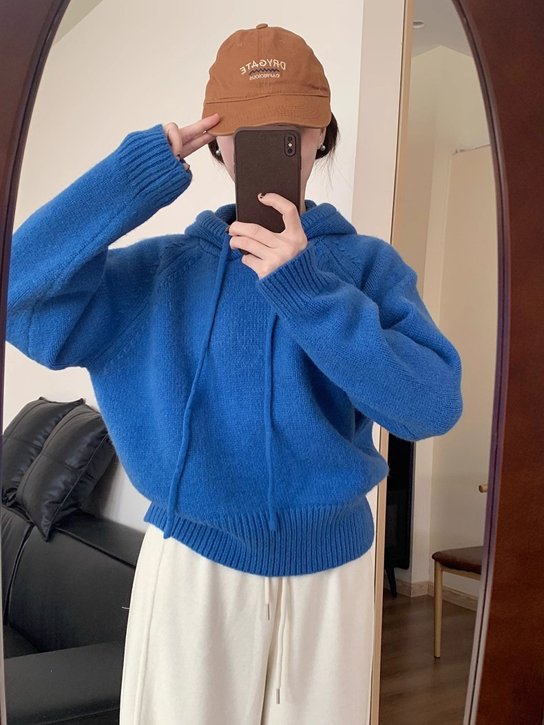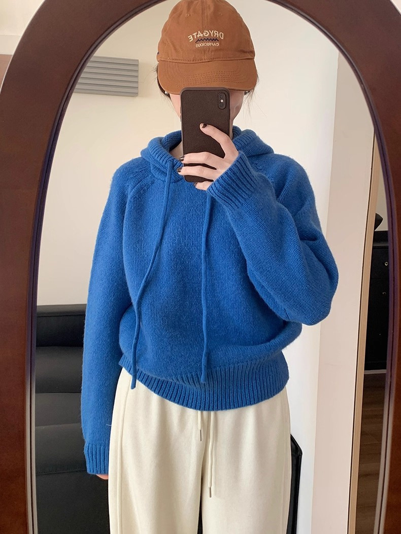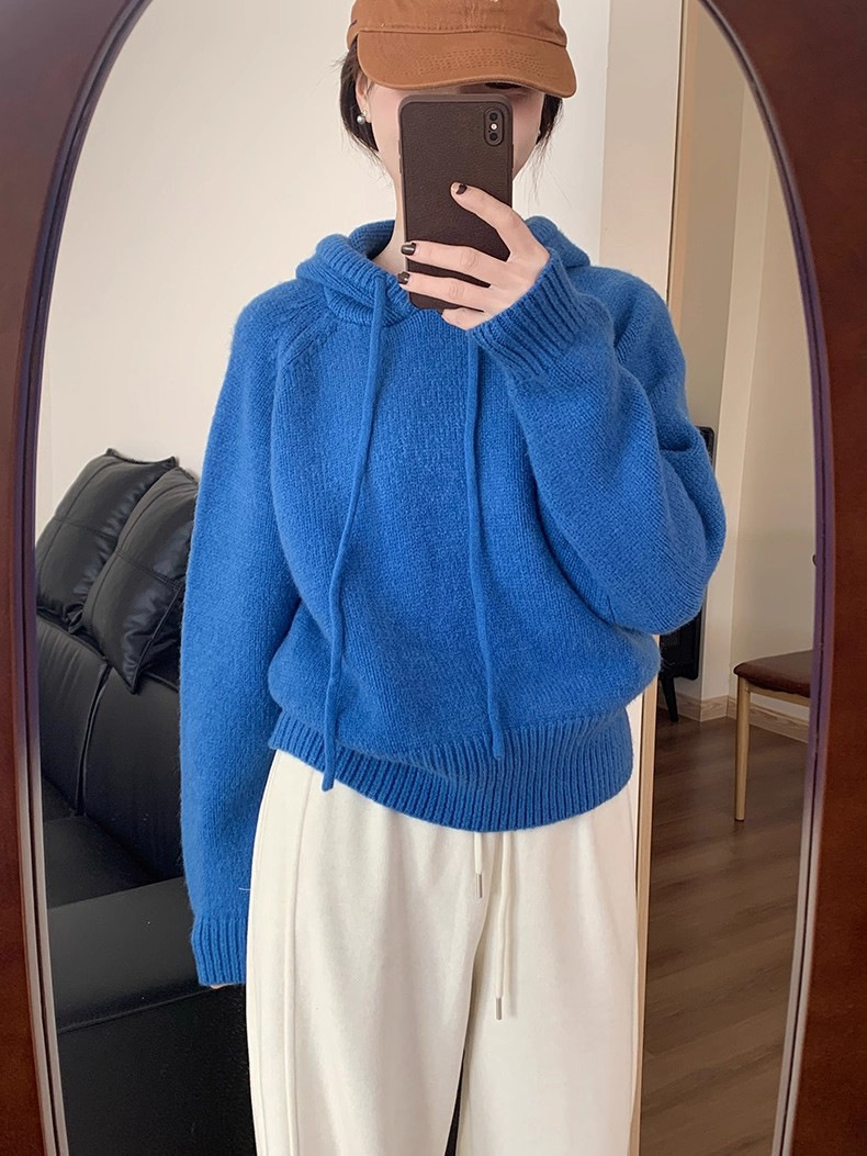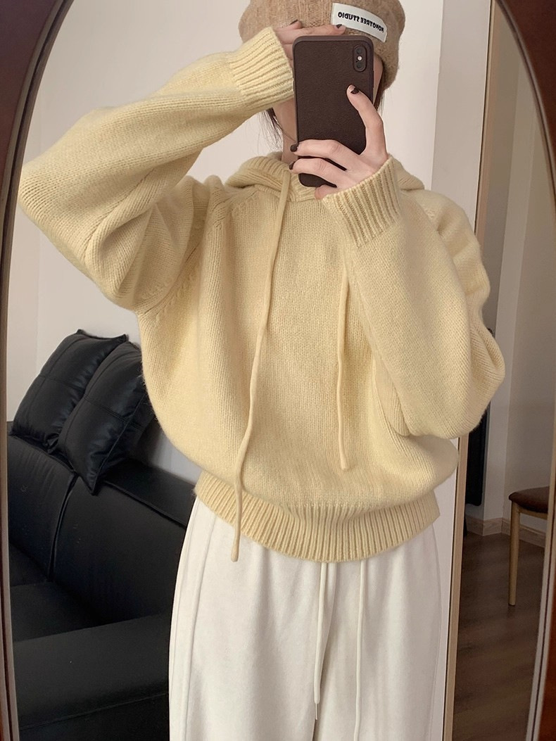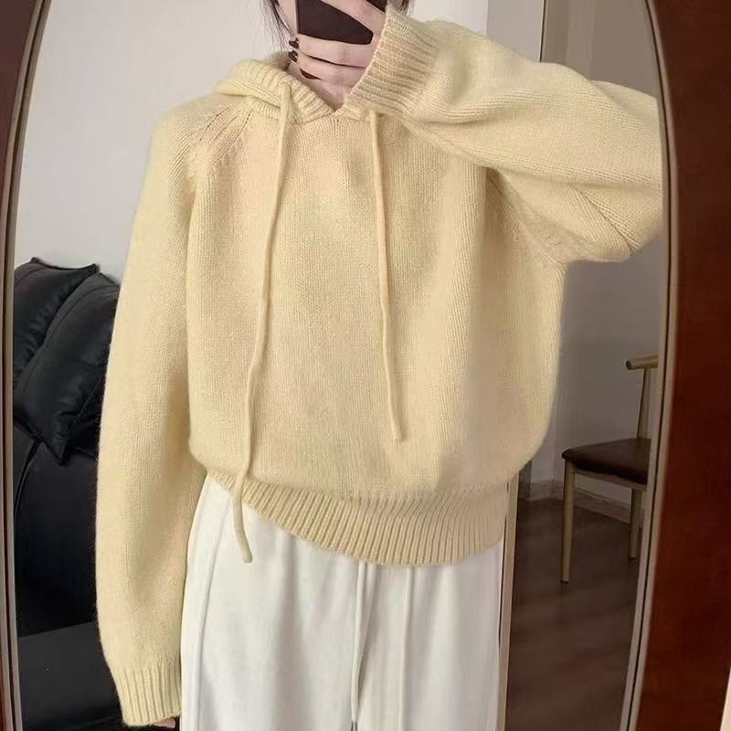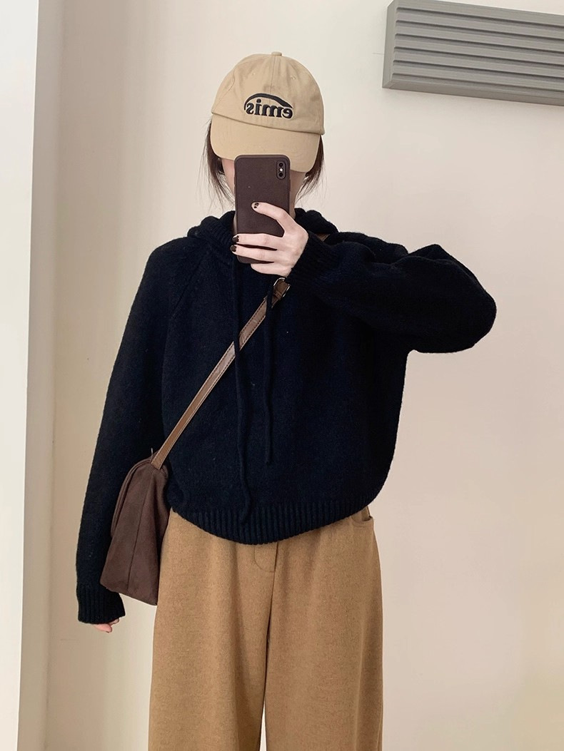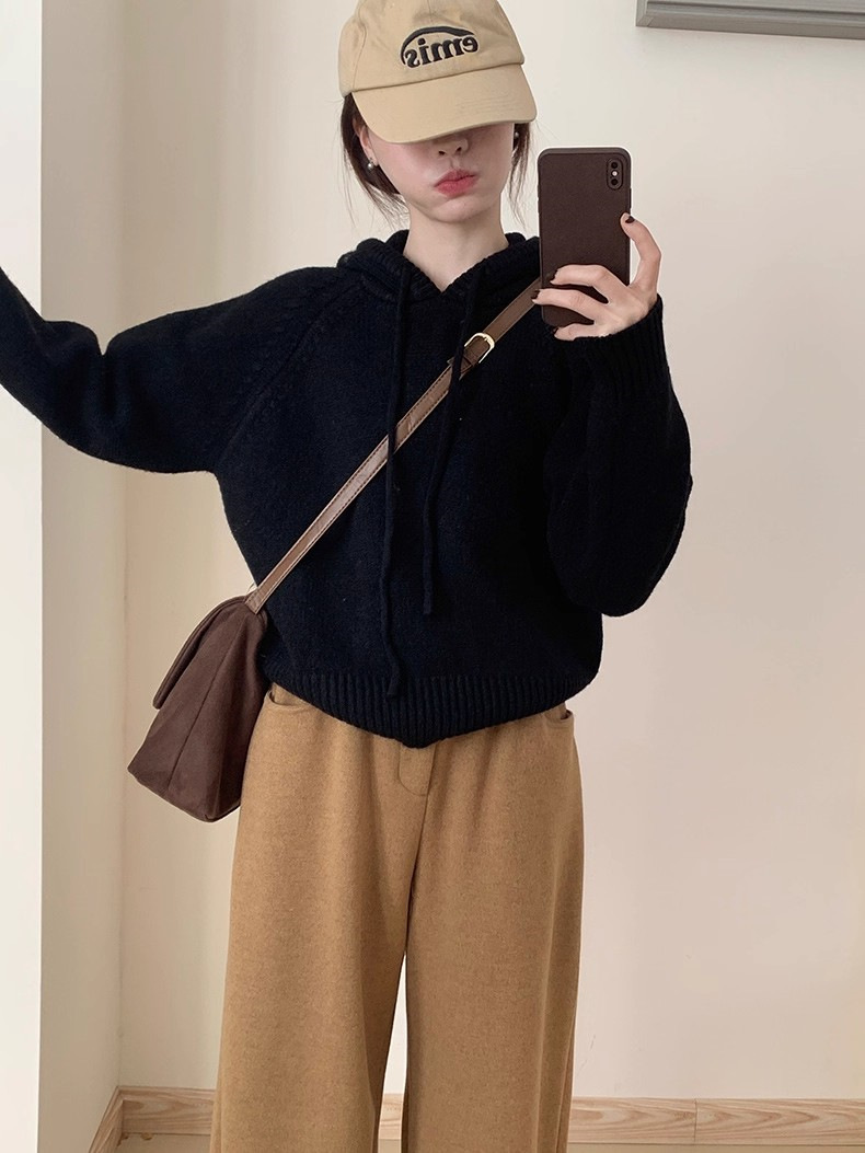【YW】无忧购 【甄选】韩系秋冬抽绳连帽设计感卫衣针织衫宽松慵懒套头女式毛衣 412-17(截单后3-5天发货)