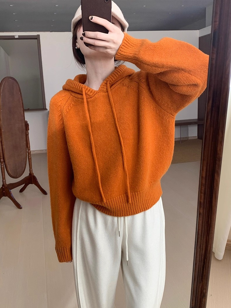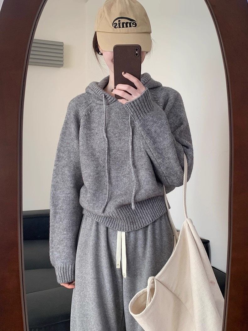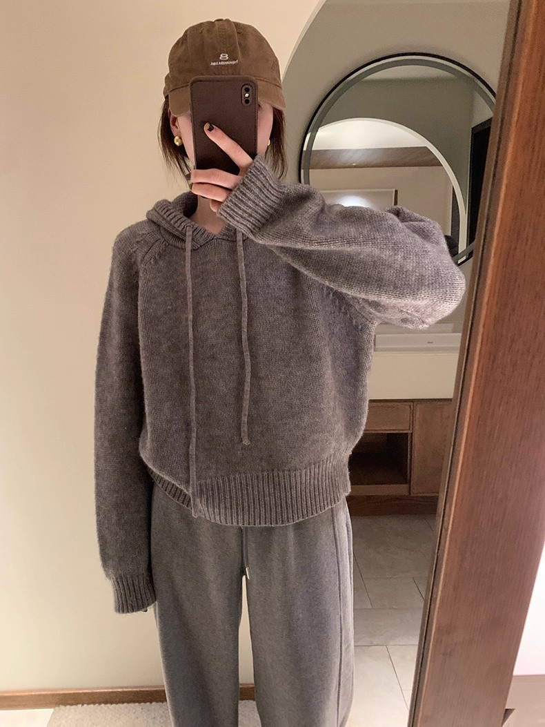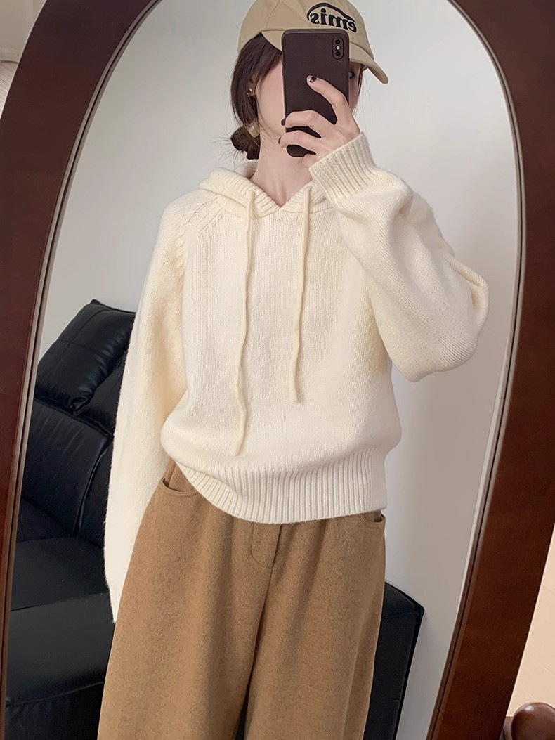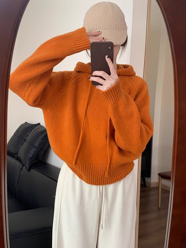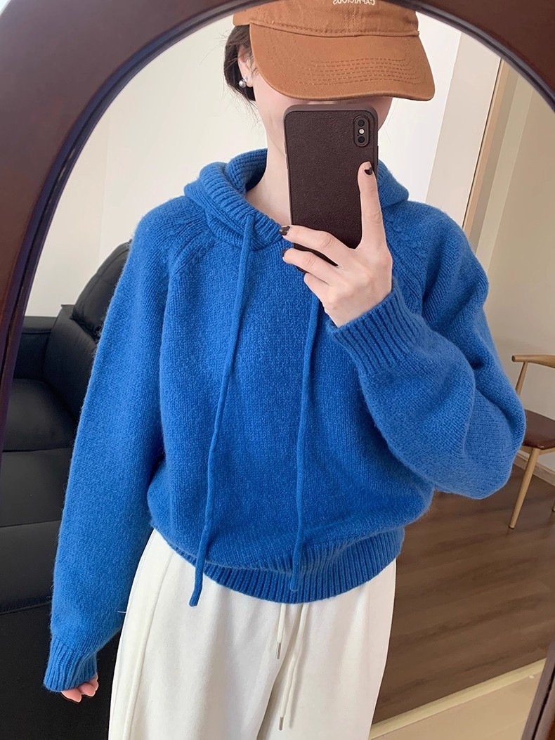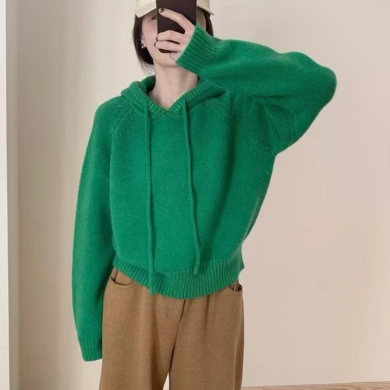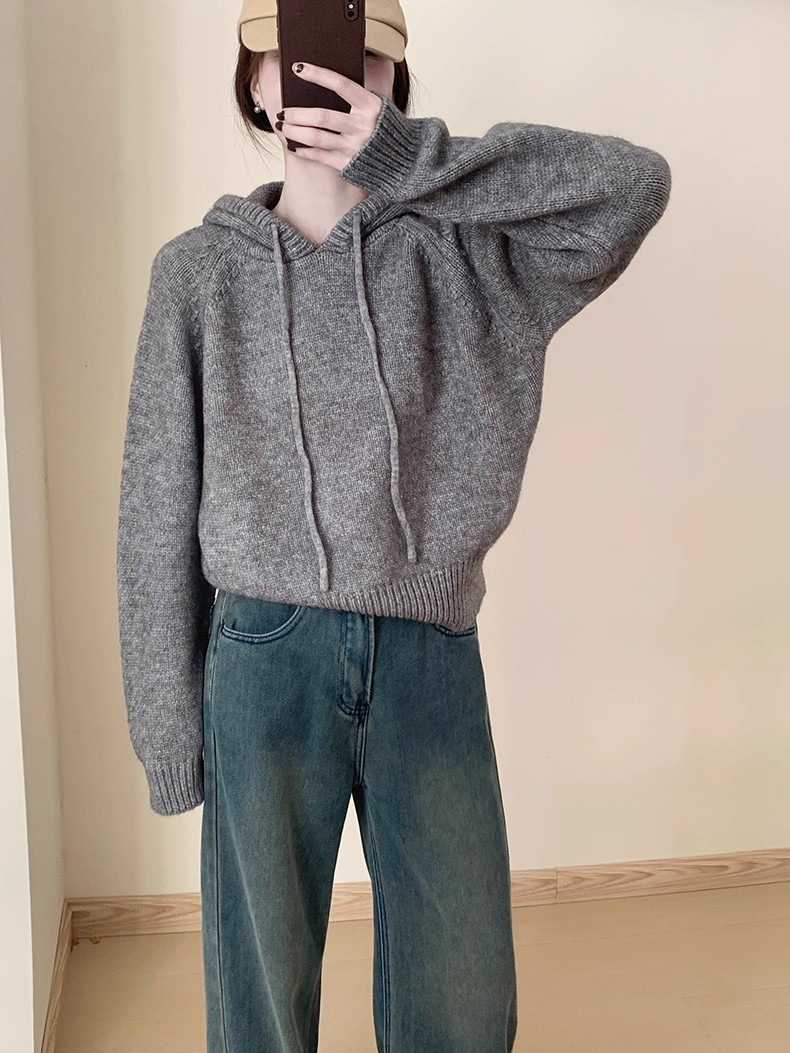 【YW】无忧购 【甄选】韩系秋冬抽绳连帽设计感卫衣针织衫宽松慵懒套头女式毛衣 412-17(截单后3-5天发货)