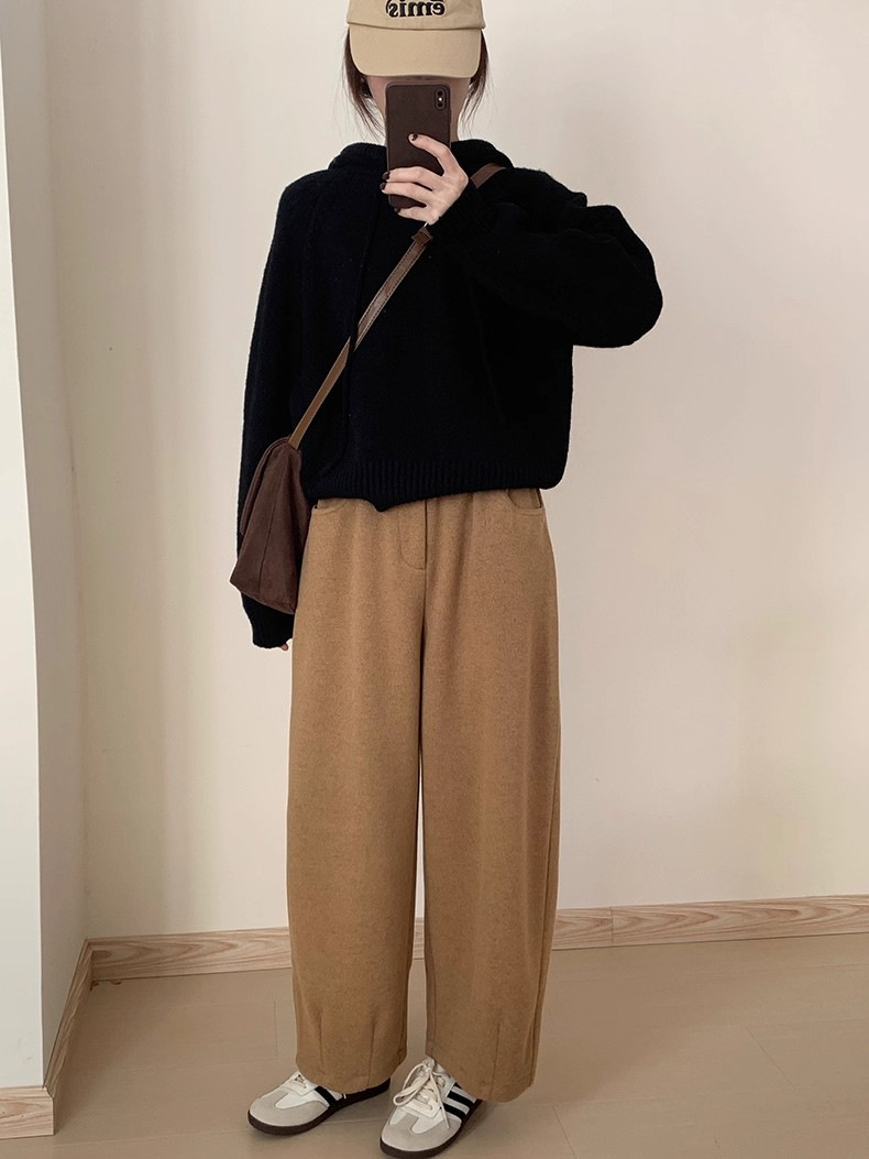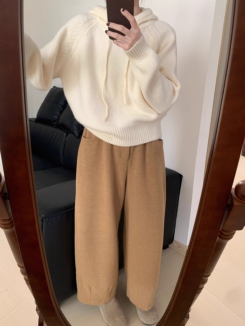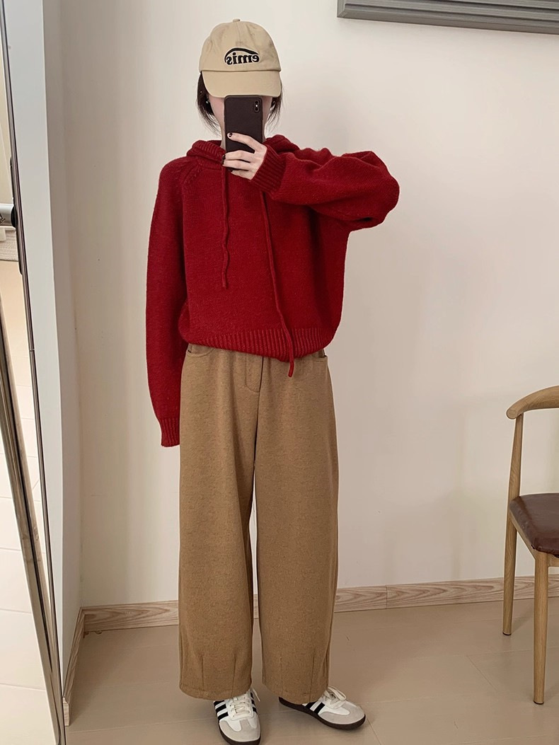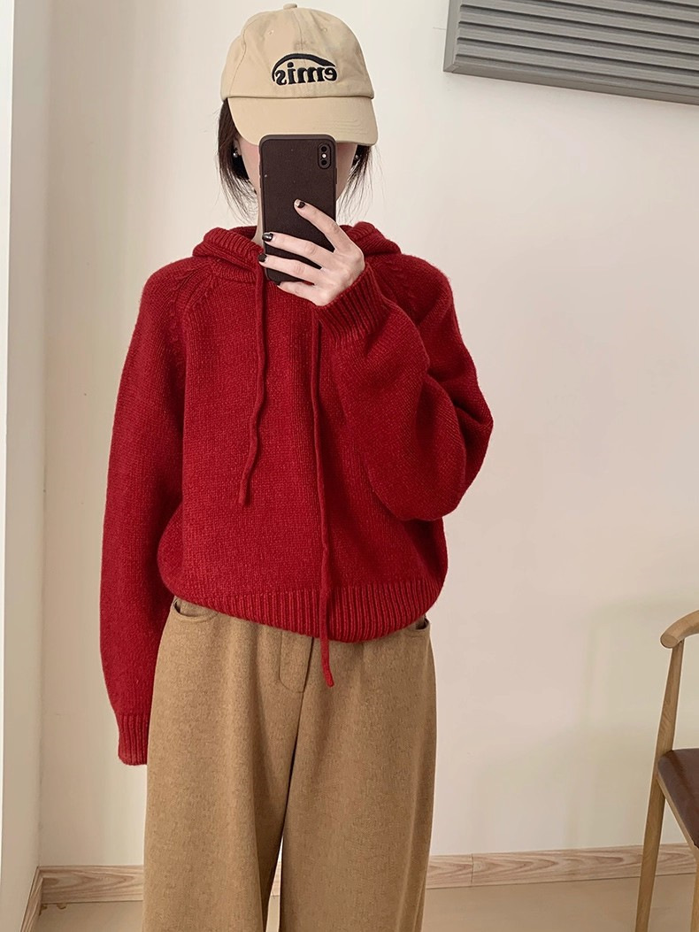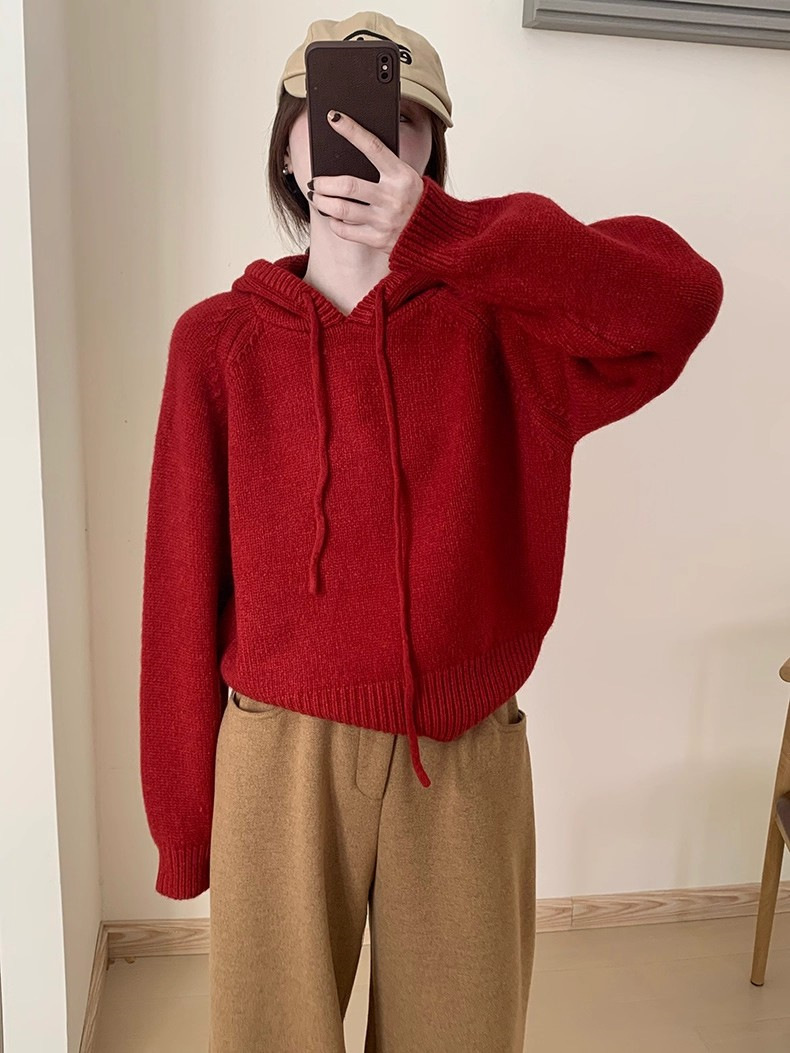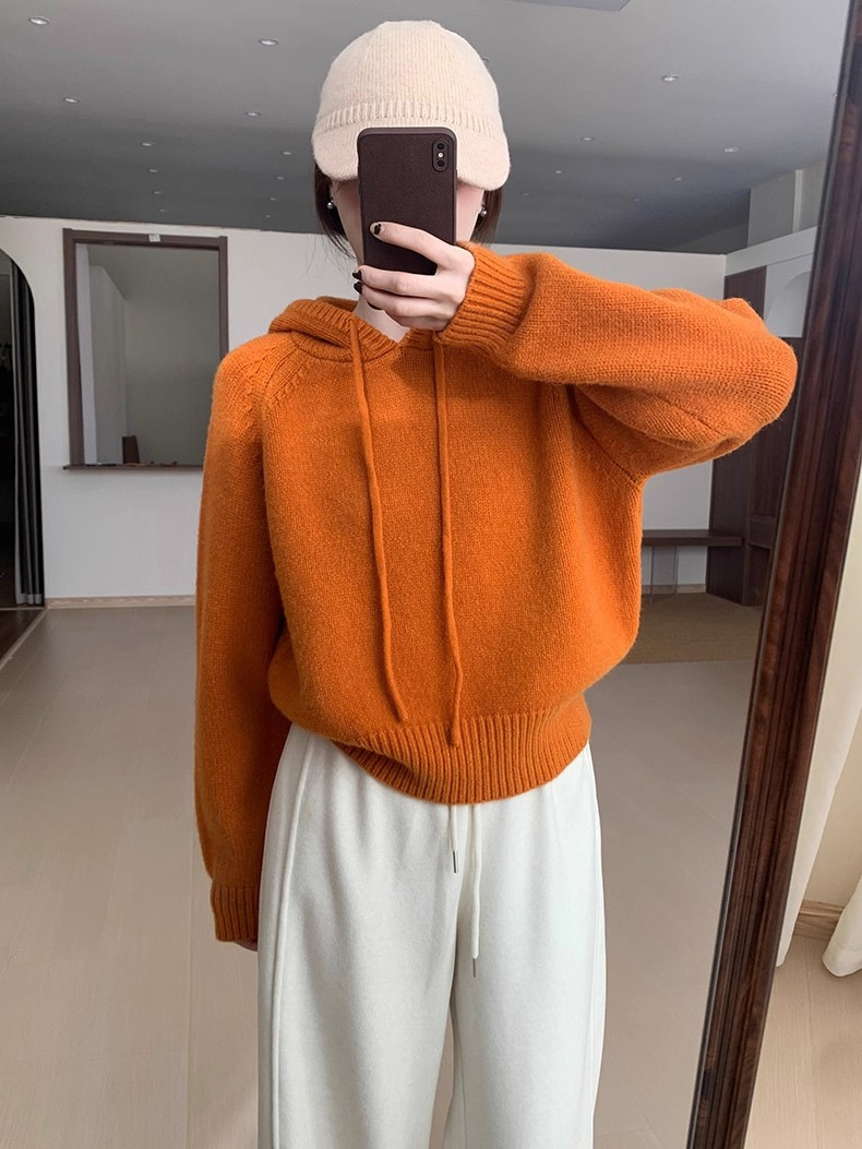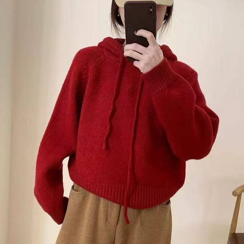 【YW】无忧购 【甄选】韩系秋冬抽绳连帽设计感卫衣针织衫宽松慵懒套头女式毛衣 412-17(截单后3-5天发货)