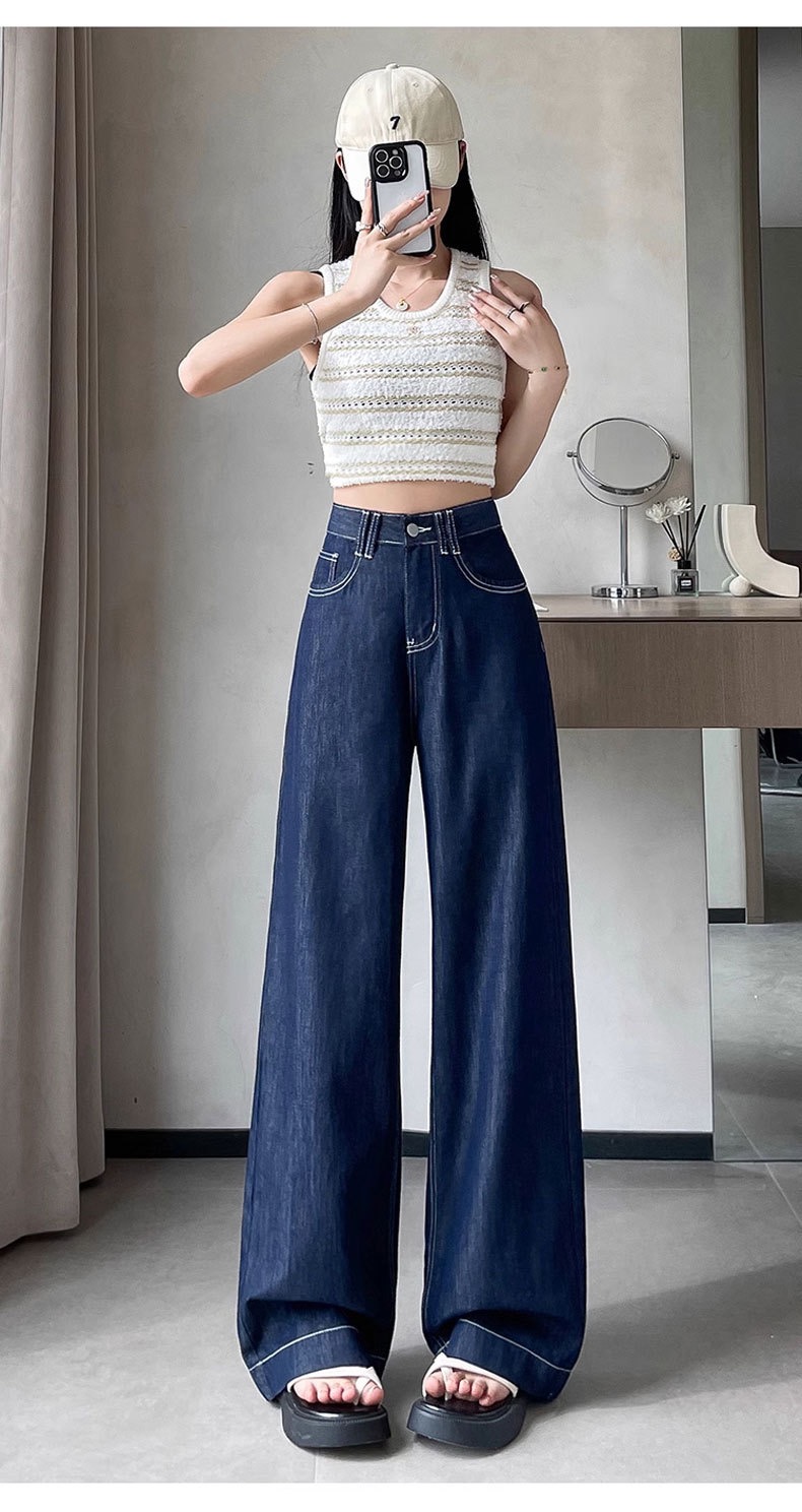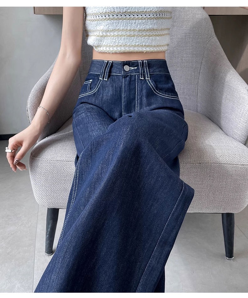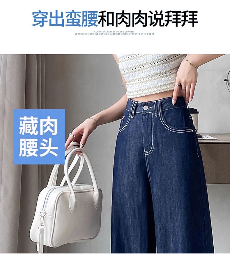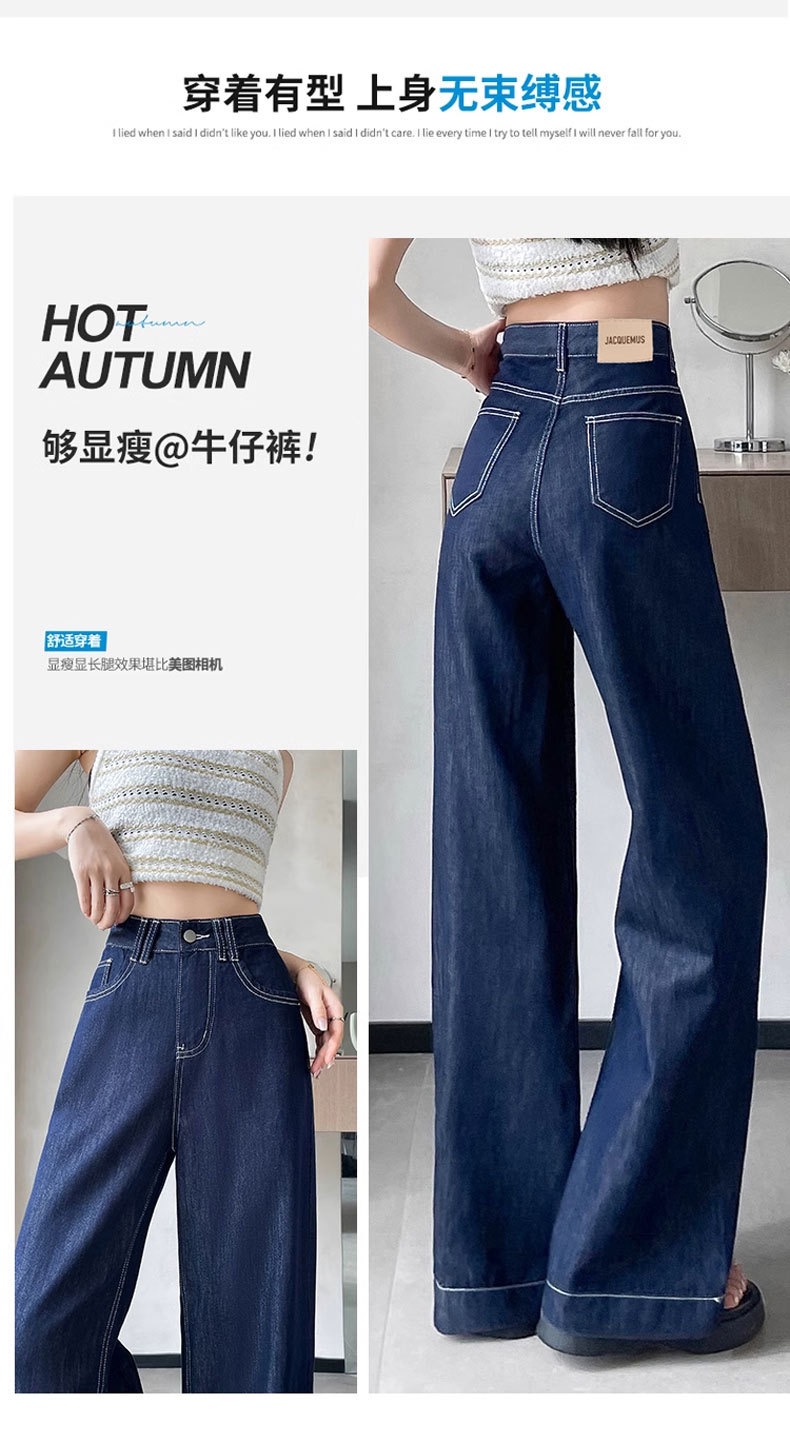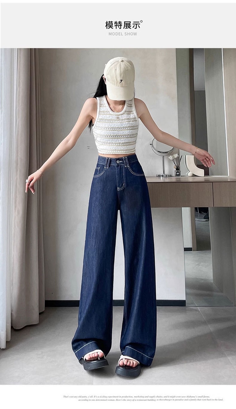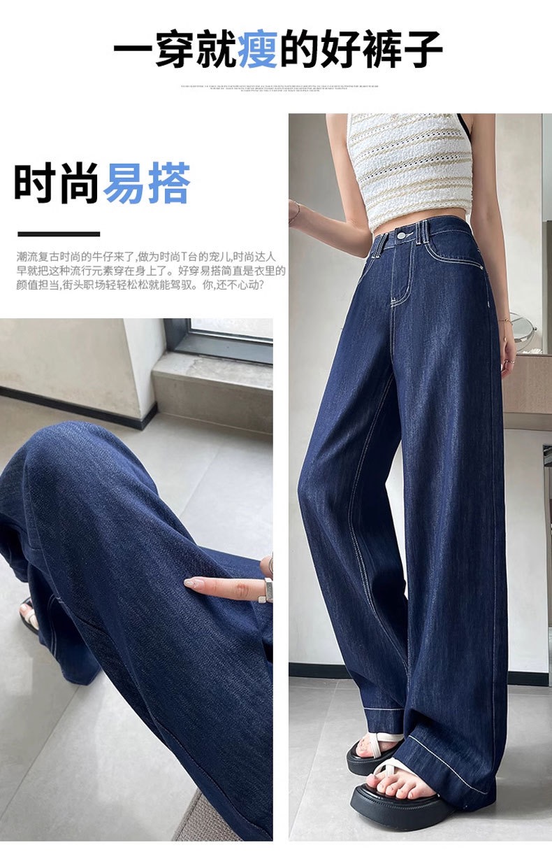 【GZ】无忧购2025春季美式休闲复古丹宁蓝高腰垂感休闲阔腿牛仔裤2405(截单后7天发货)