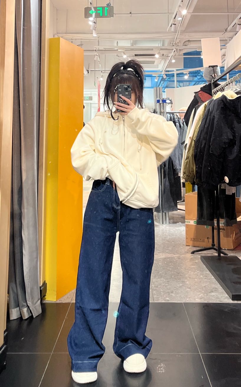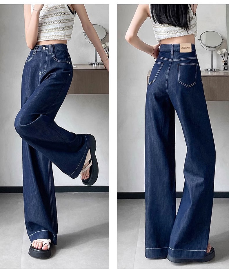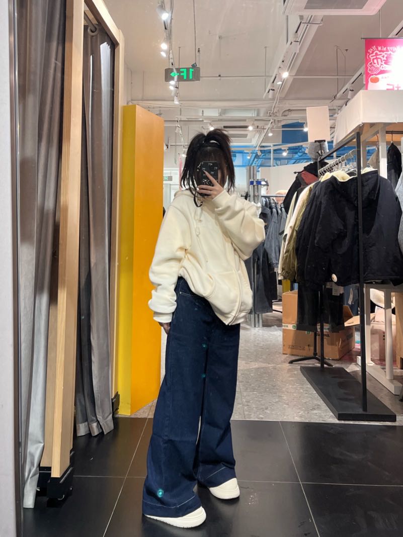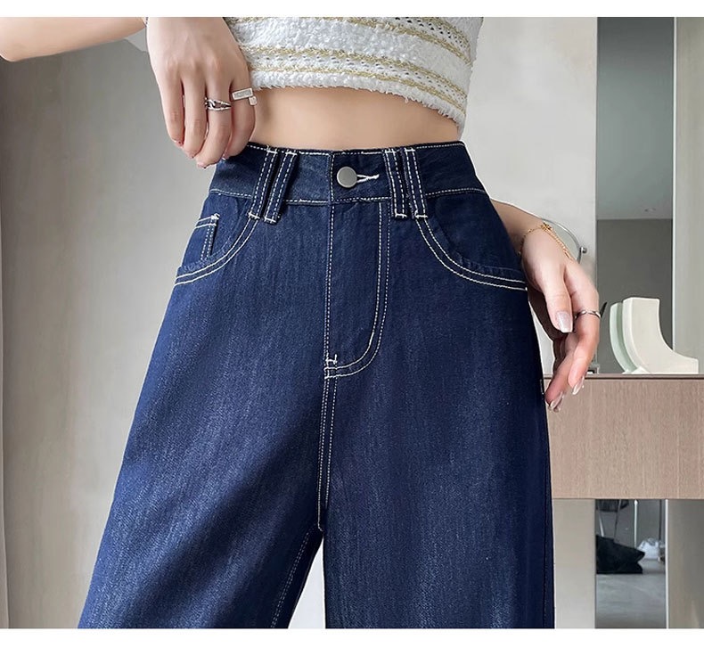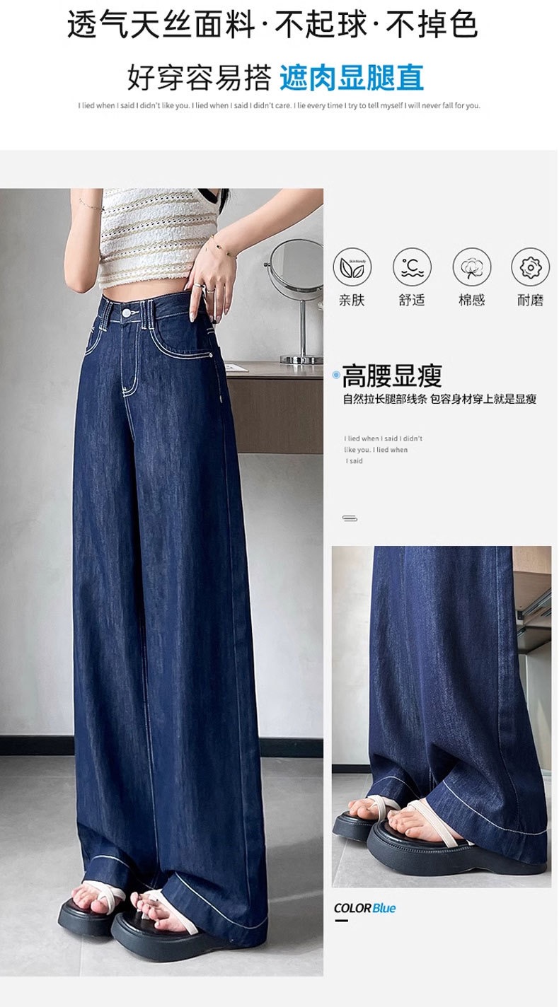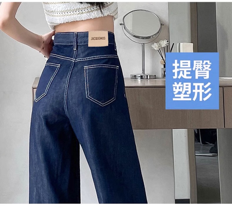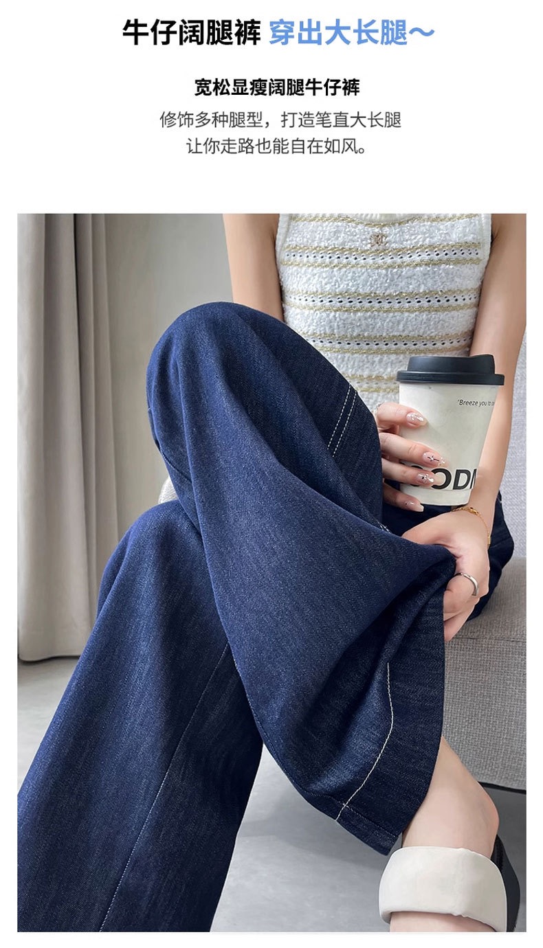 【GZ】无忧购2025春季美式休闲复古丹宁蓝高腰垂感休闲阔腿牛仔裤2405(截单后7天发货)