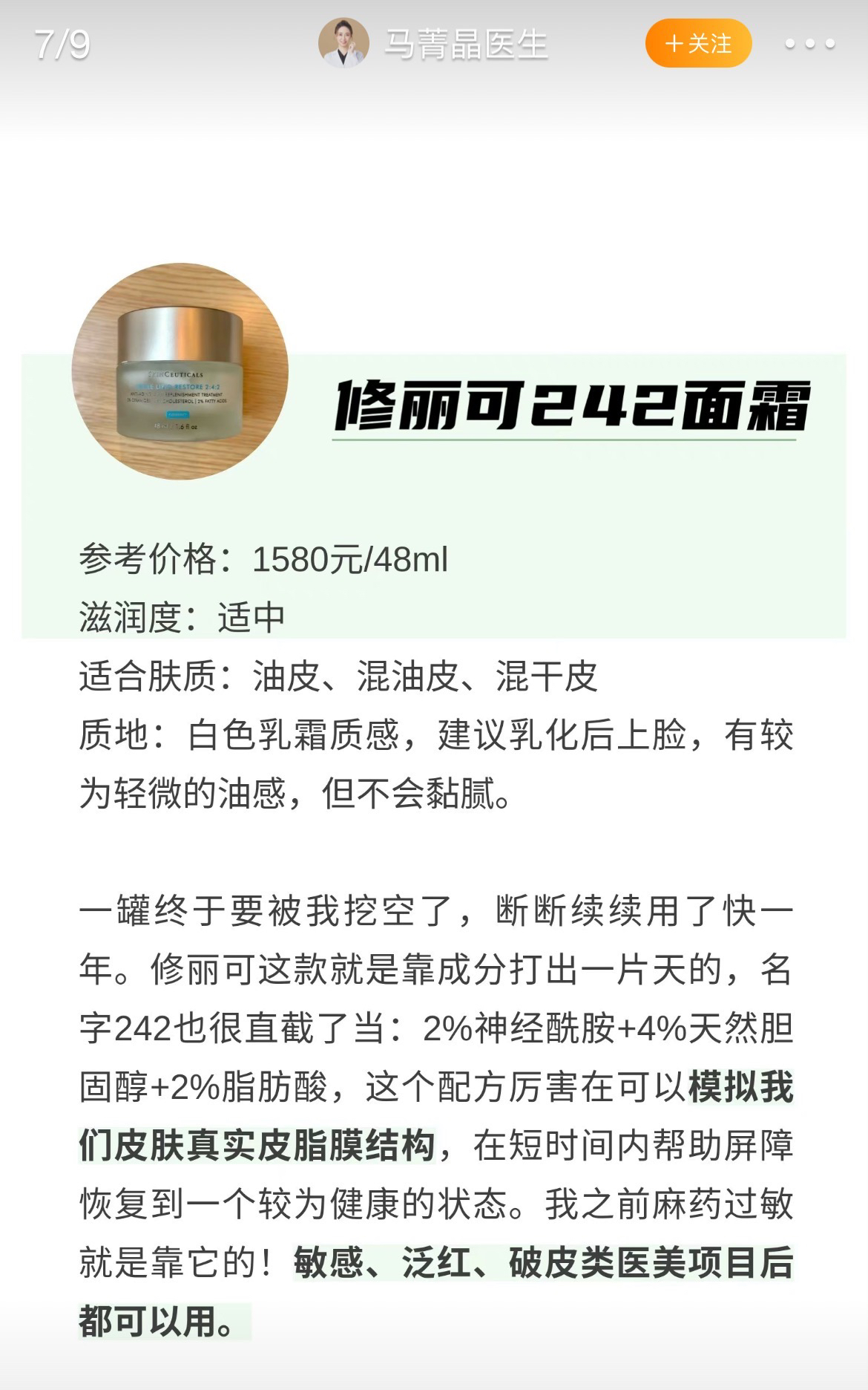 预售 修丽可242面霜 48ml