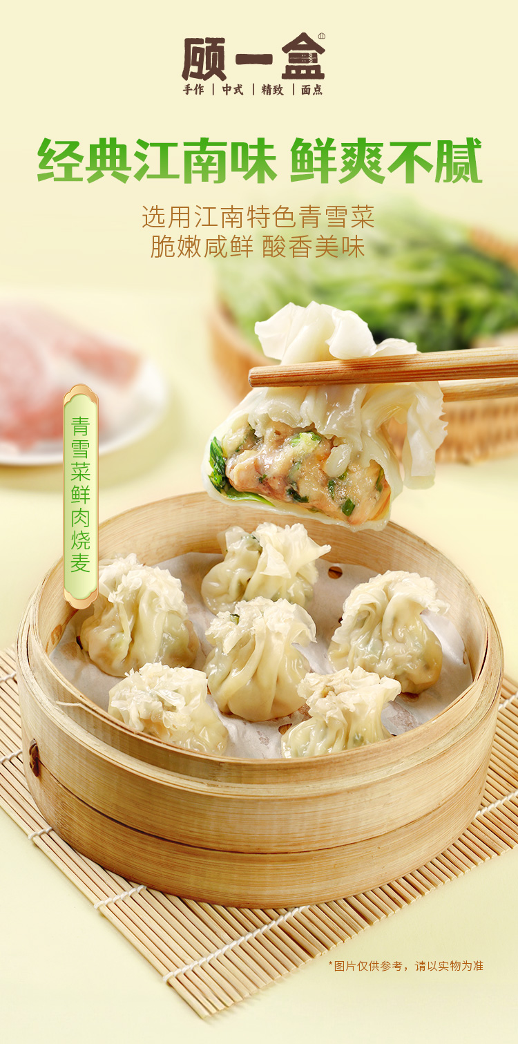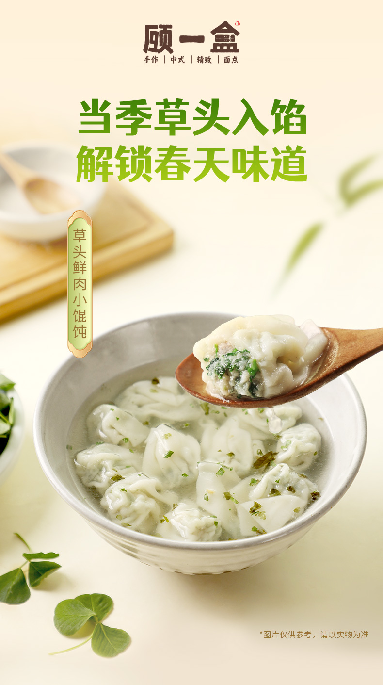 【春季限定】顾一盒 春季尝鲜(草头馄饨*1+刀鱼馄饨*1+香椿烧麦*1+青雪菜烧麦*1)657g
