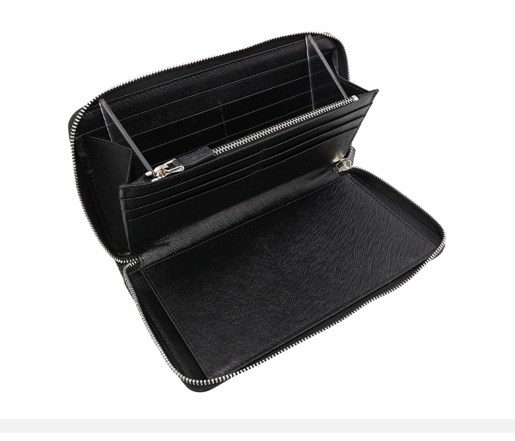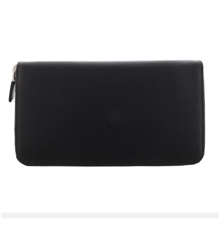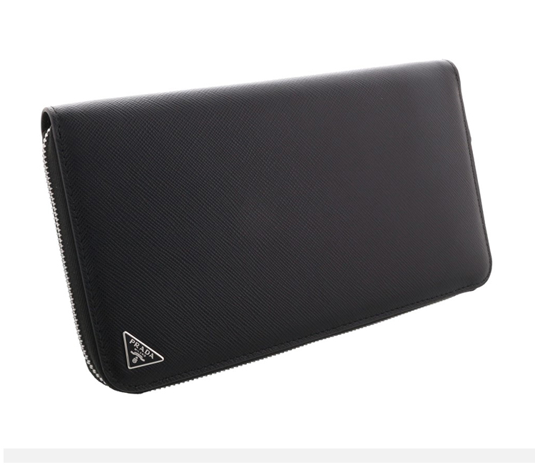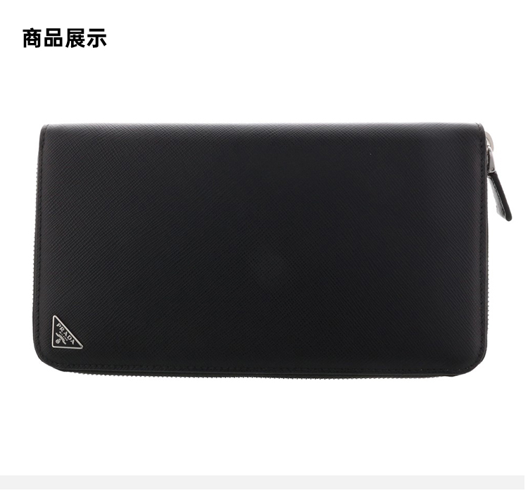 PRADA 普拉达 男士 Saffiano 十字纹皮革珐琅金属三角徽标拉链票夹钱包 黑色 2ML188 QHH F0002