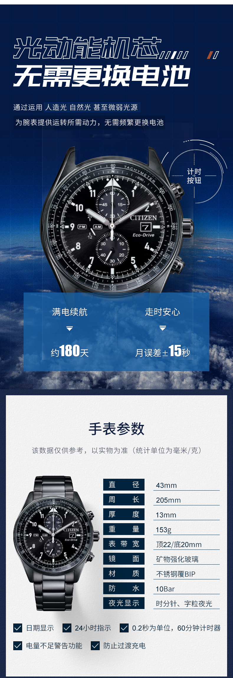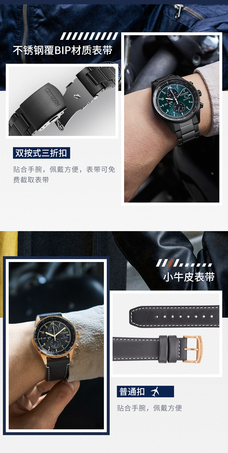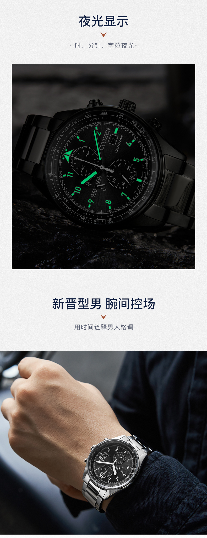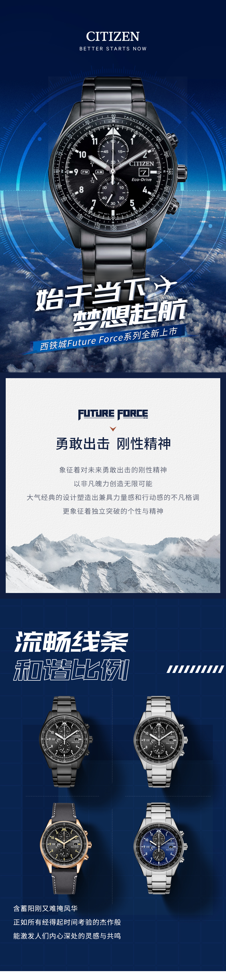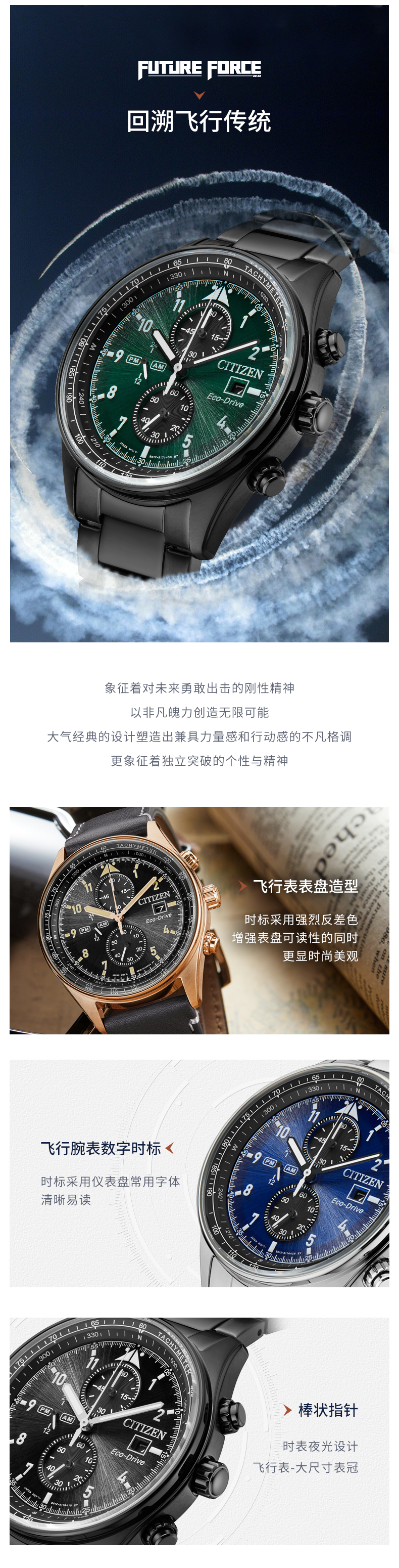 西铁城日本官方正品新款FF系列飞行风钢带光动能手表男CA0775-87E