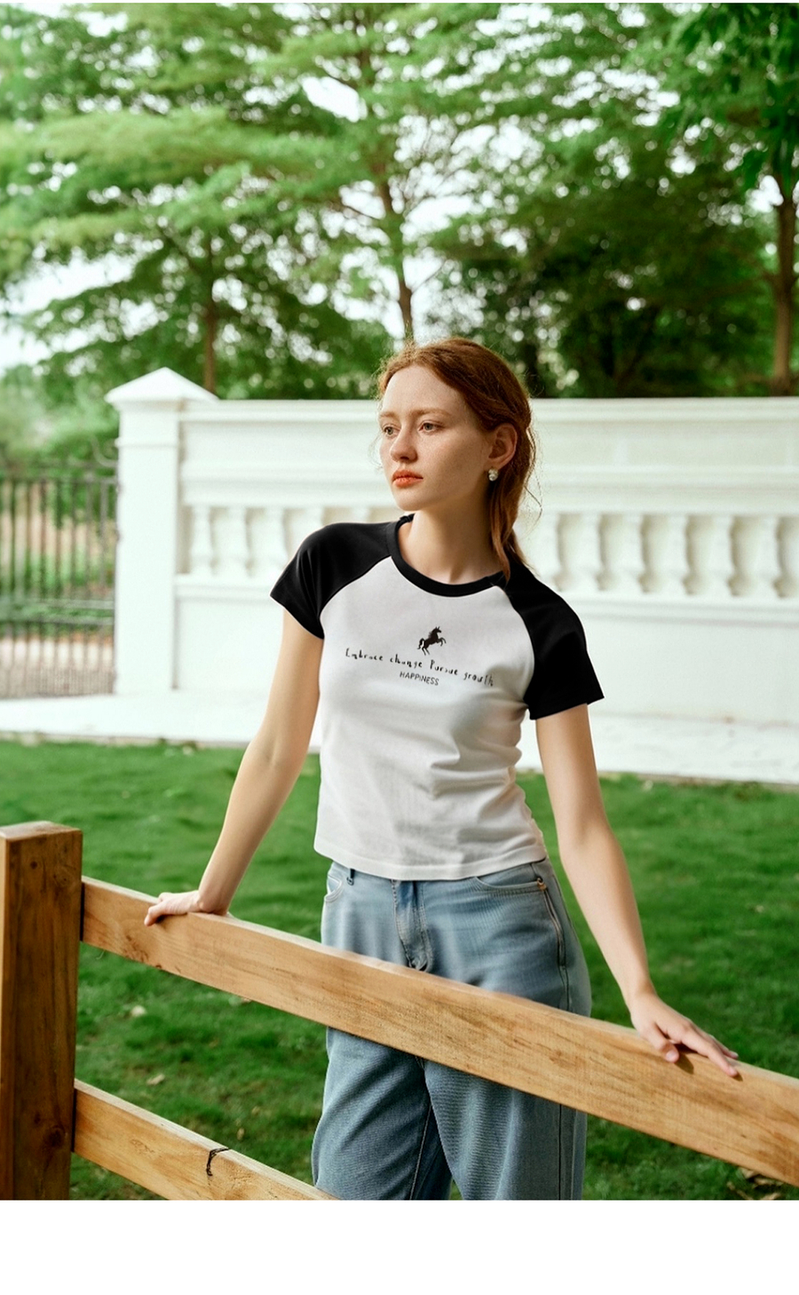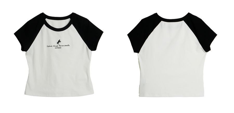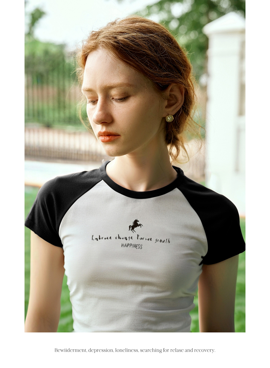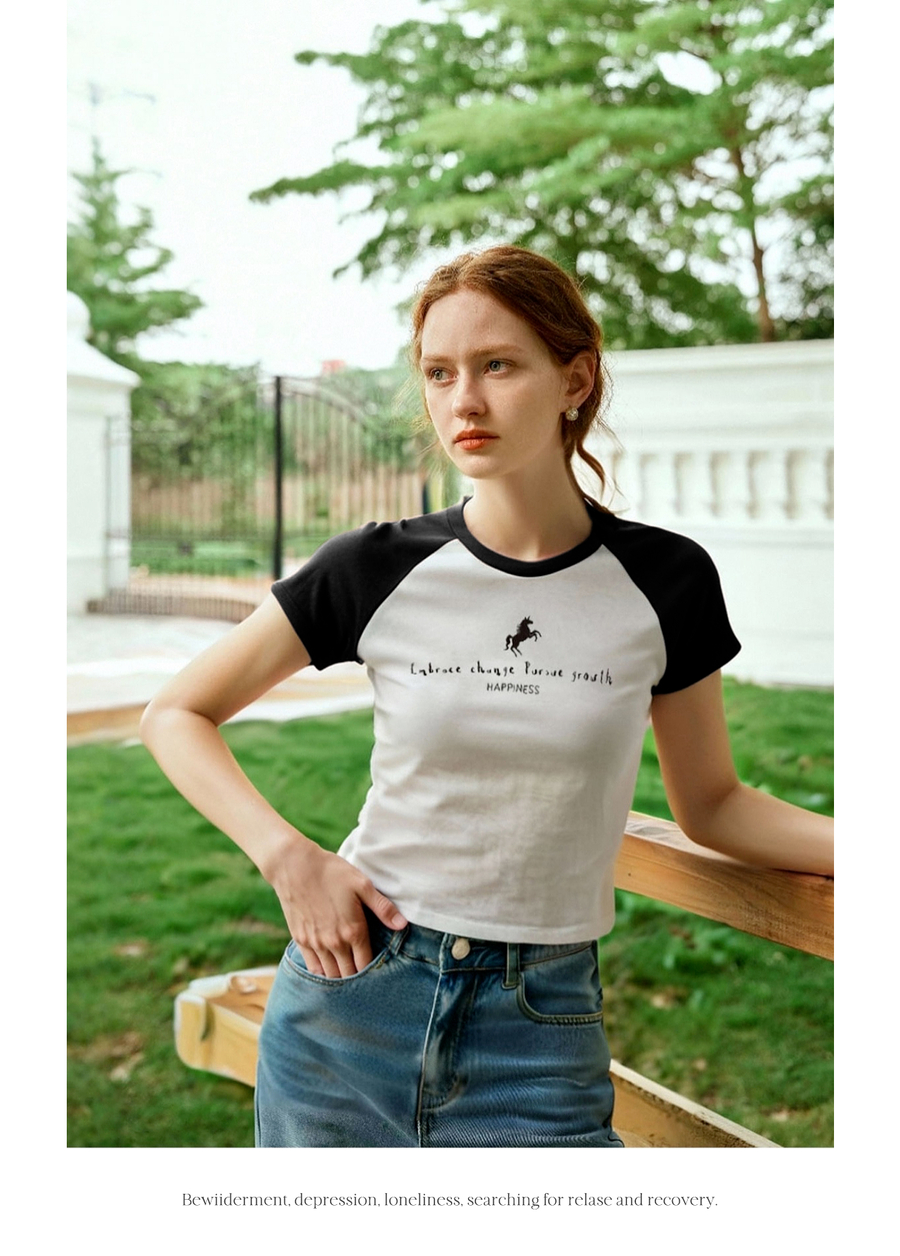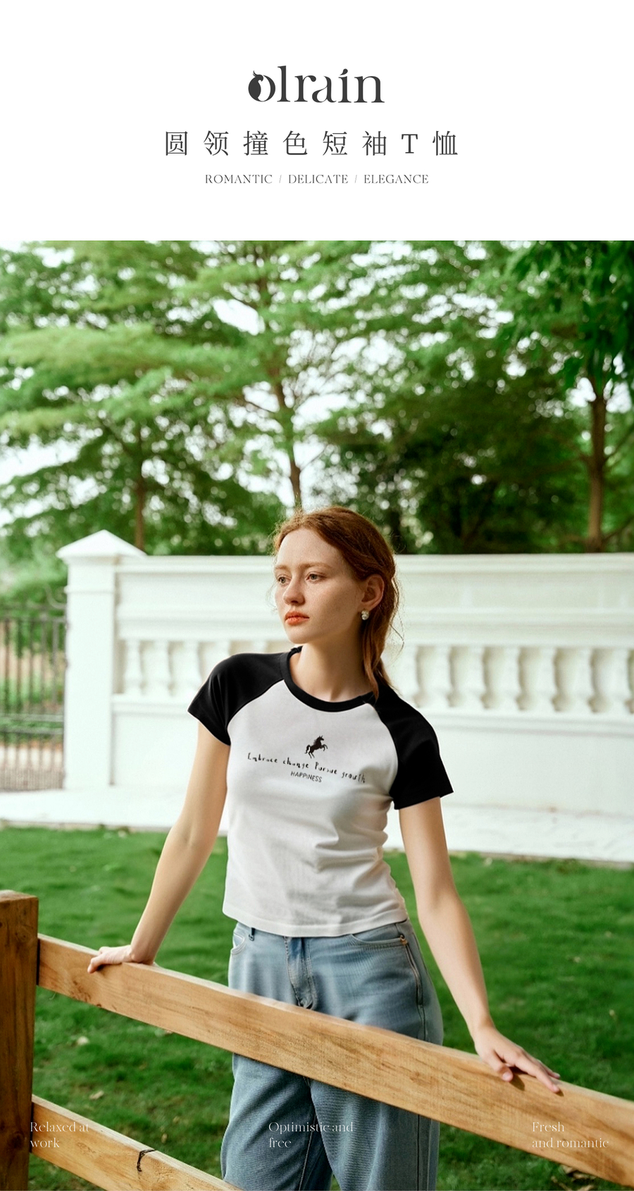 OLrain欧芮儿圆领撞色短袖百搭T恤女夏季2025年新款正肩显瘦上衣
