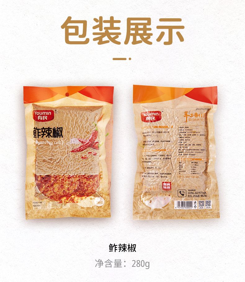 【严选】湖北特产有民鲊辣椒鲊胡椒280g*2袋 (厂家直发)