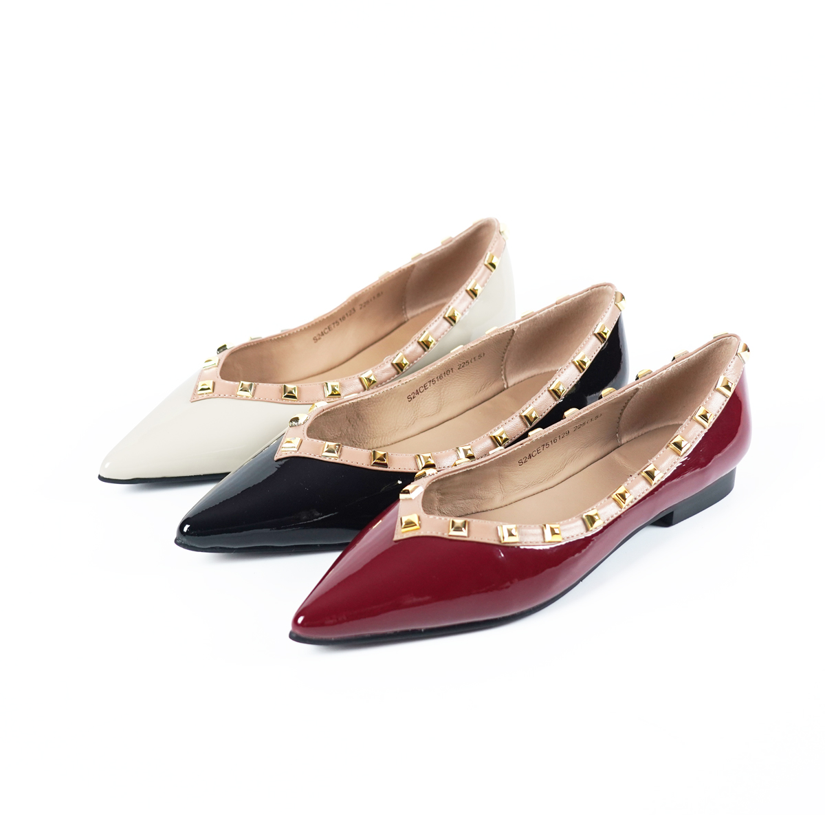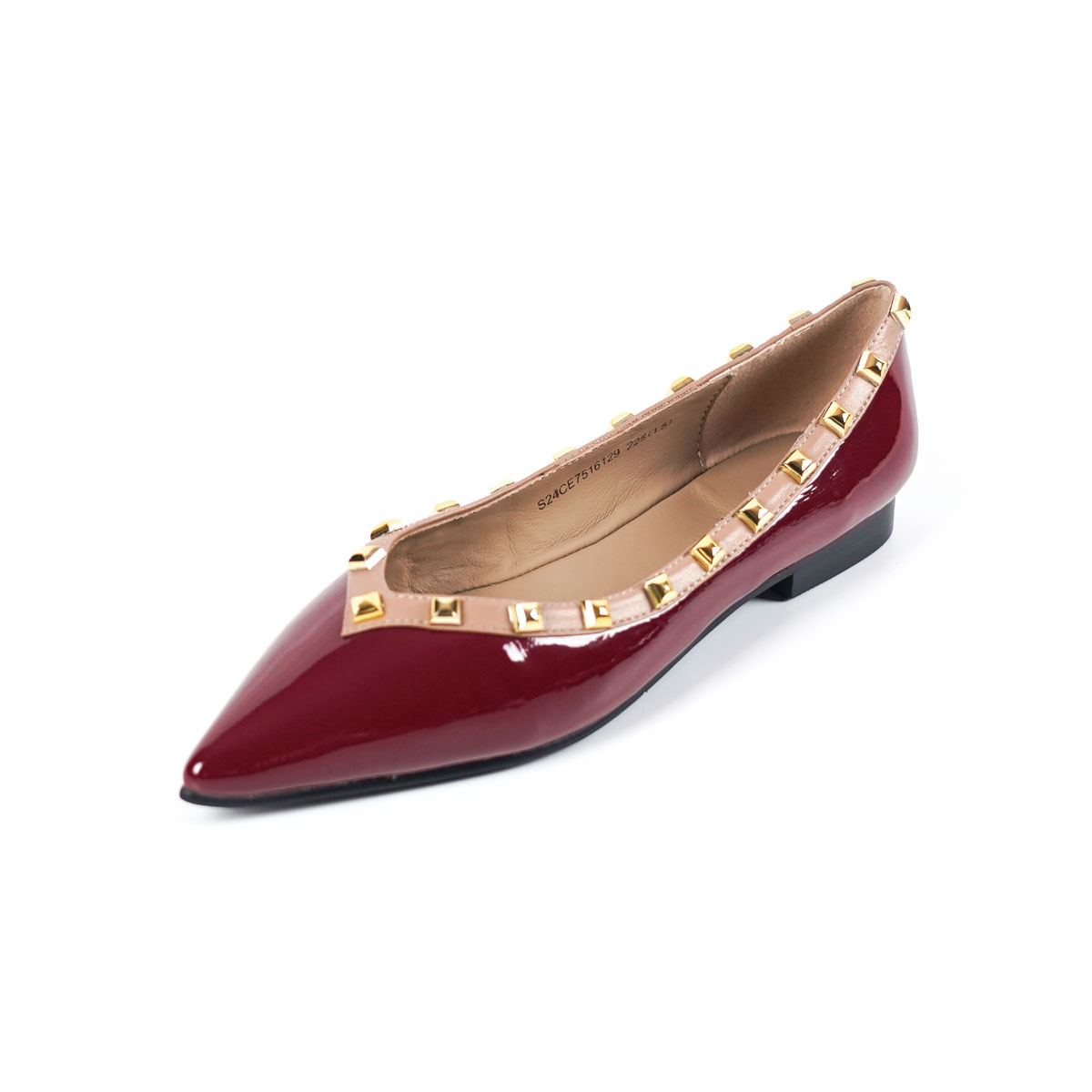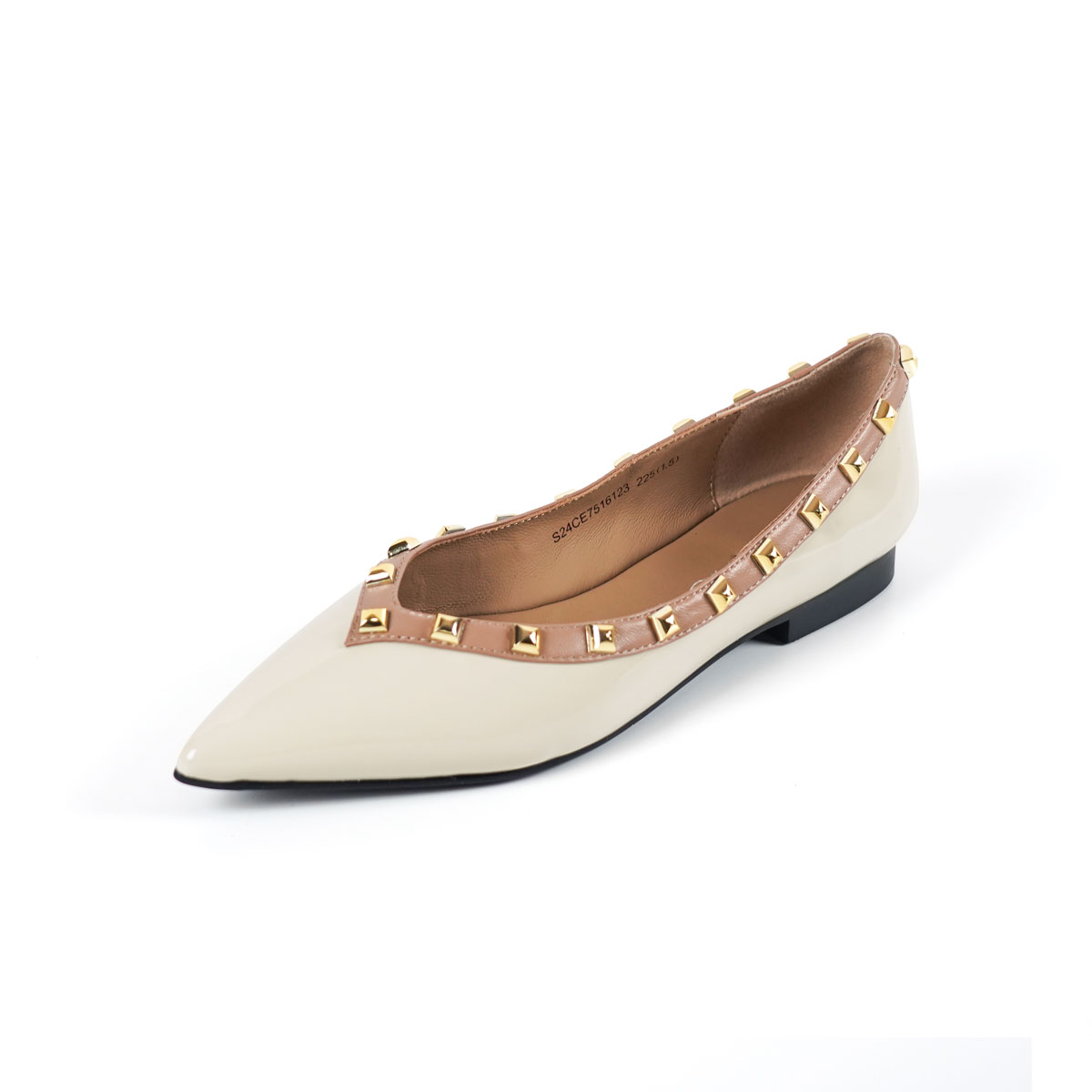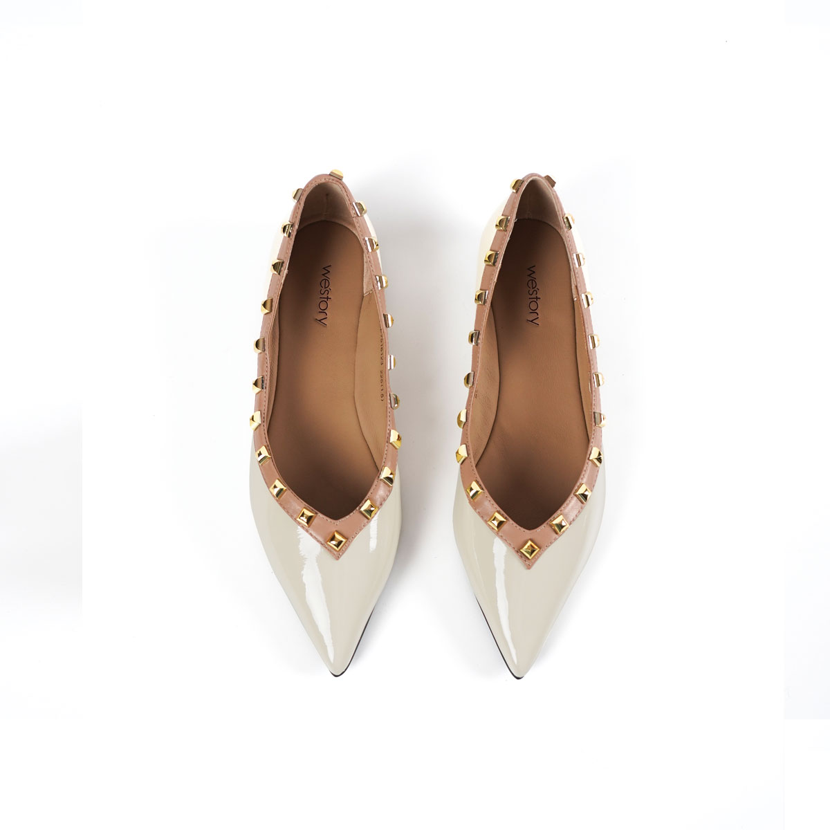 westory新款牛皮铆钉饰扣平底舒适小尖头单鞋S24CE75161(第二批)