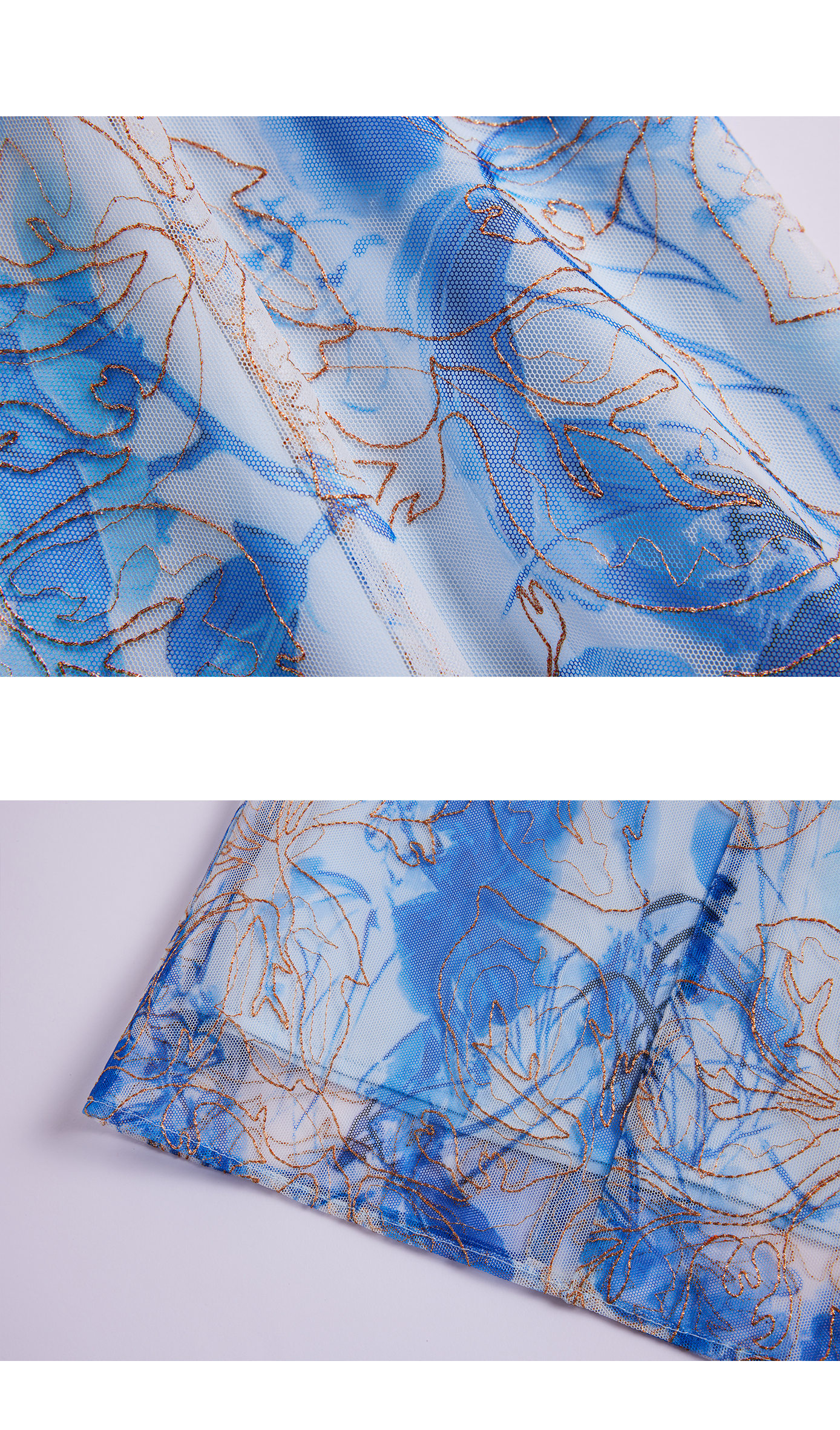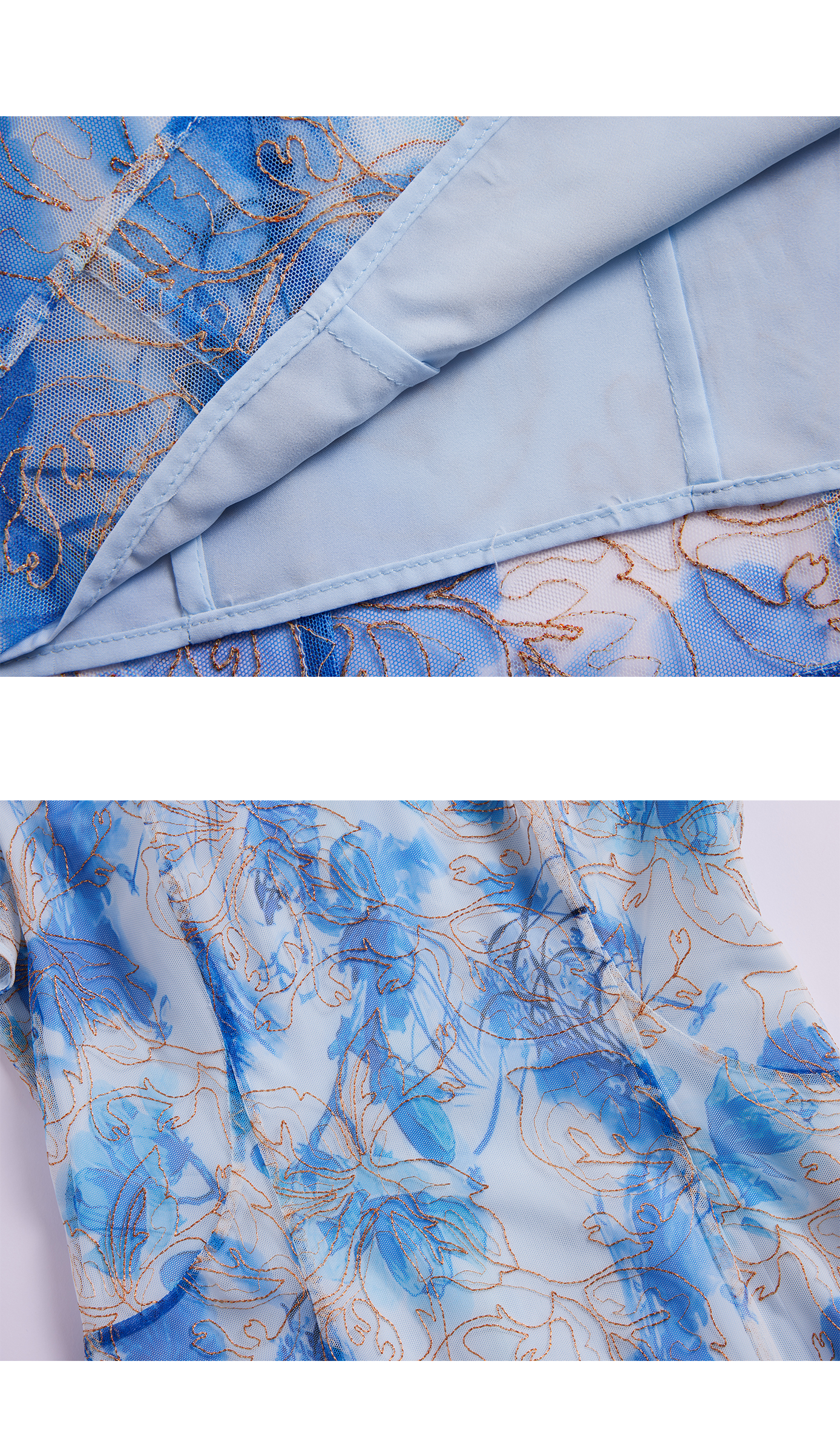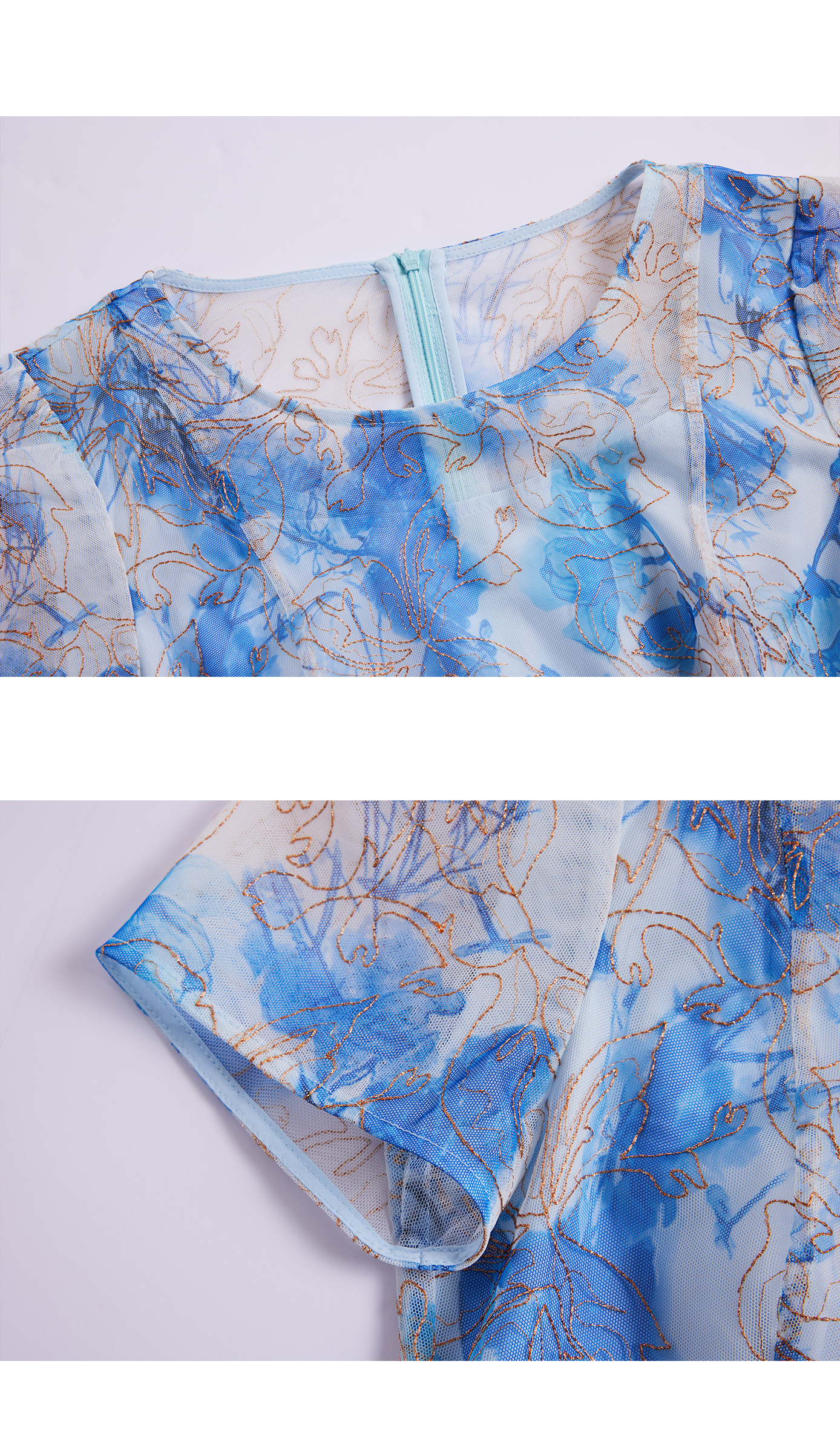 司歌收腰短袖绣花重工连衣裙过膝裙夏A911001X