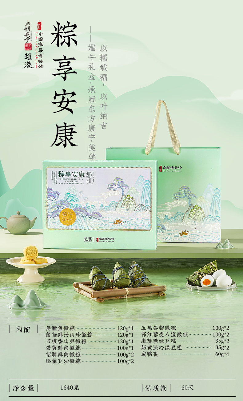 超港 粽享安康1640g 8味12粽4蛋4糕 胡兴堂端午粽子礼盒 节日礼品 粽享徽礼 48小时发货