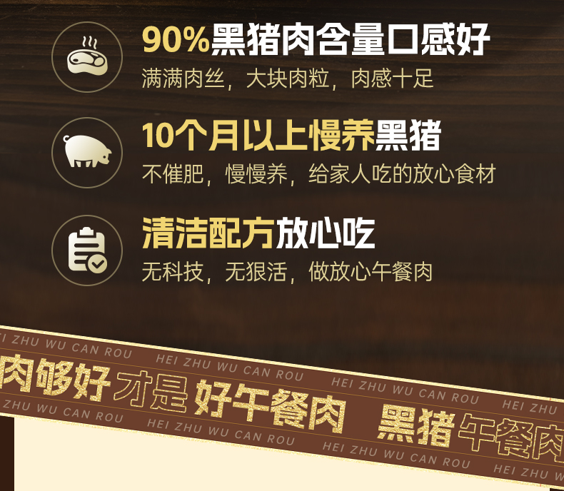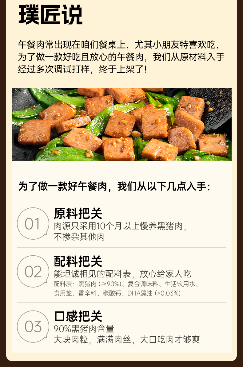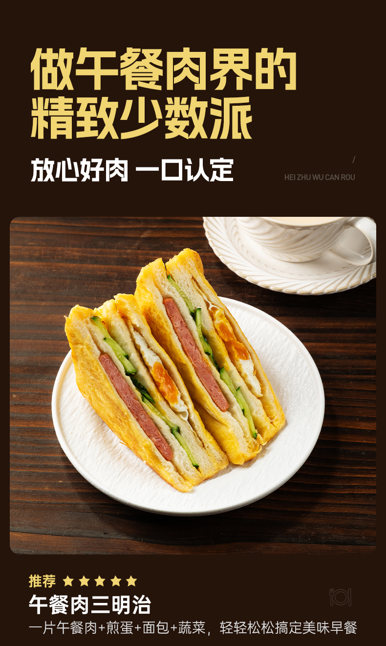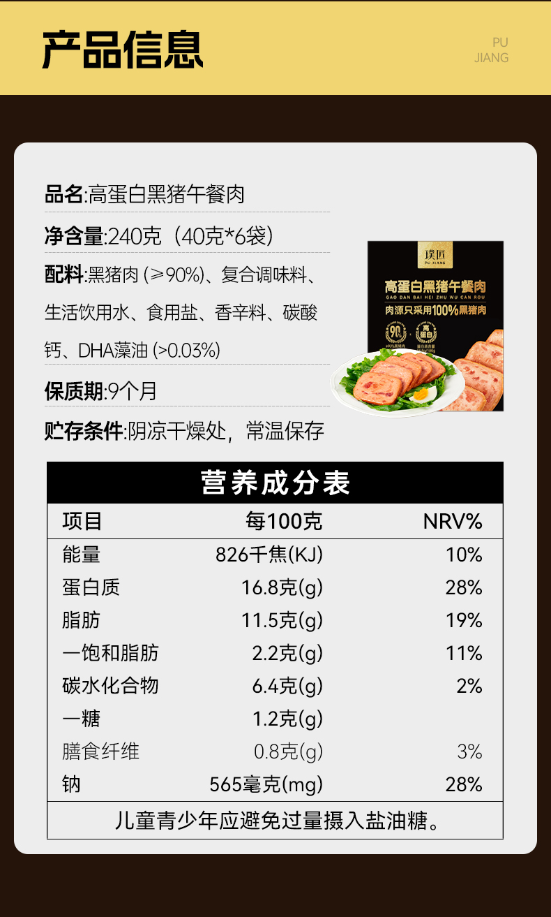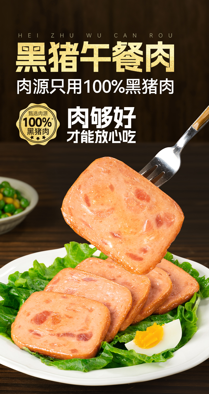 璞匠高蛋白黑猪午餐肉单独包装熟食肉制品早餐火腿午餐肉三明治涮火锅