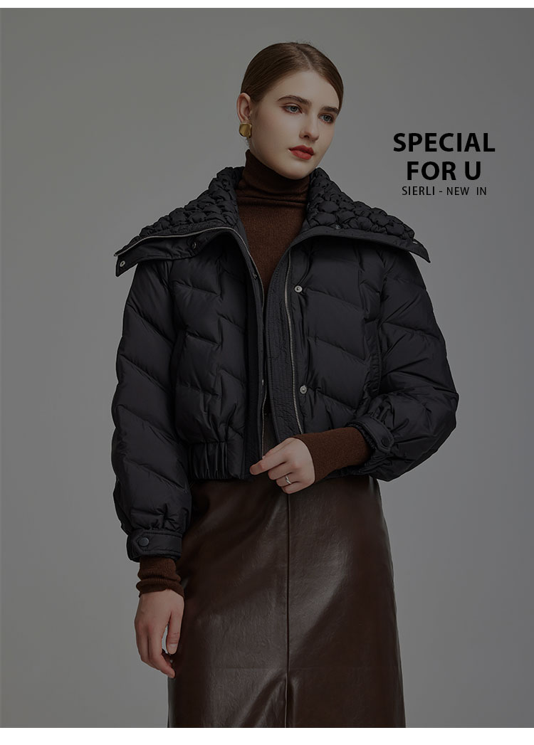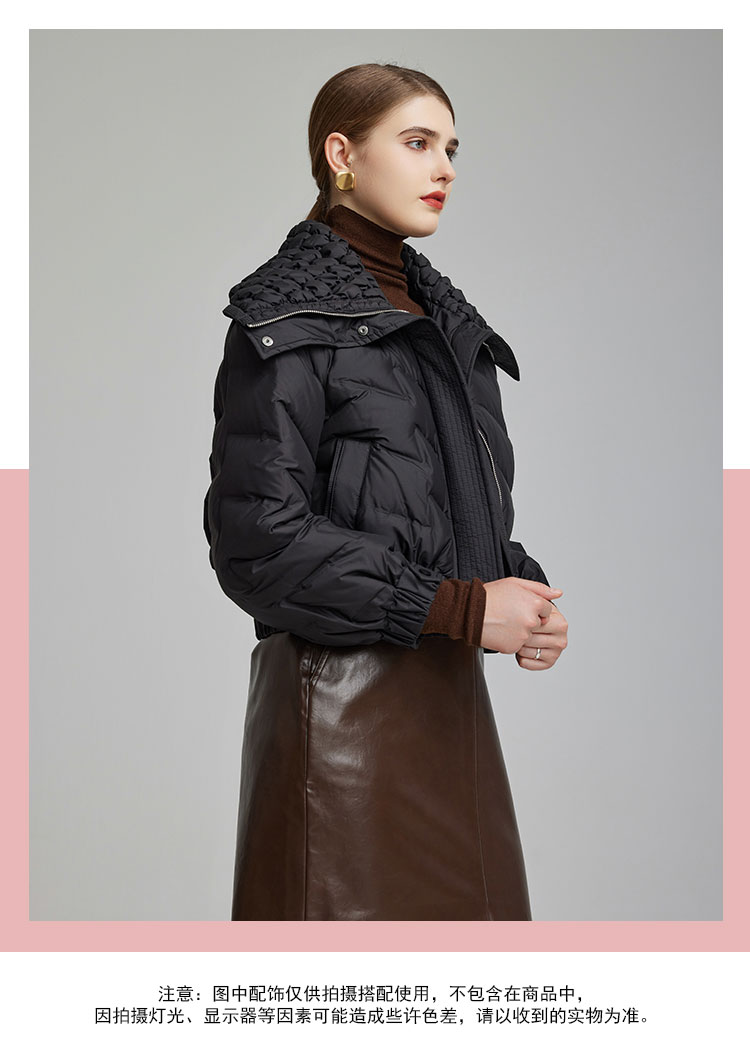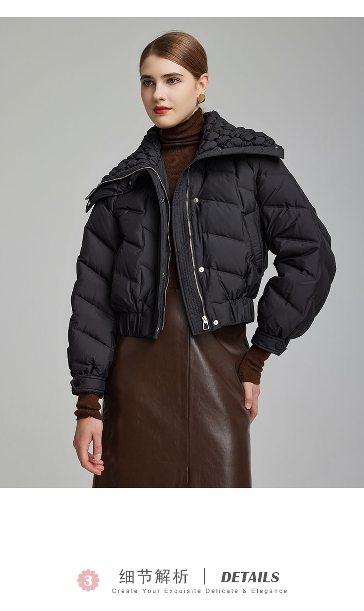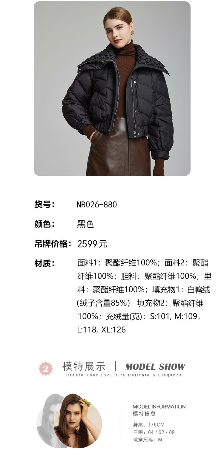 NR026斯尔丽23新款立体工艺装饰大翻领年轻减龄拉链保暖小个子羽绒服