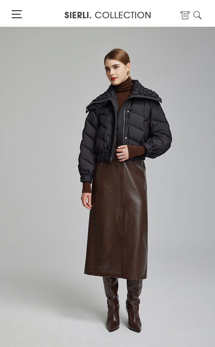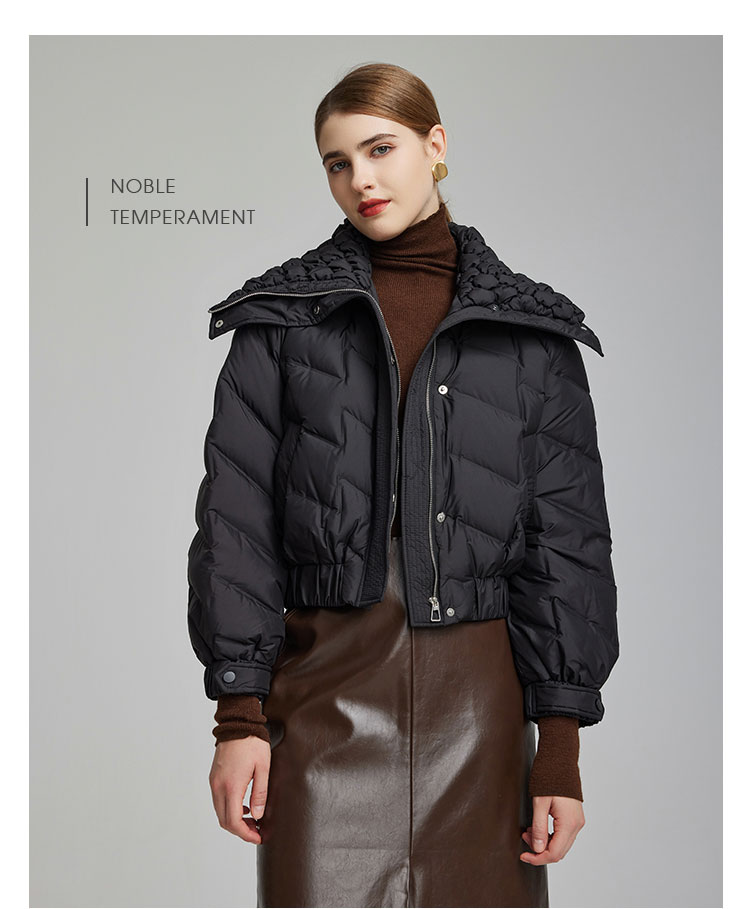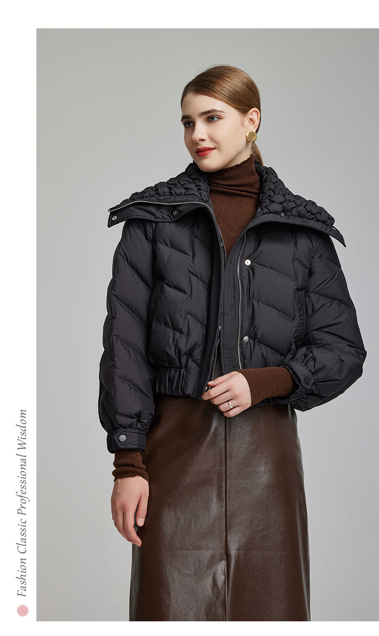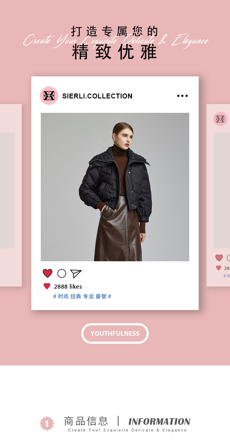 NR026斯尔丽23新款立体工艺装饰大翻领年轻减龄拉链保暖小个子羽绒服