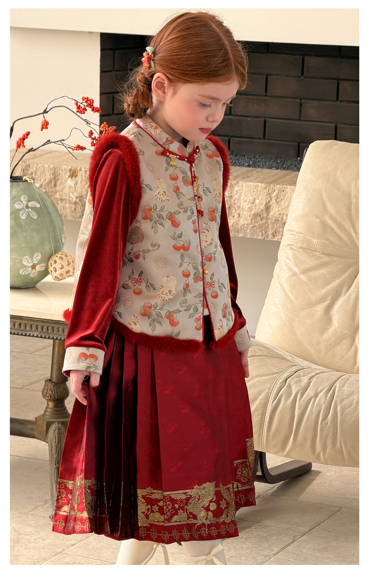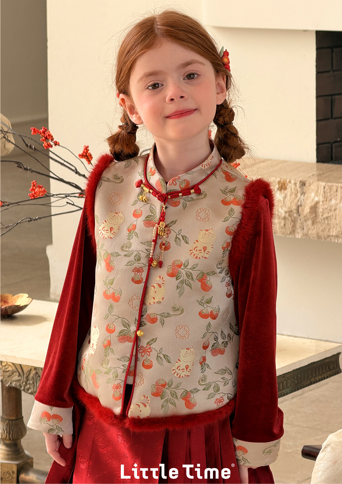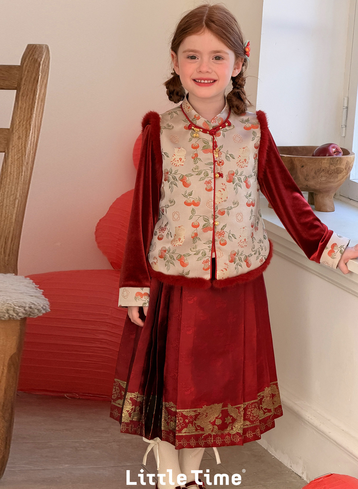 littletime新中式事事如意马甲马面裙套装女童红色喜庆拜年服
