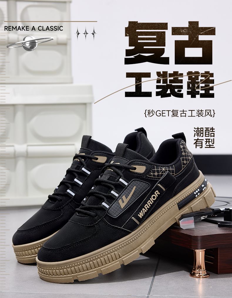 回力男鞋加绒工装鞋2025秋冬新款户外登山鞋男士厚底运动休闲鞋子