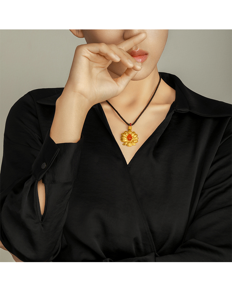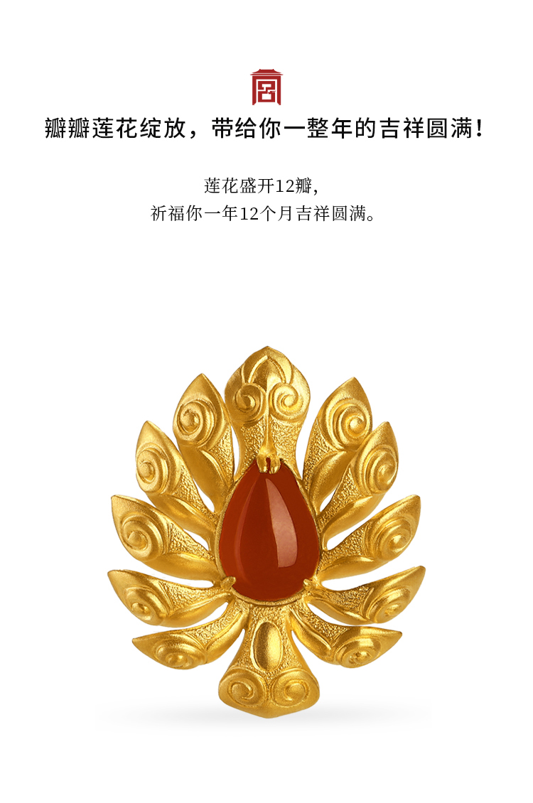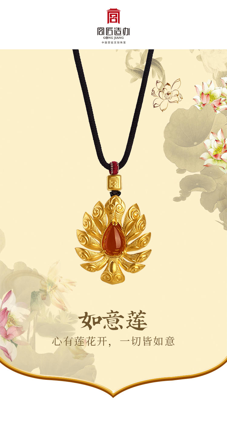 宫匠造办 十朝十美古玉金韵 元·如意莲黄金吊坠
