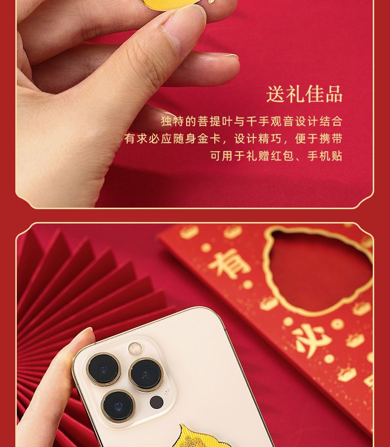 「大足石刻」有求必应足金黄金手机贴【Y】