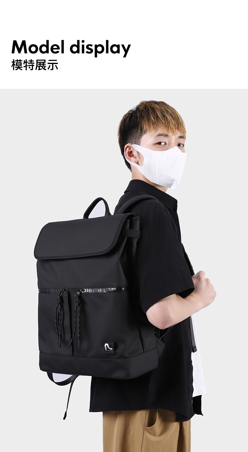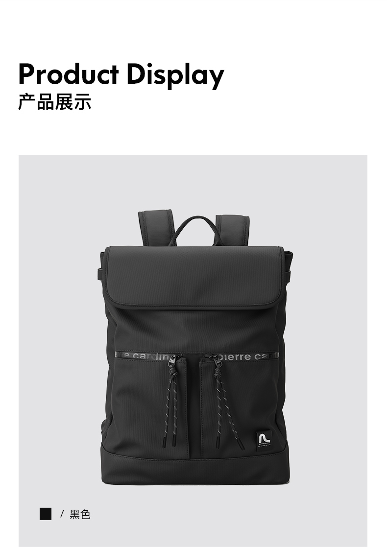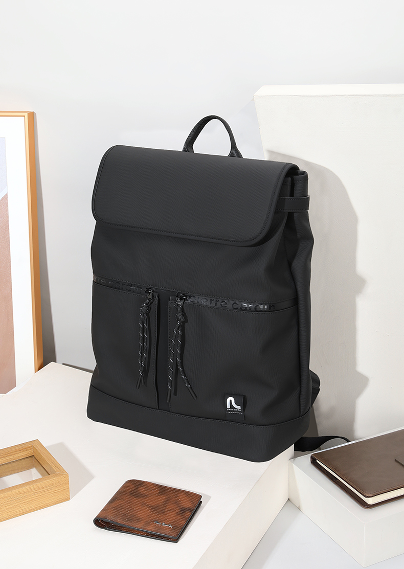 皮尔卡丹pocket系列 大容量男士磁扣双肩包