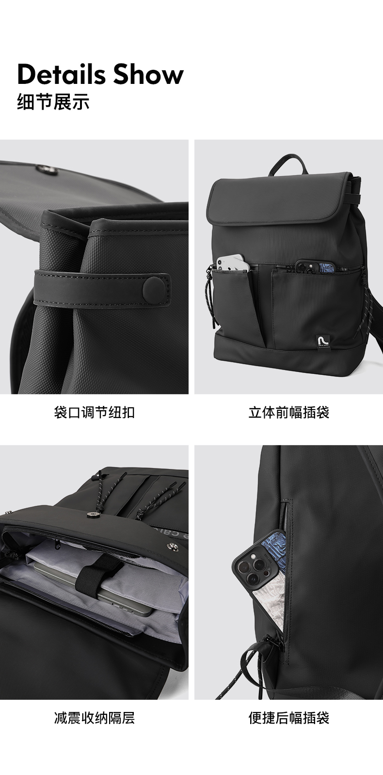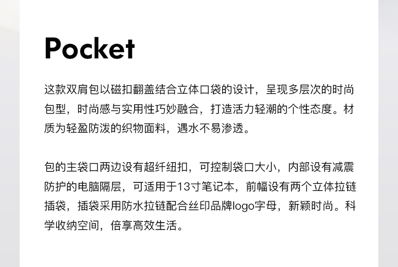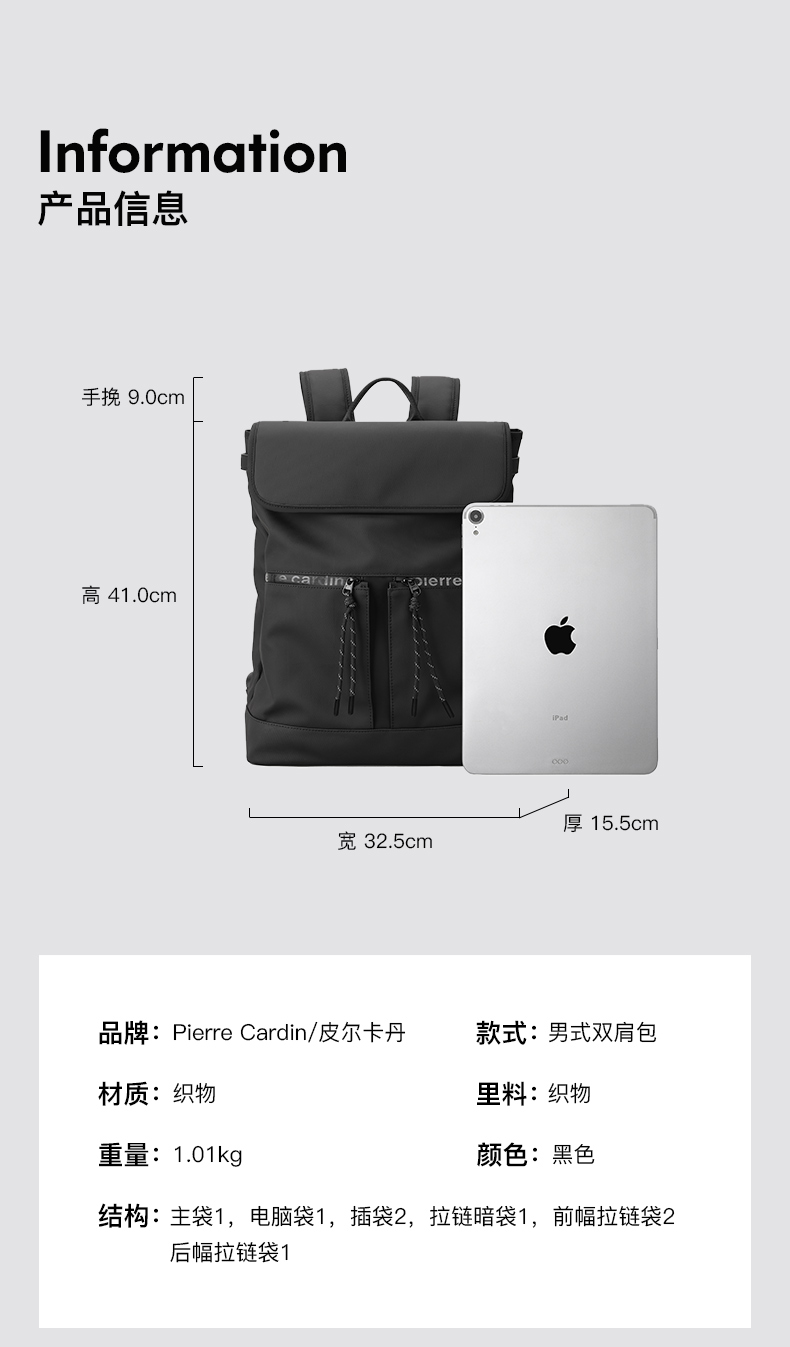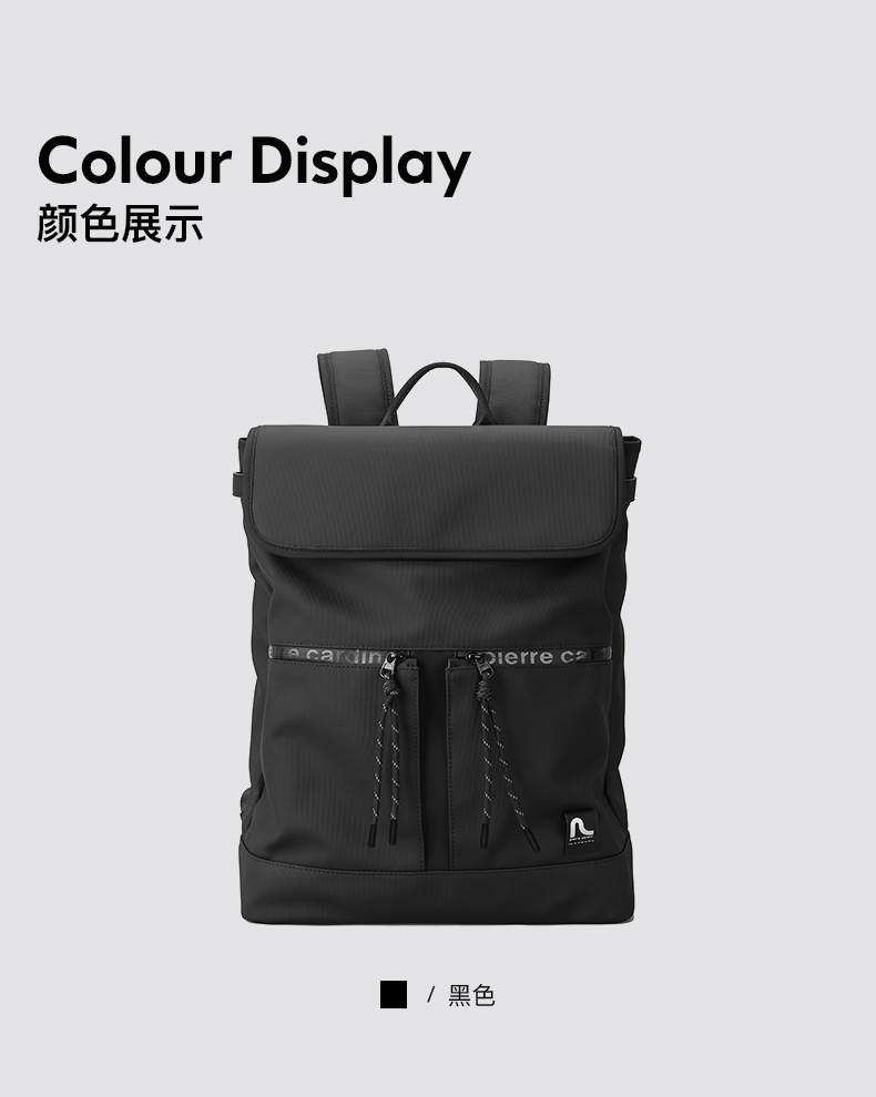 皮尔卡丹pocket系列 大容量男士磁扣双肩包
