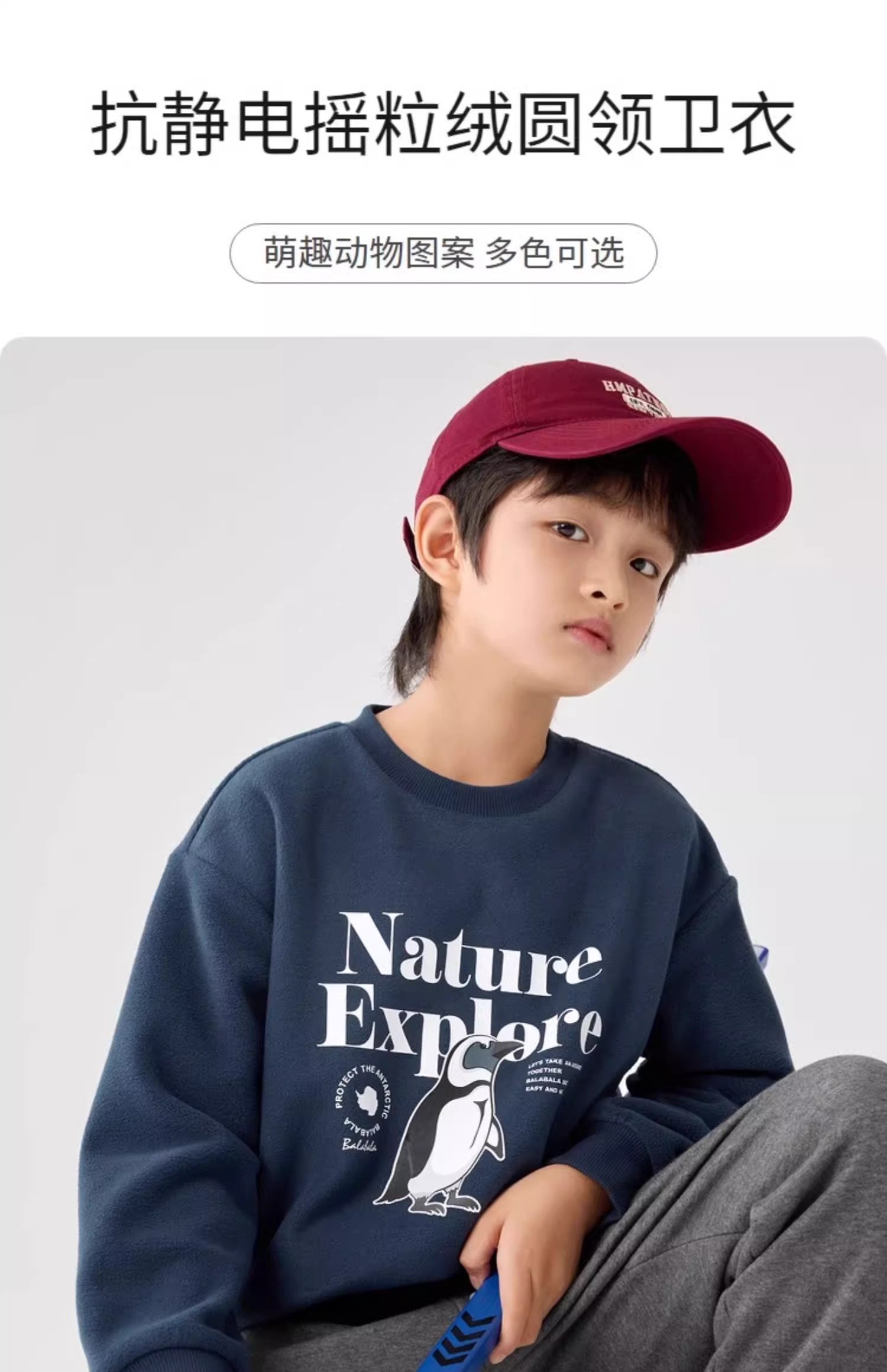 巴拉巴拉童装儿童卫衣秋冬新款男童女童圆领套头摇粒绒上衣潮