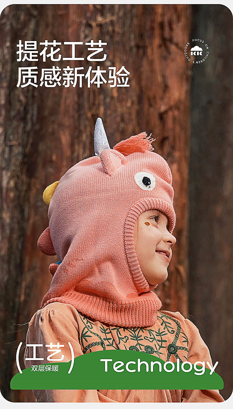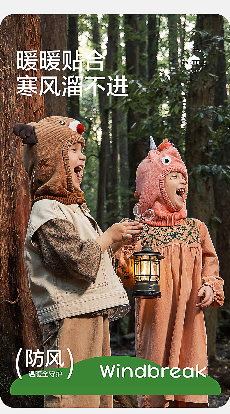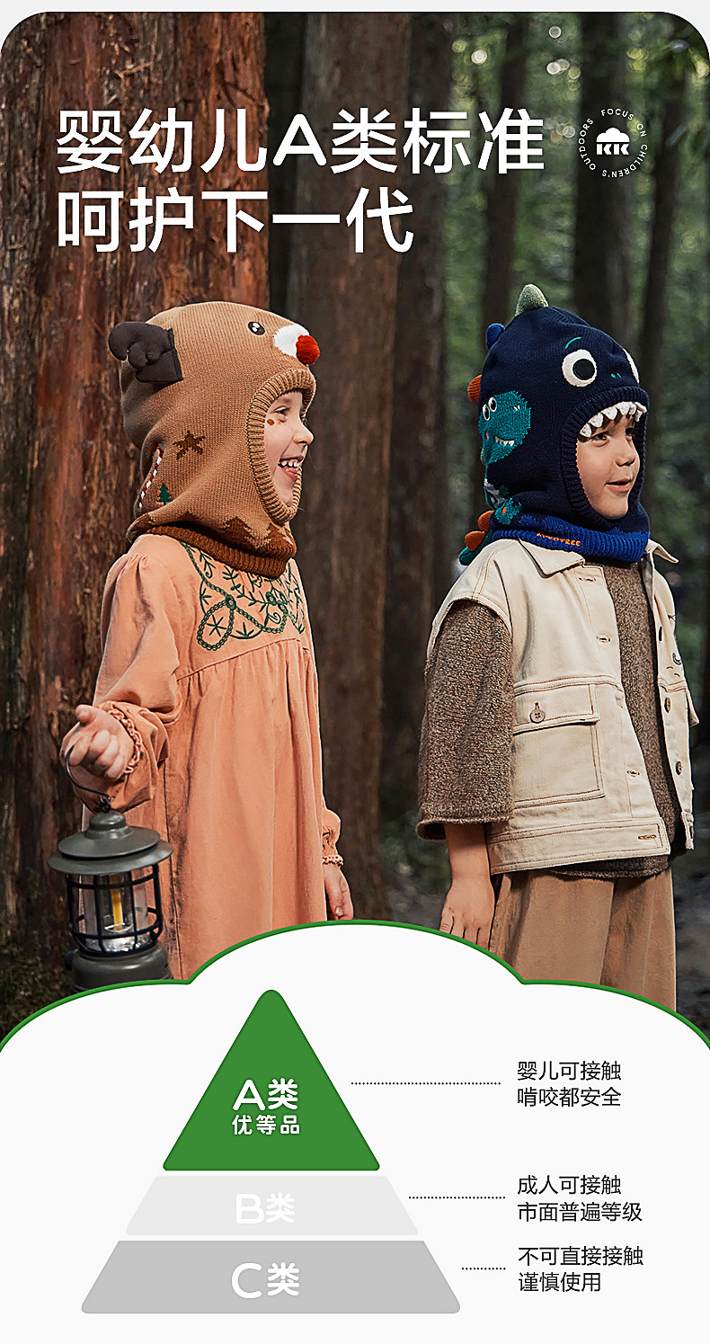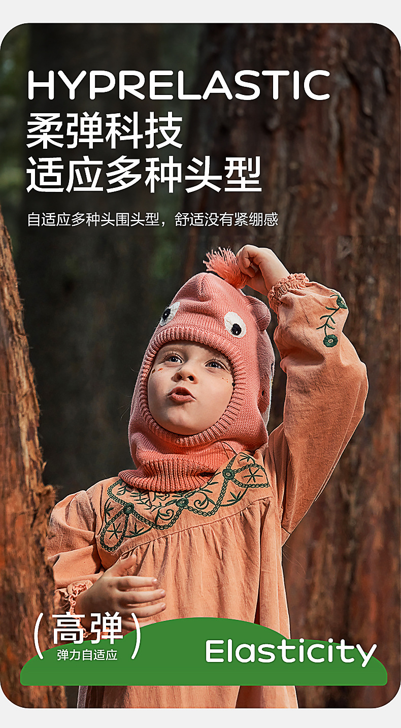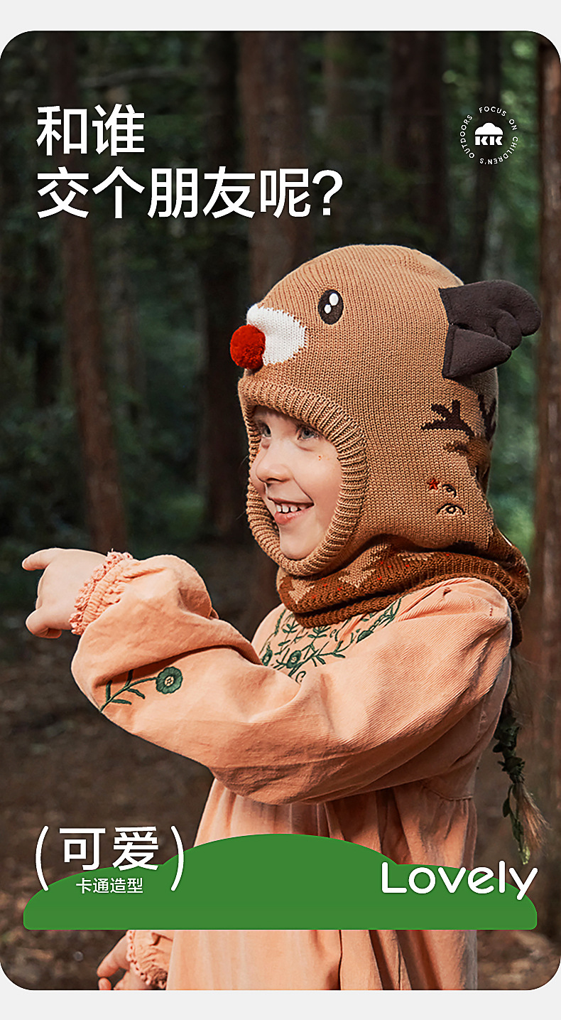 KK树防风保暖围脖一体儿童帽子秋冬季男女童护脸护耳宝宝针织帽子