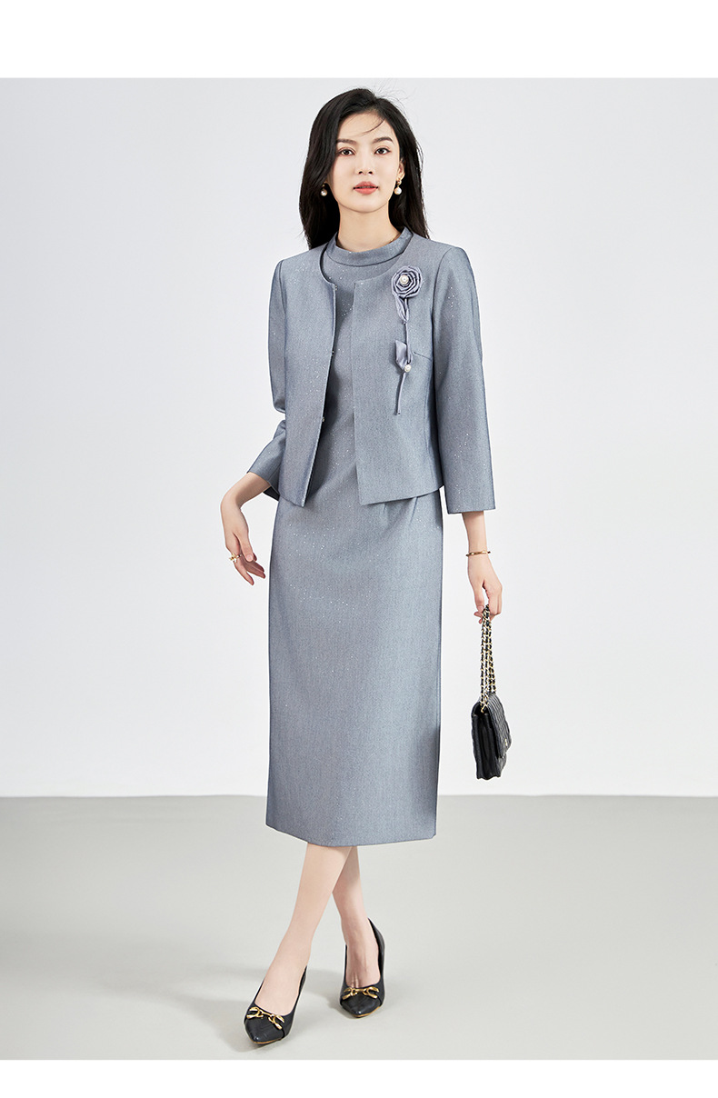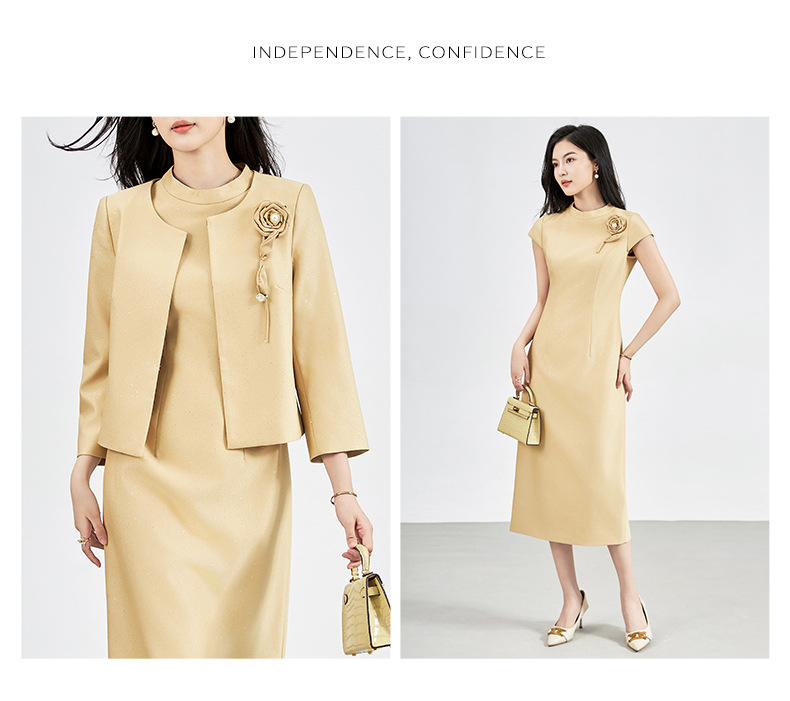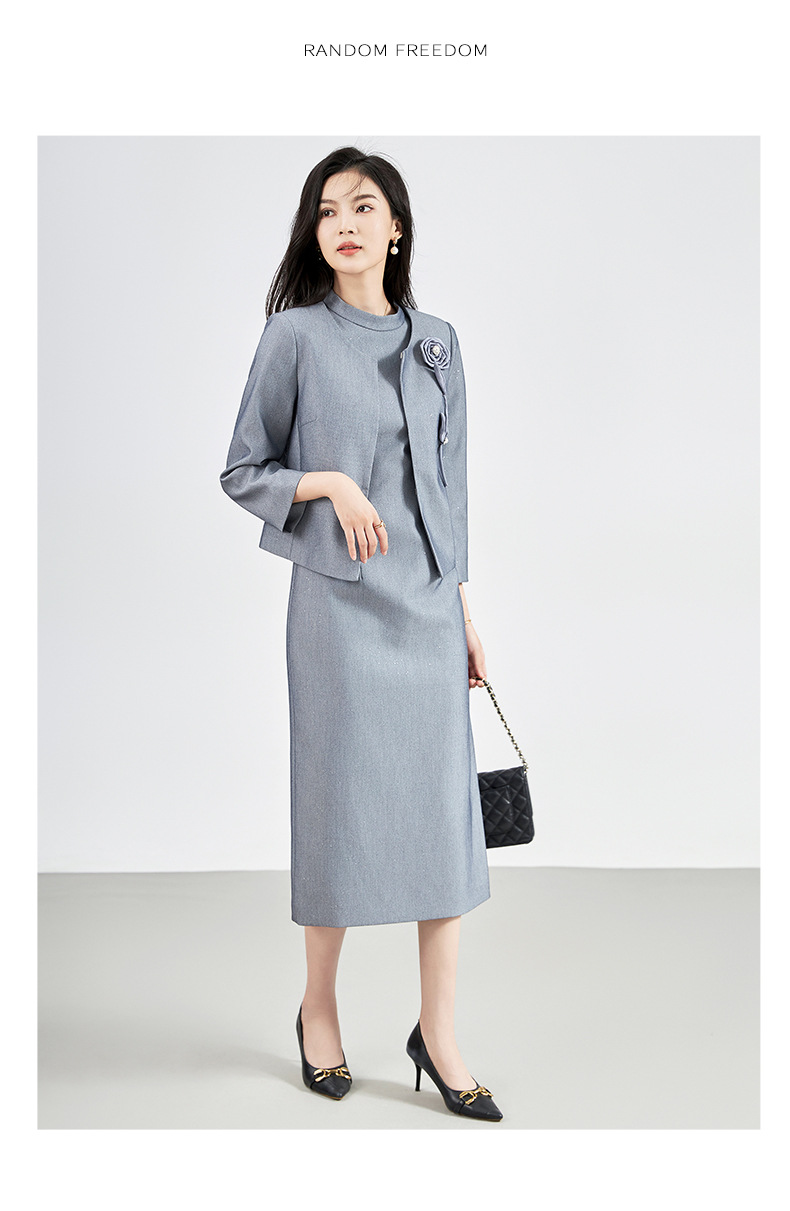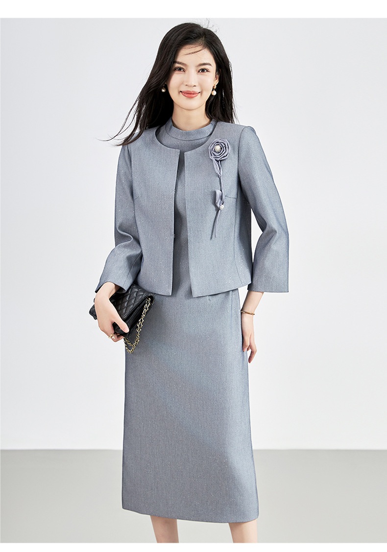 羊毛呢名媛轻奢感,圆领外套+背心连衣裙子两件套装WLZD-2427406